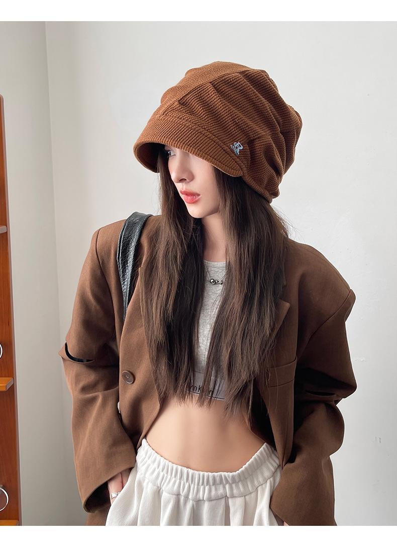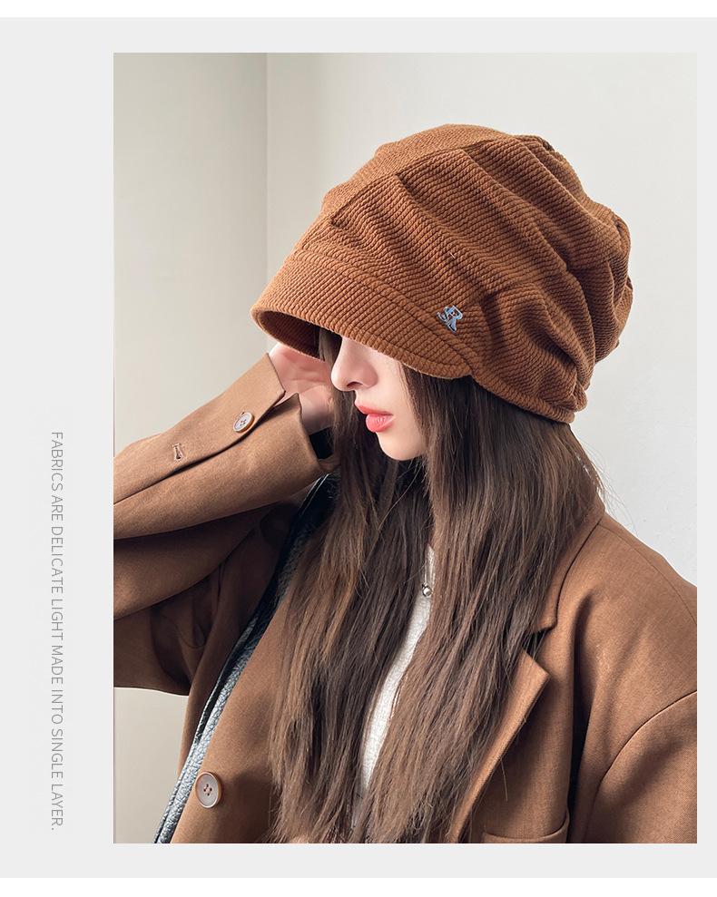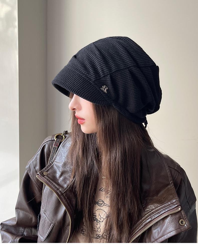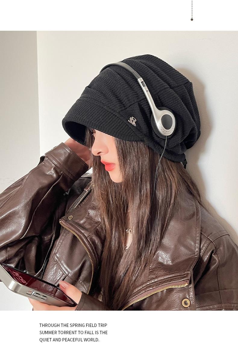 Sombrero Moda Otoño e Invierno para Mujer Letra Cabeza Grande Montón Combinable Estilo Coreano Principios de Otoño Delgado Jersey Gorro Frío Gorro