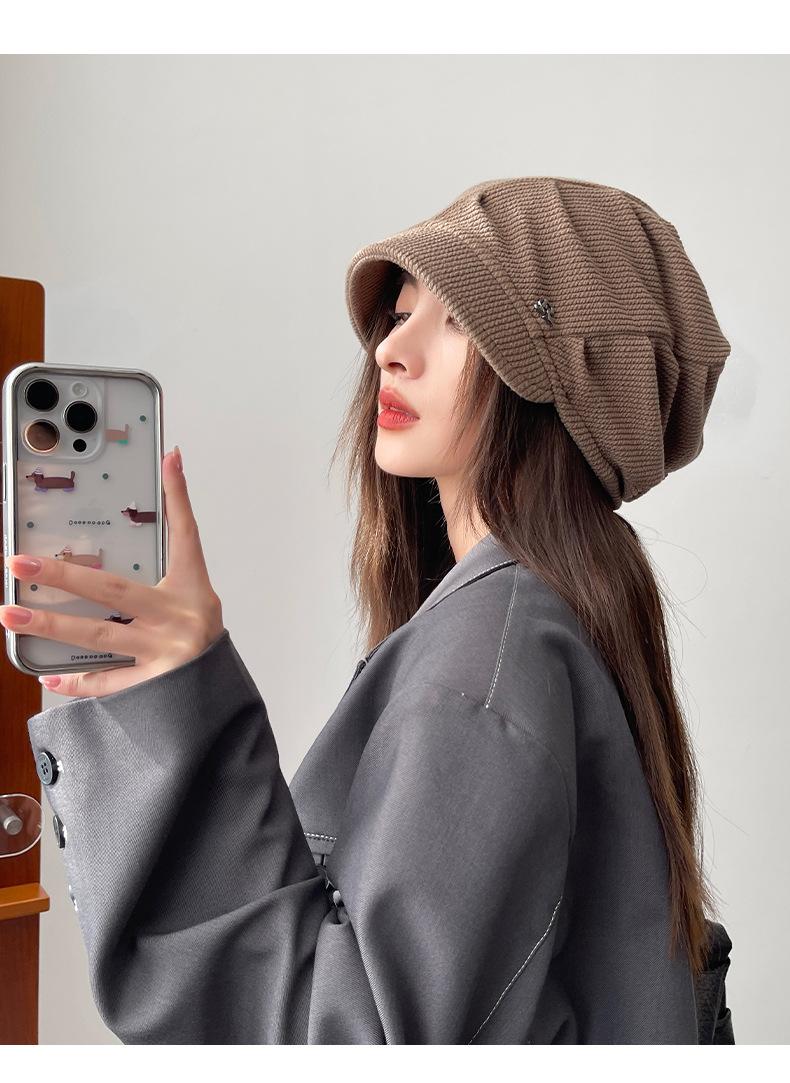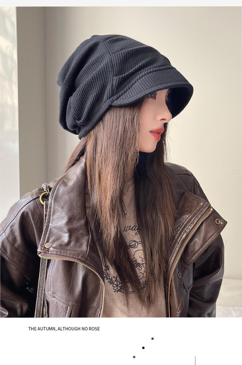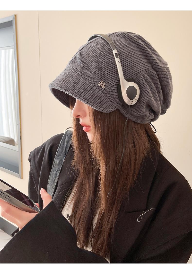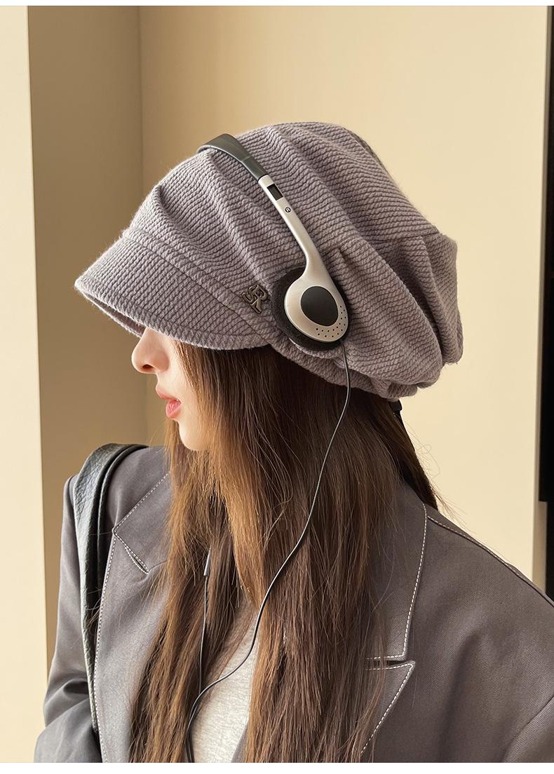 Sombrero Moda Otoño e Invierno para Mujer Letra Cabeza Grande Montón Combinable Estilo Coreano Principios de Otoño Delgado Jersey Gorro Frío Gorro