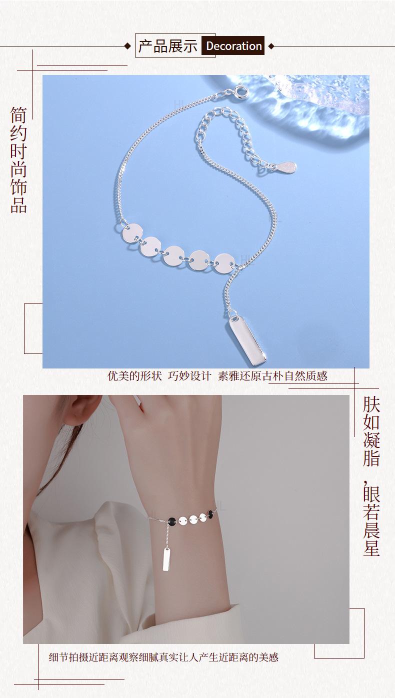 Pulsera Redonda de Plata 990 para Mujer Estilo Coreano Moda Lujo Ligero Gama Alta Pulsera de Marca Cuadrada Pulsera de Lentejuelas Simple Ins