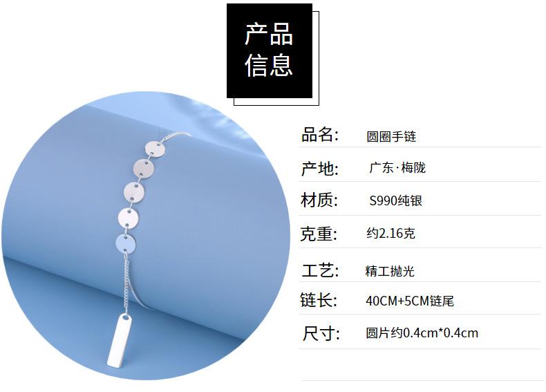 Pure silver 990 disc bracelet for women