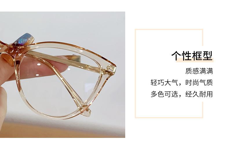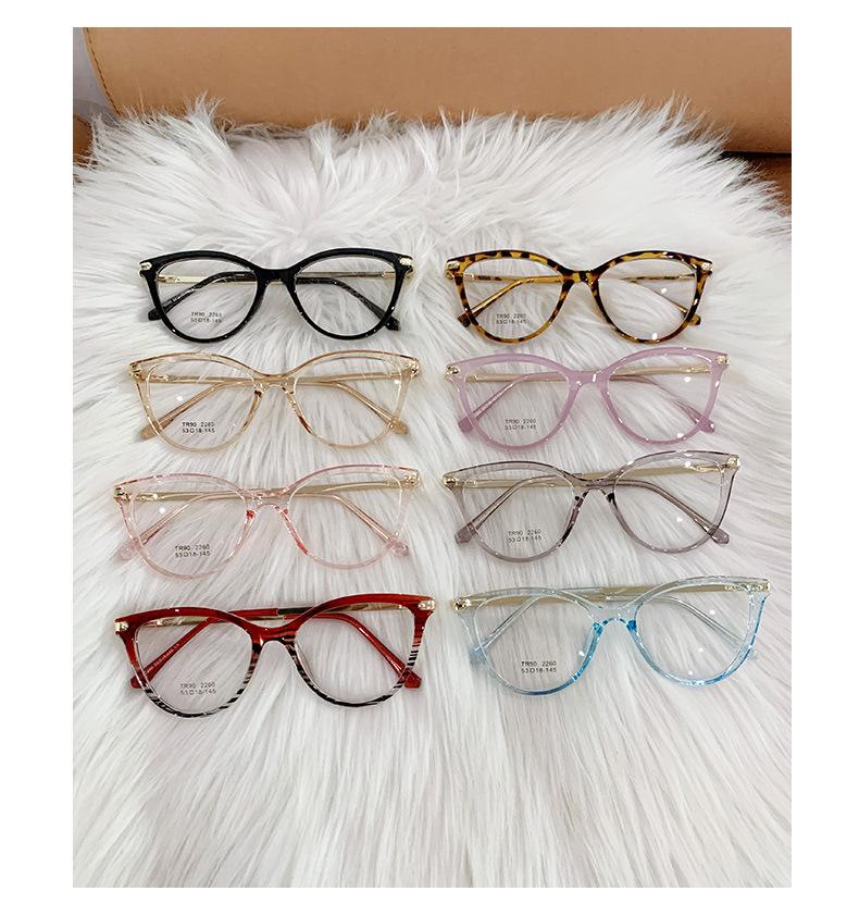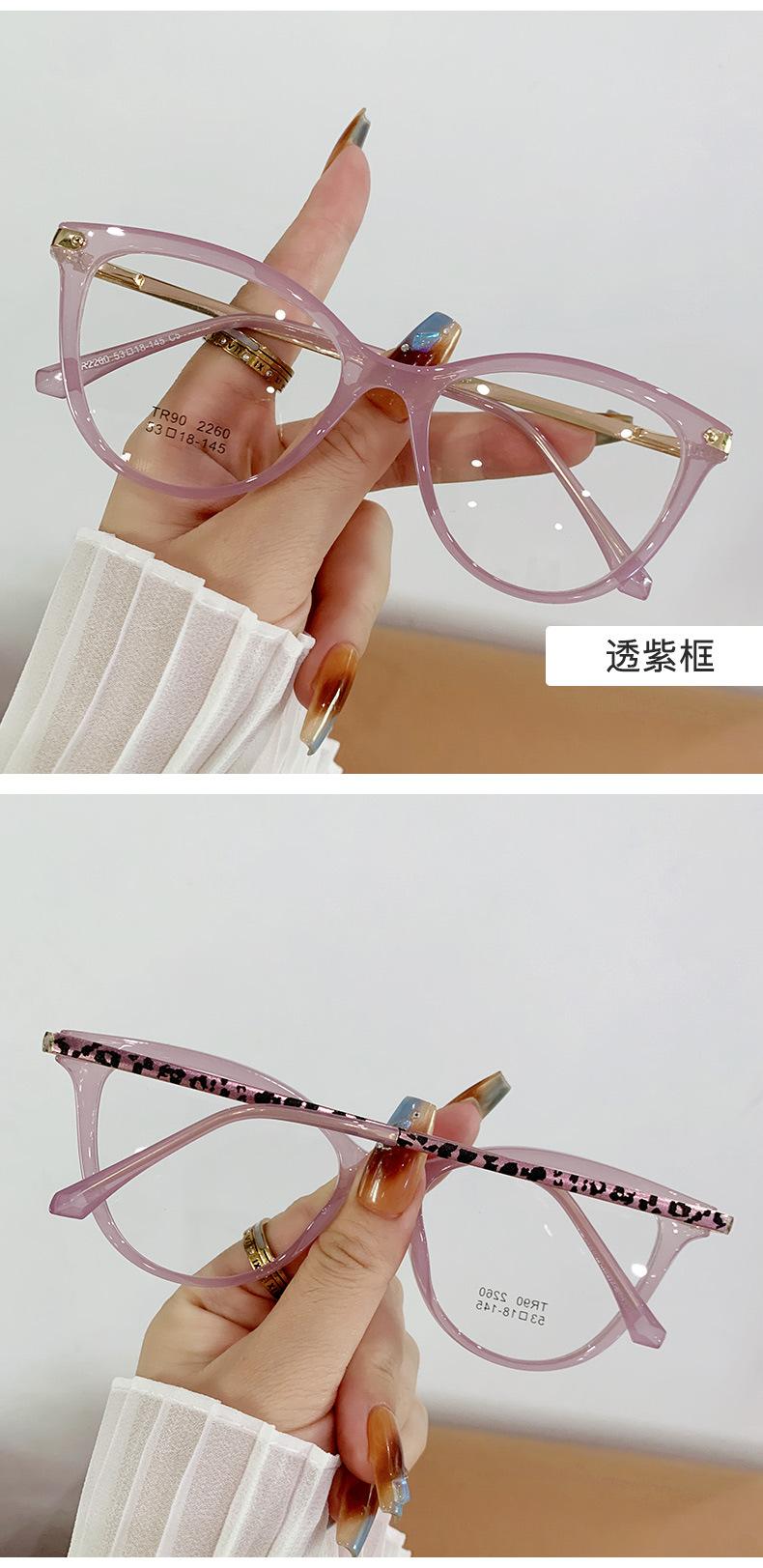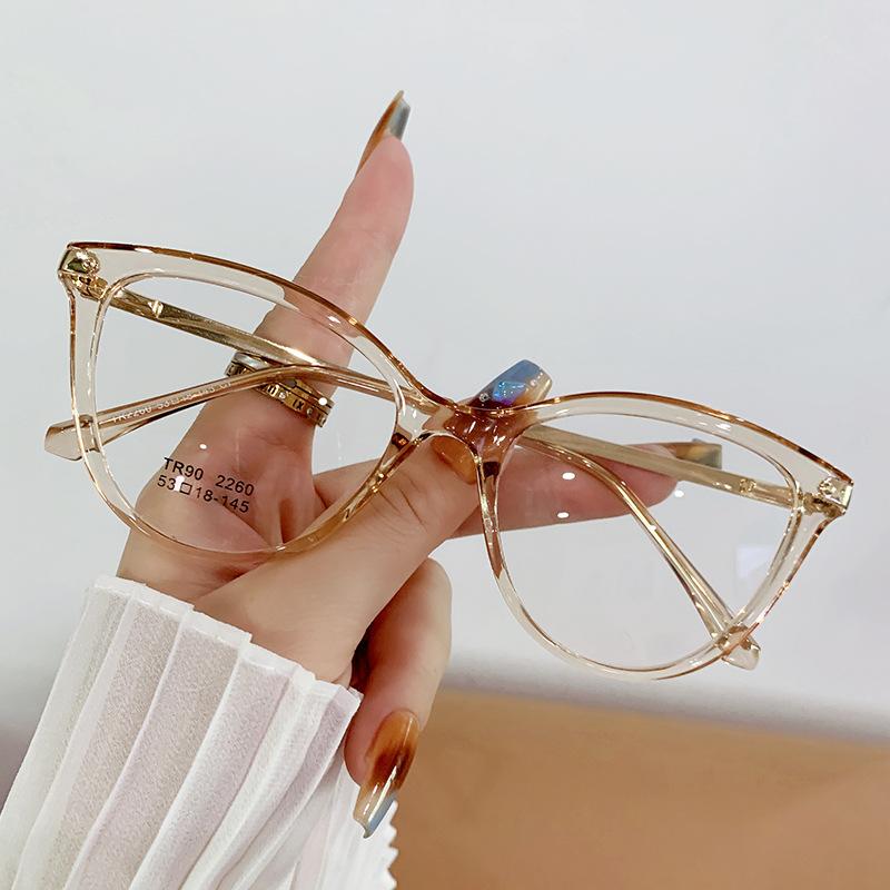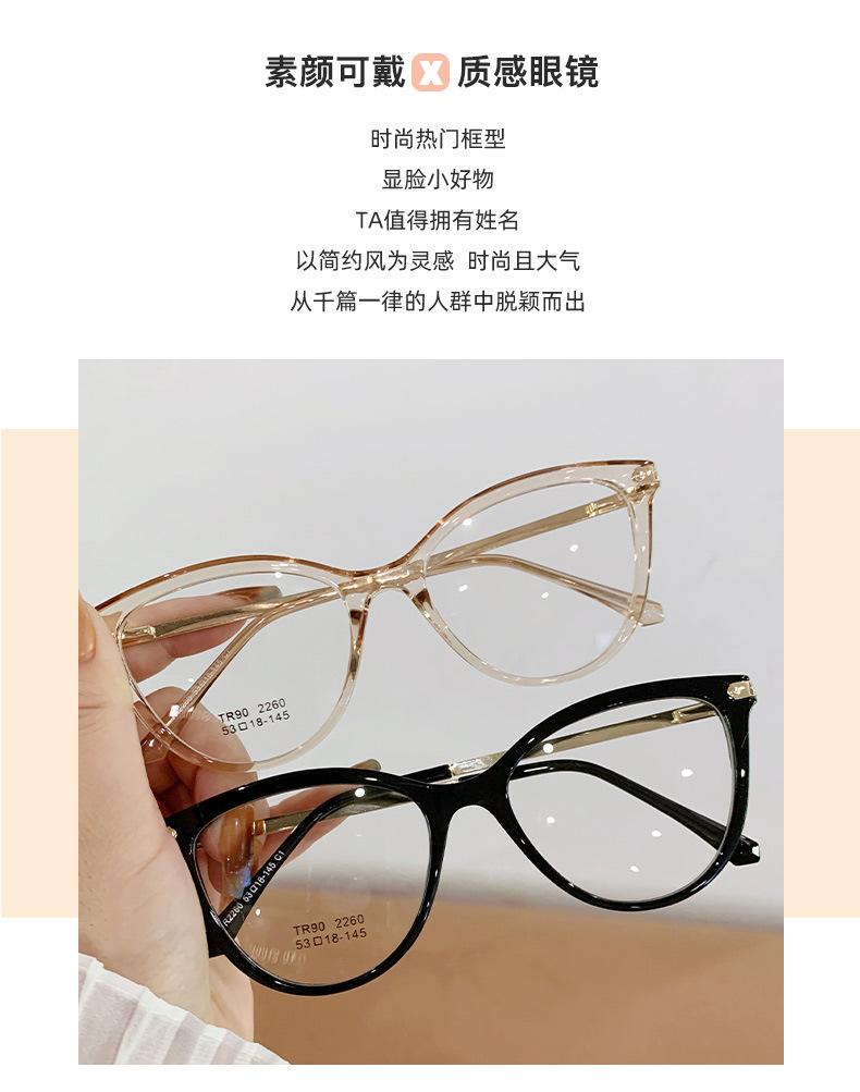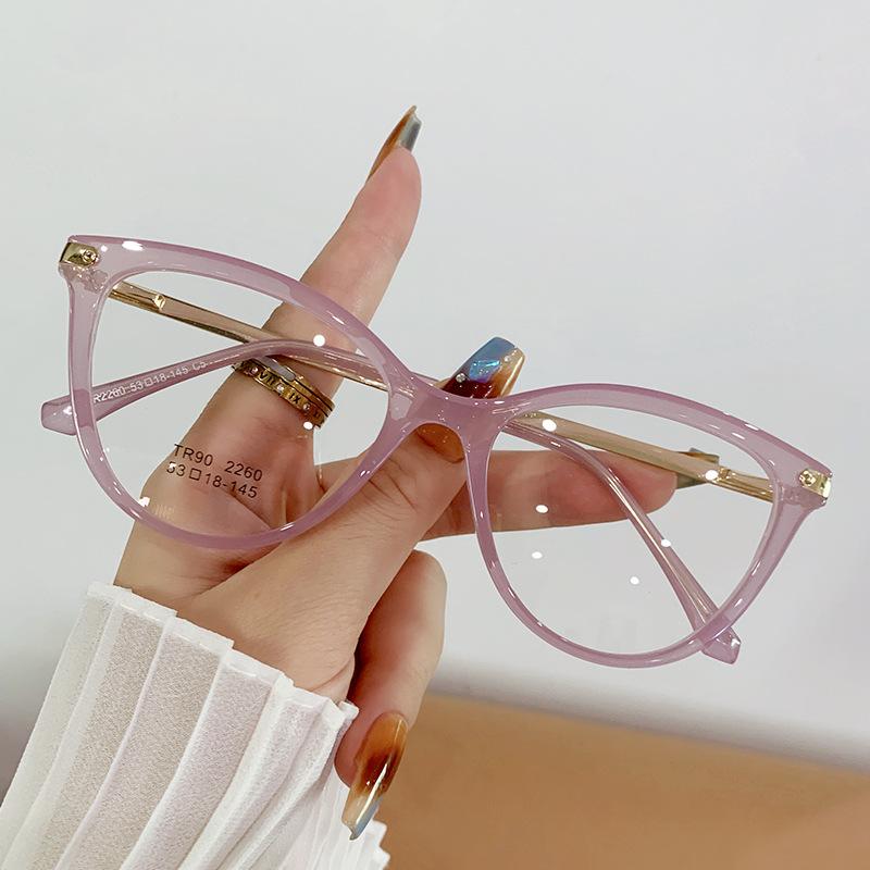 Montura de gafas de ojo de gato de moda para mujer, personalizada, transfronteriza, coreana, TR90, espejo plano, montura de gafas lisa europea y americana.