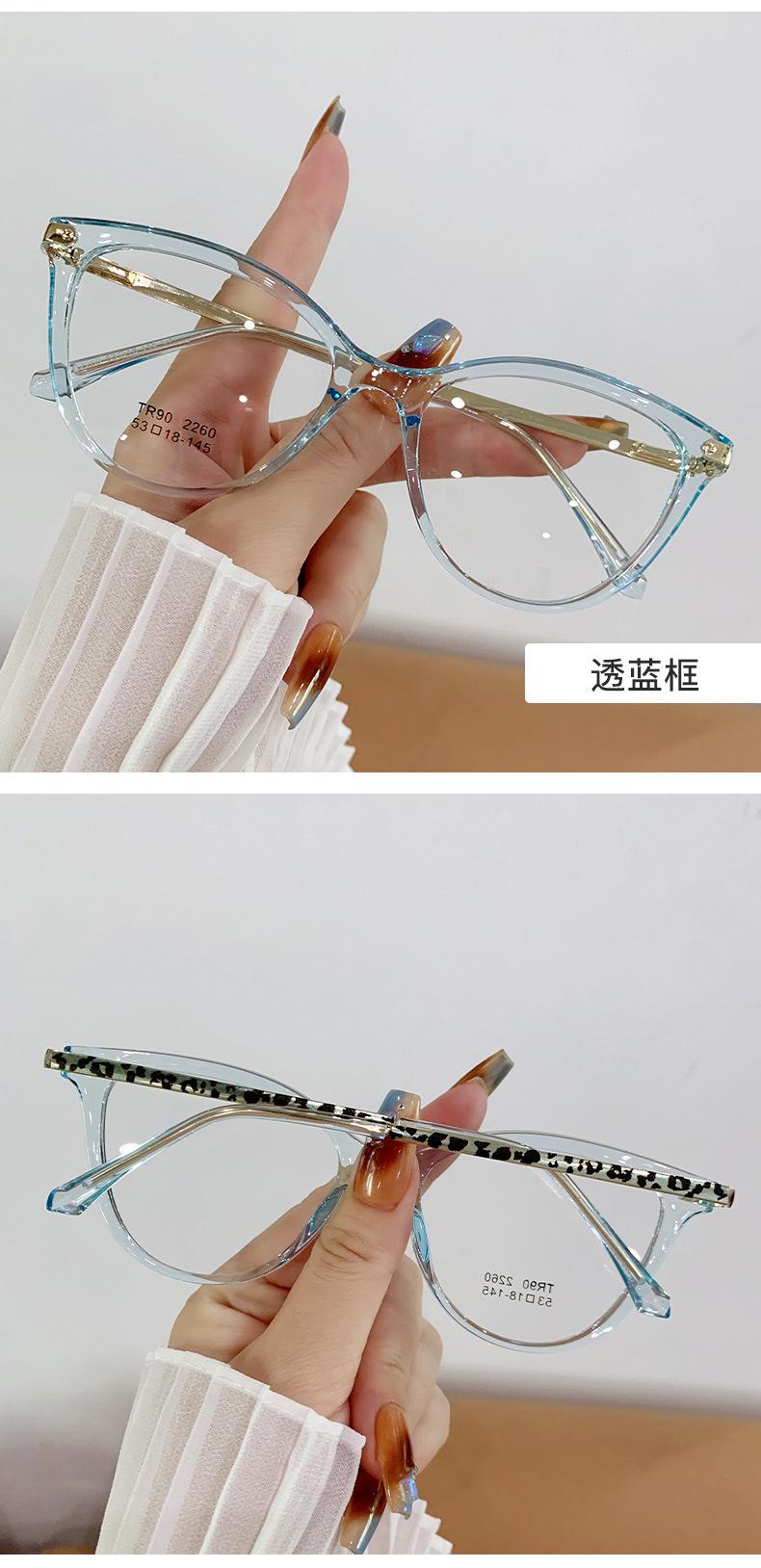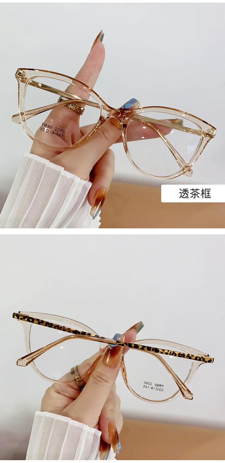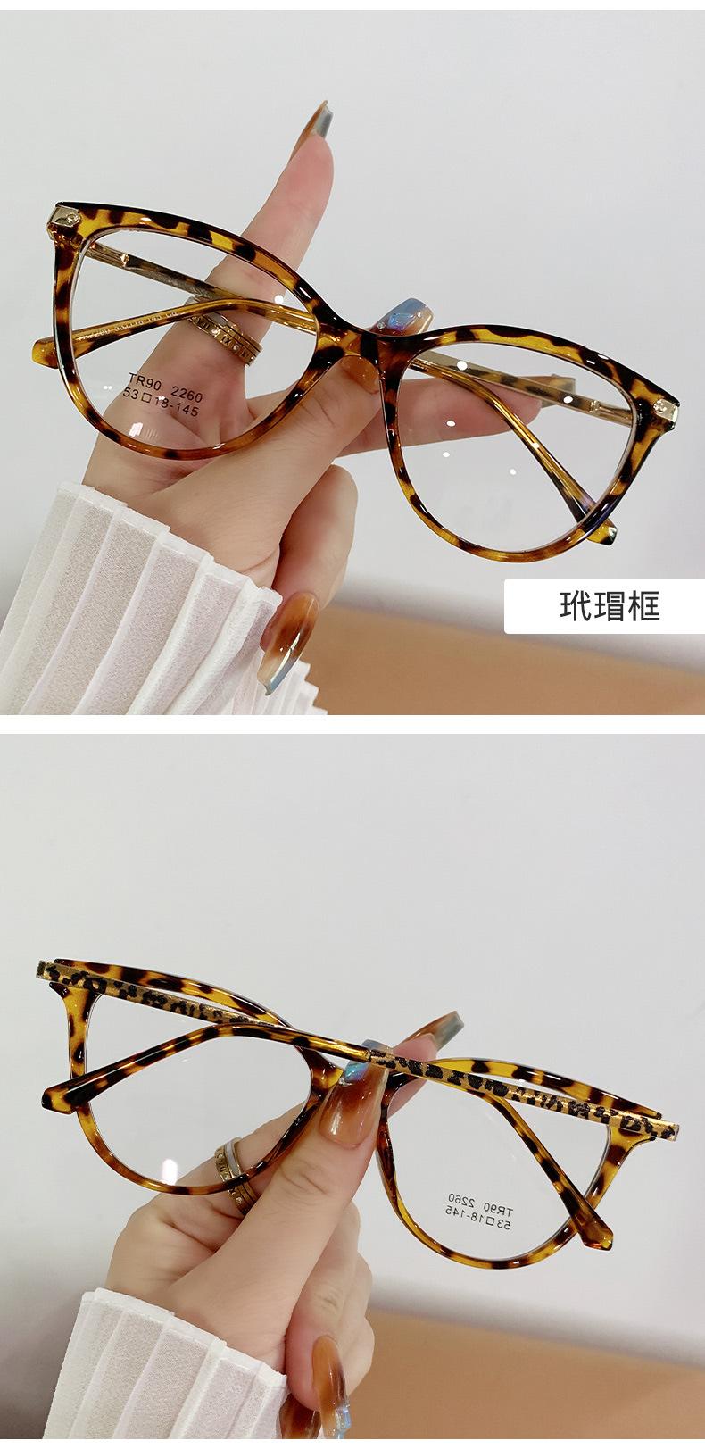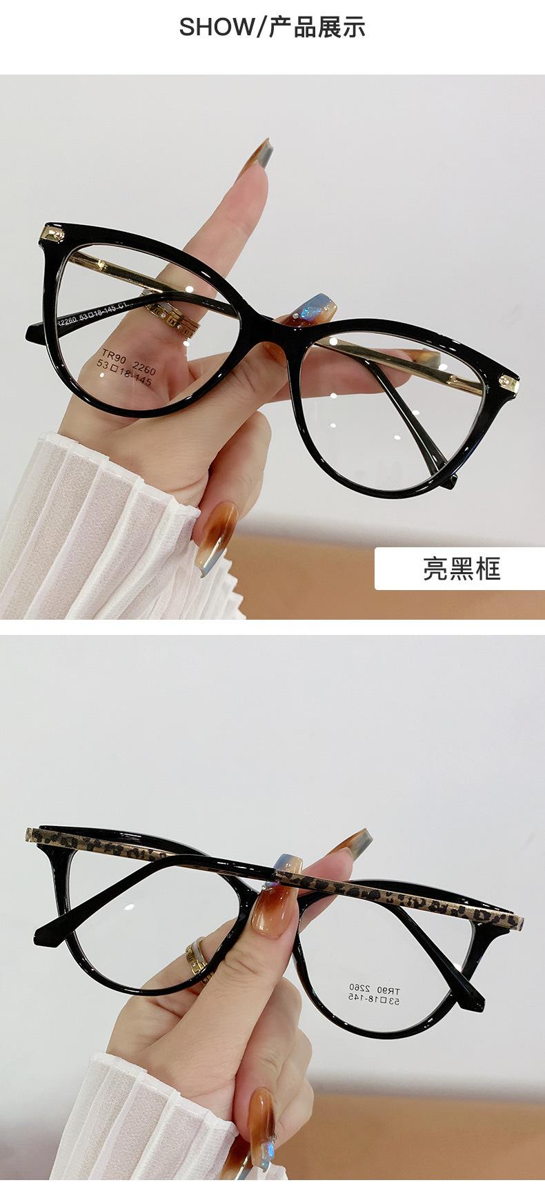 Montura de gafas de ojo de gato de moda para mujer, personalizada, transfronteriza, coreana, TR90, espejo plano, montura de gafas lisa europea y americana.