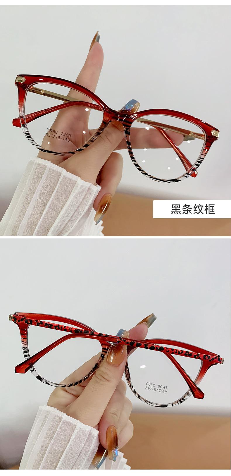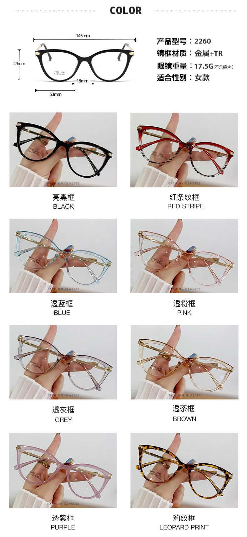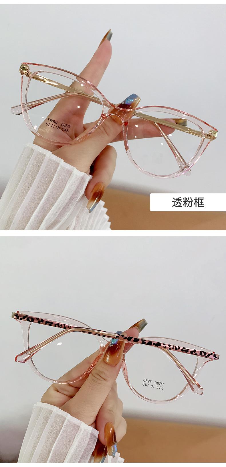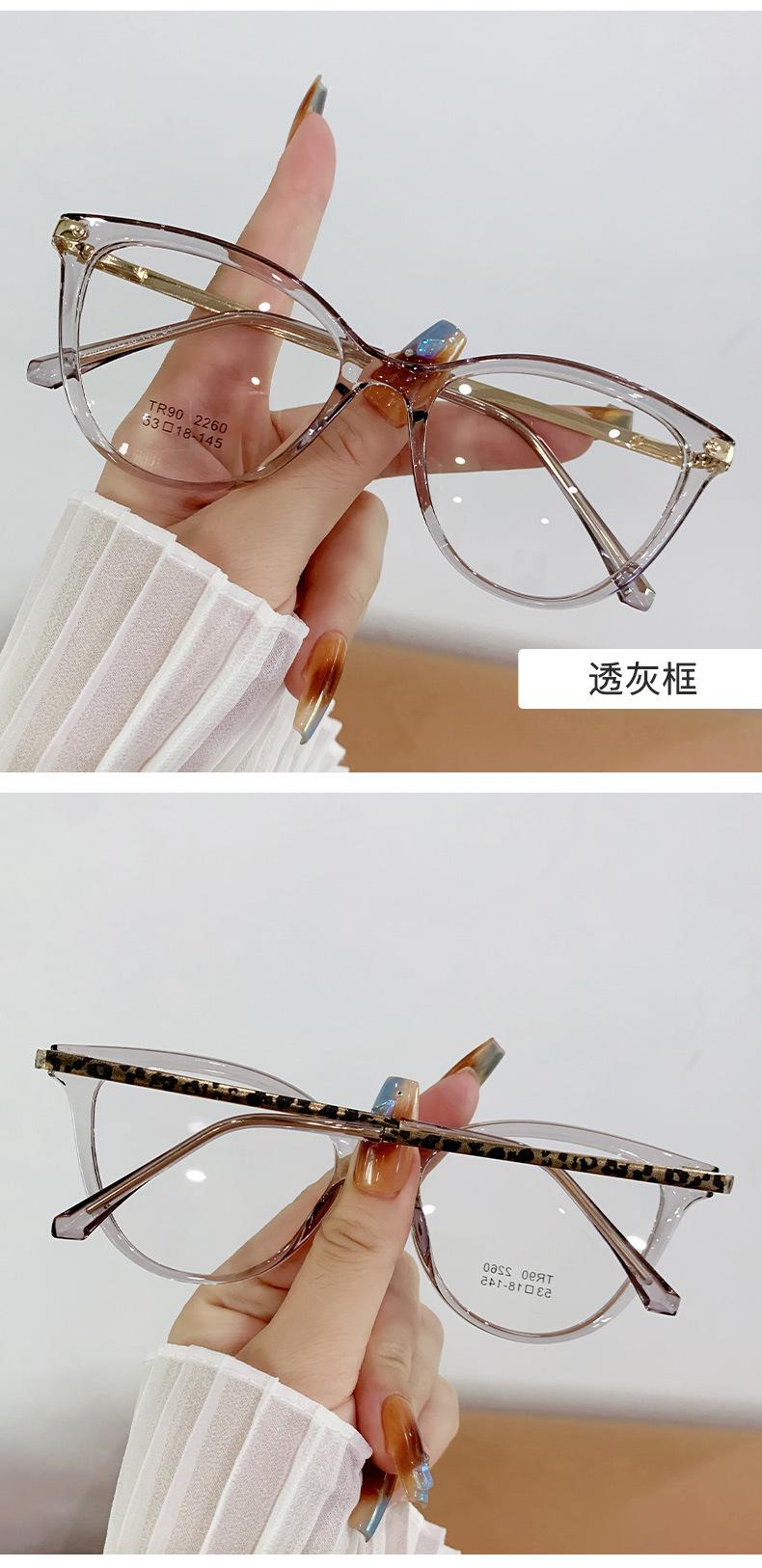 Montura de gafas de ojo de gato de moda para mujer, personalizada, transfronteriza, coreana, TR90, espejo plano, montura de gafas lisa europea y americana.
