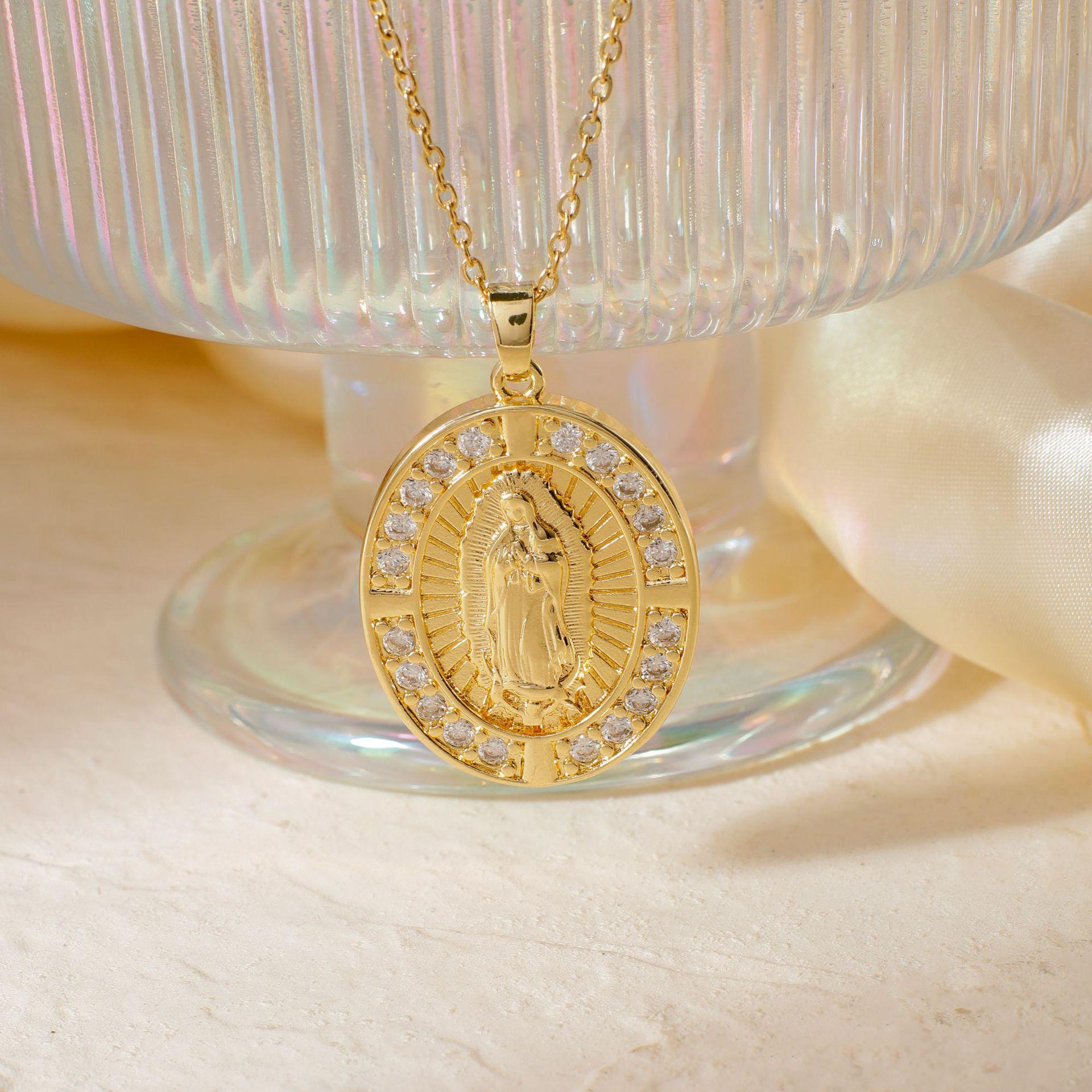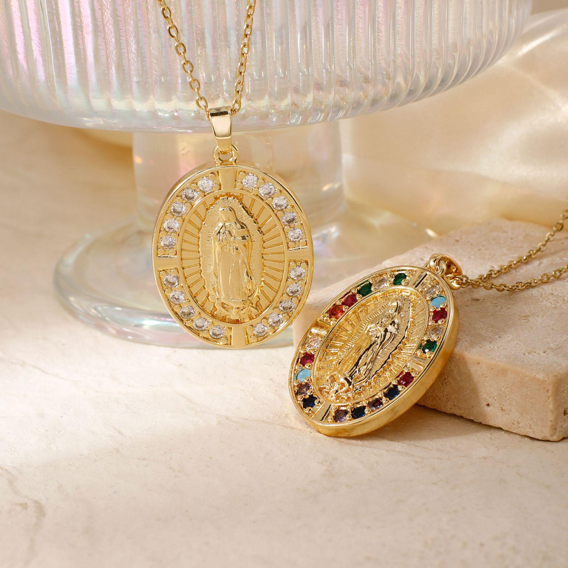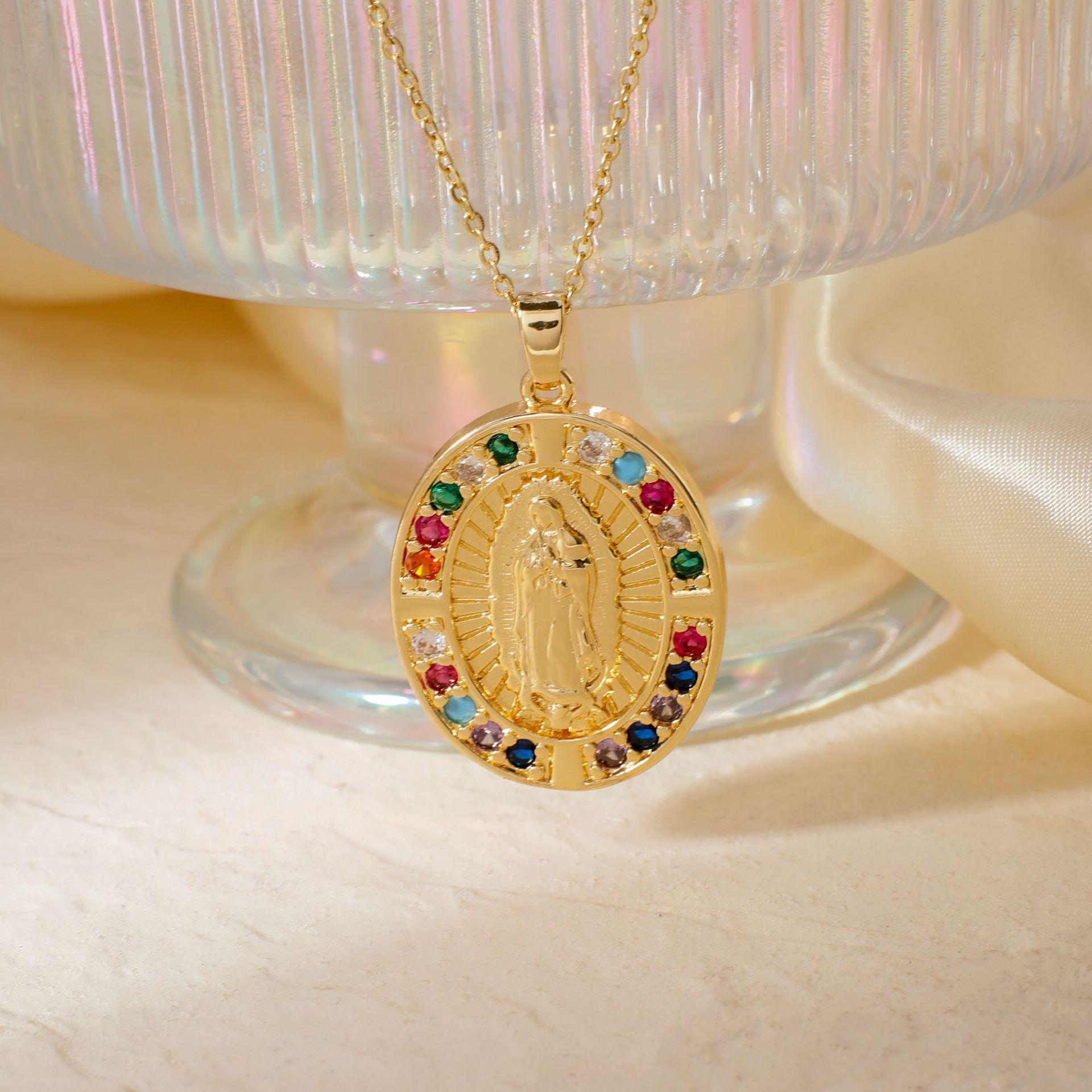 Moxi - Nuevo colgante de cobre con circonitas geométricas redondas de la Virgen María, collar vintage de alta gama para mujer