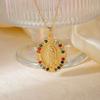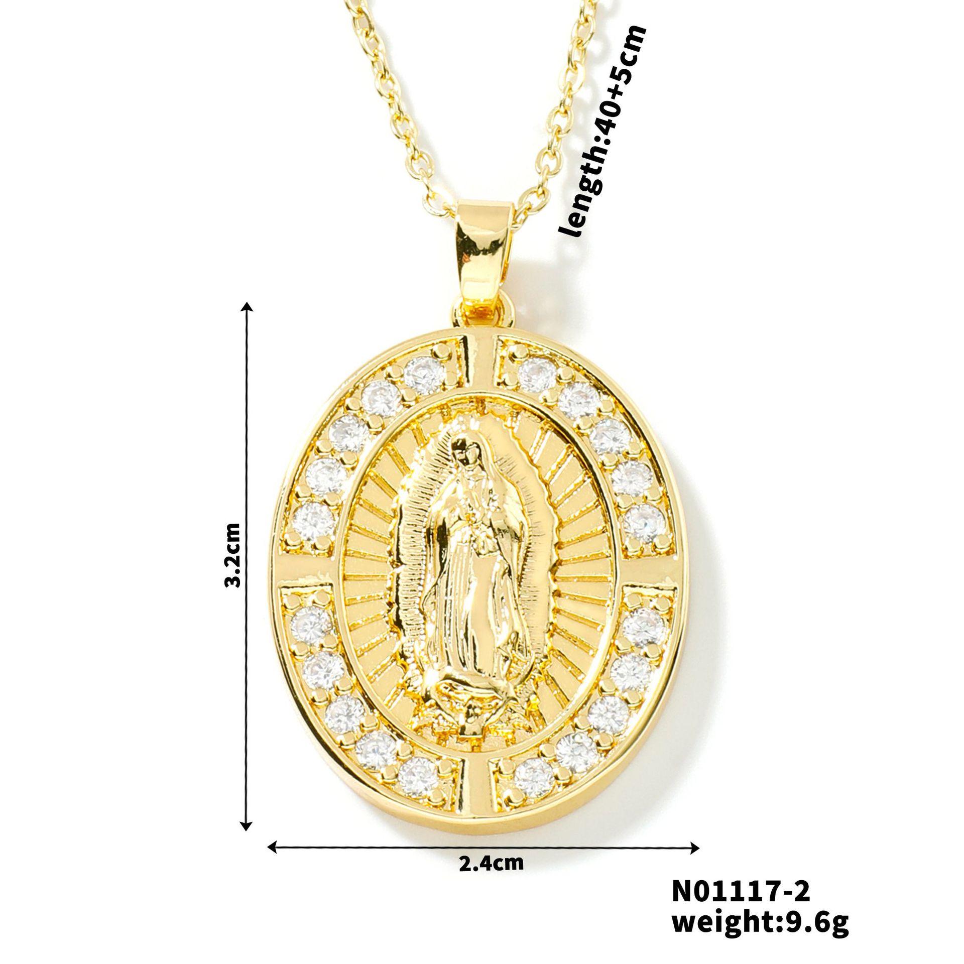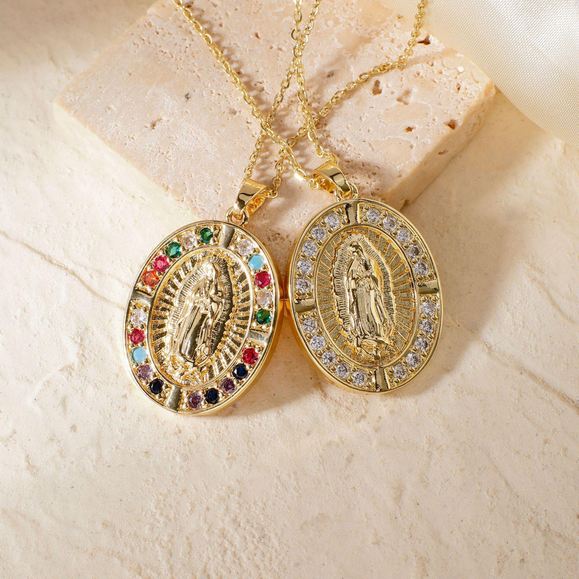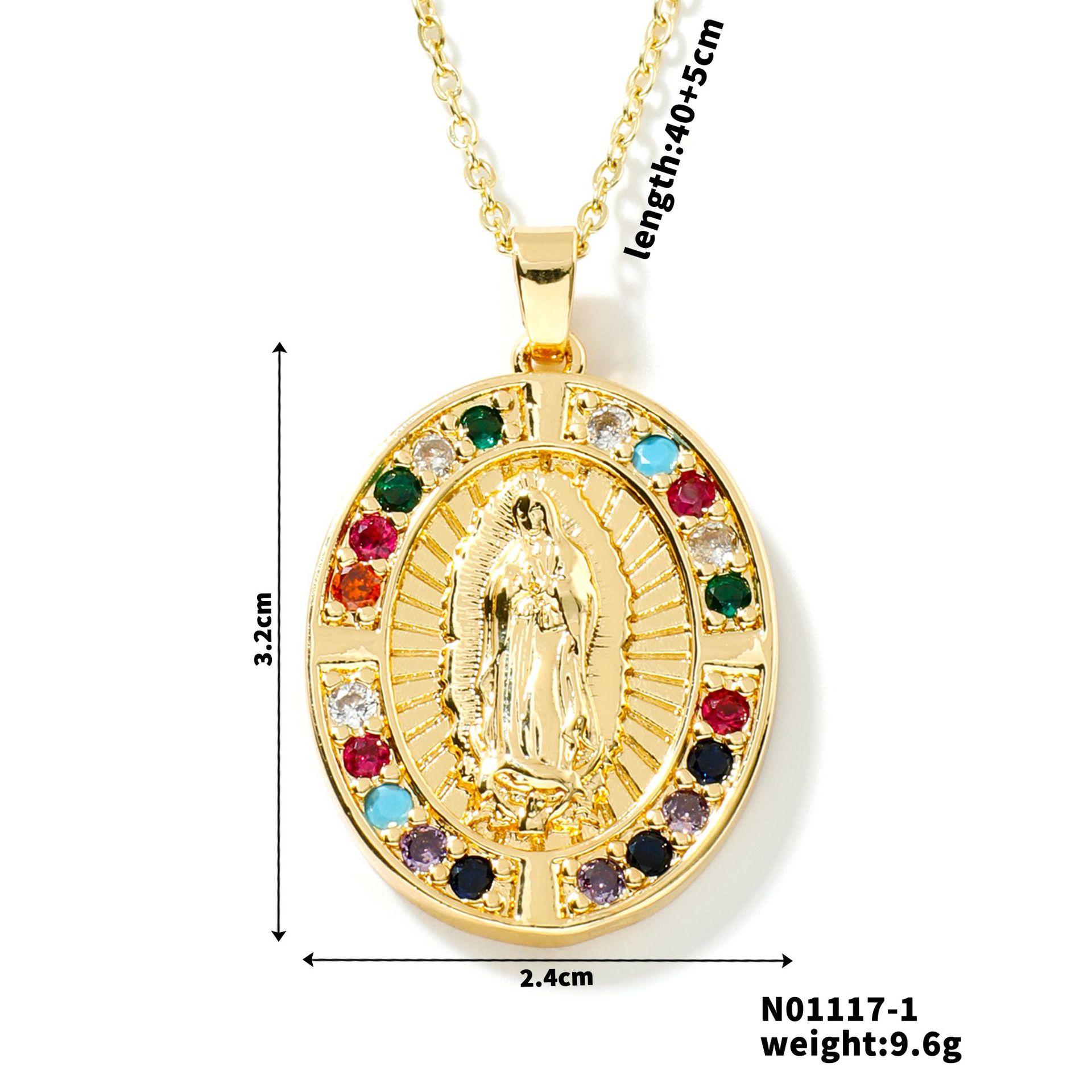Moxi - Nuevo colgante de cobre con circonitas geométricas redondas de la Virgen María, collar vintage de alta gama para mujer