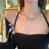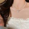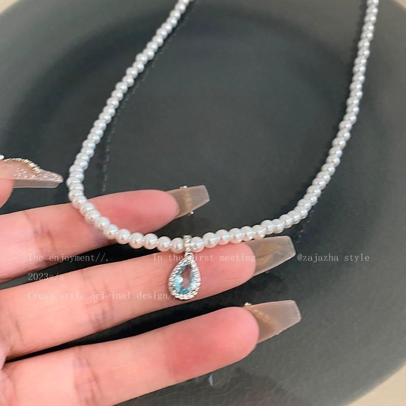 Collar con colgante de gota de agua de zafiro y perlas para mujer, ligero, lujoso, retro, elegante, moderno, versátil, cadena para el cuello y la clavícula.