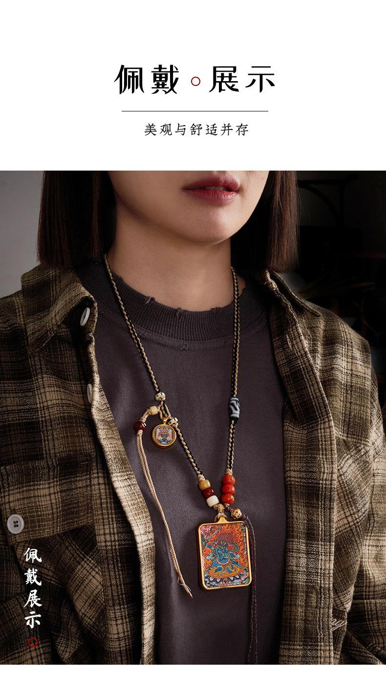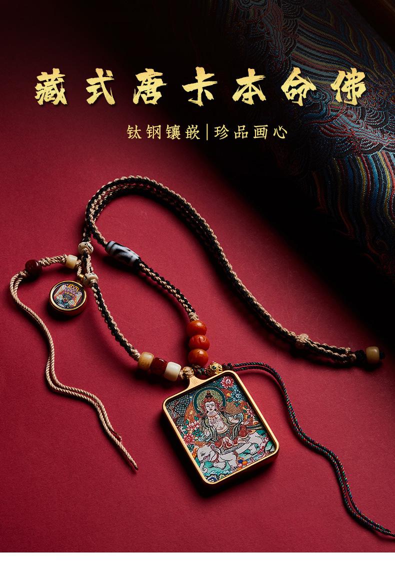 Collar Colgante Acero Titanio Xizang Thangka Ocho Benmingbuddha Manjusri Puxian Bodhisattva Cadena de Lana de Dragón Colgante