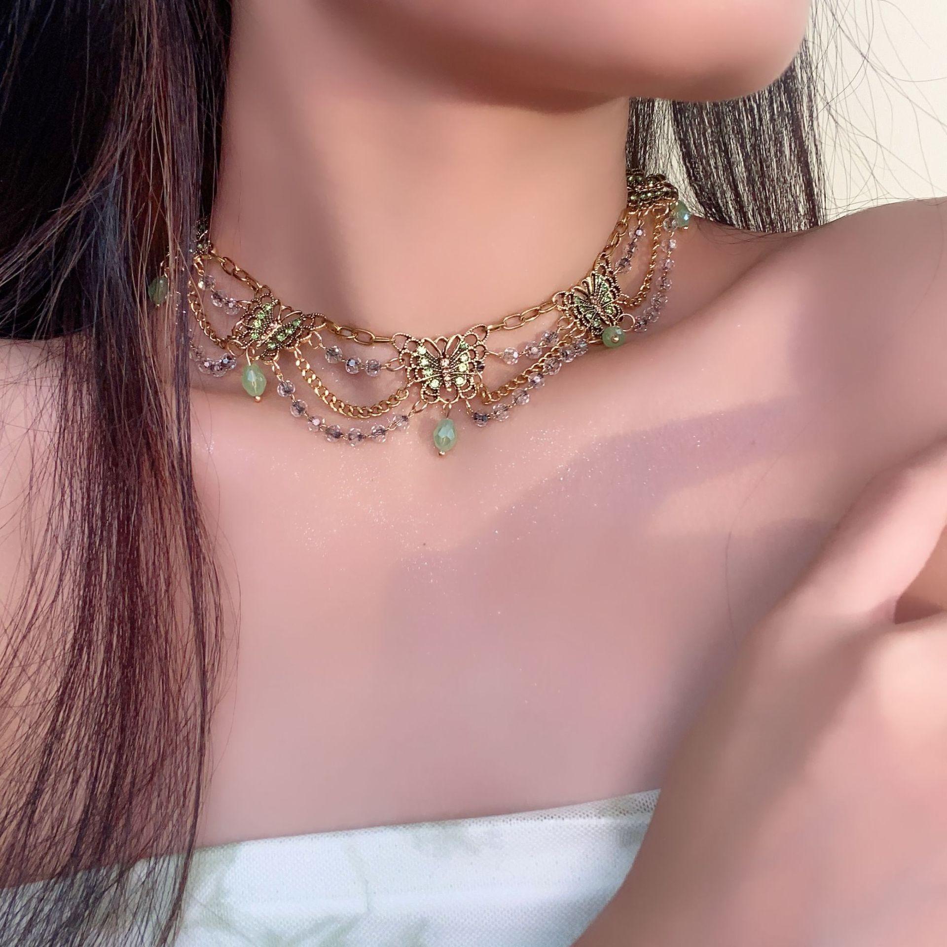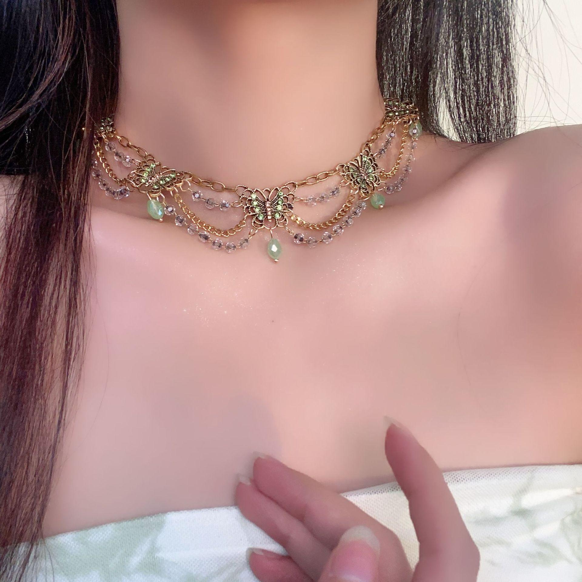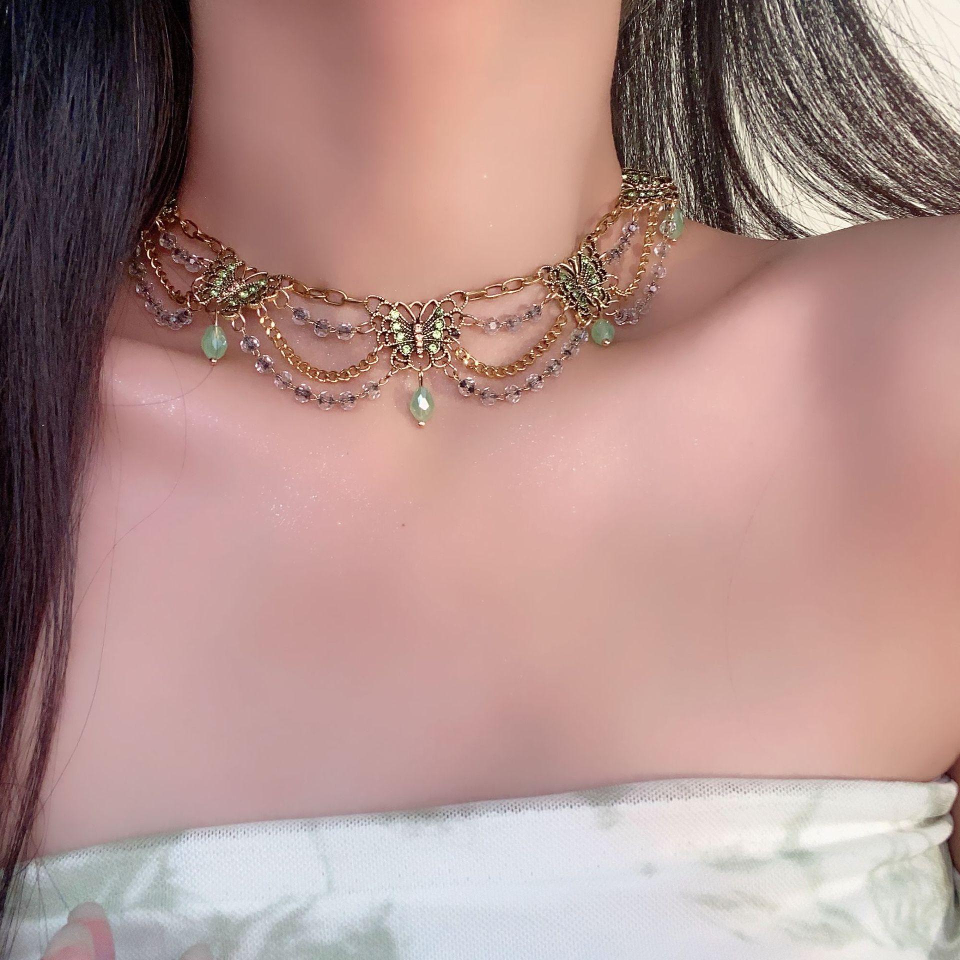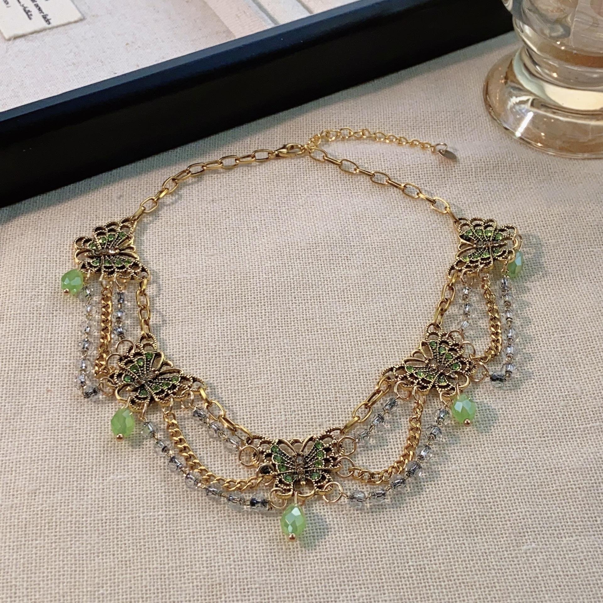 Nuevo collar de mariposa verde estilo chino, combinable con todo, con borlas multicapa y cadena de clavícula de alta gama para mujer.