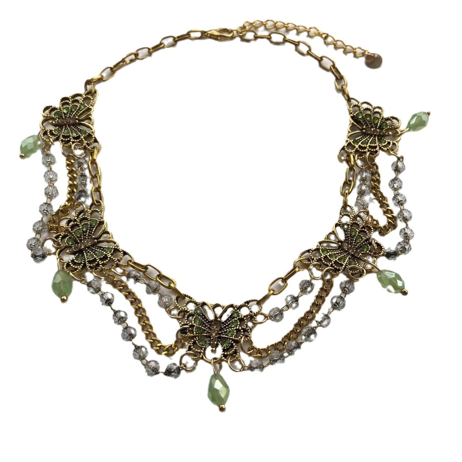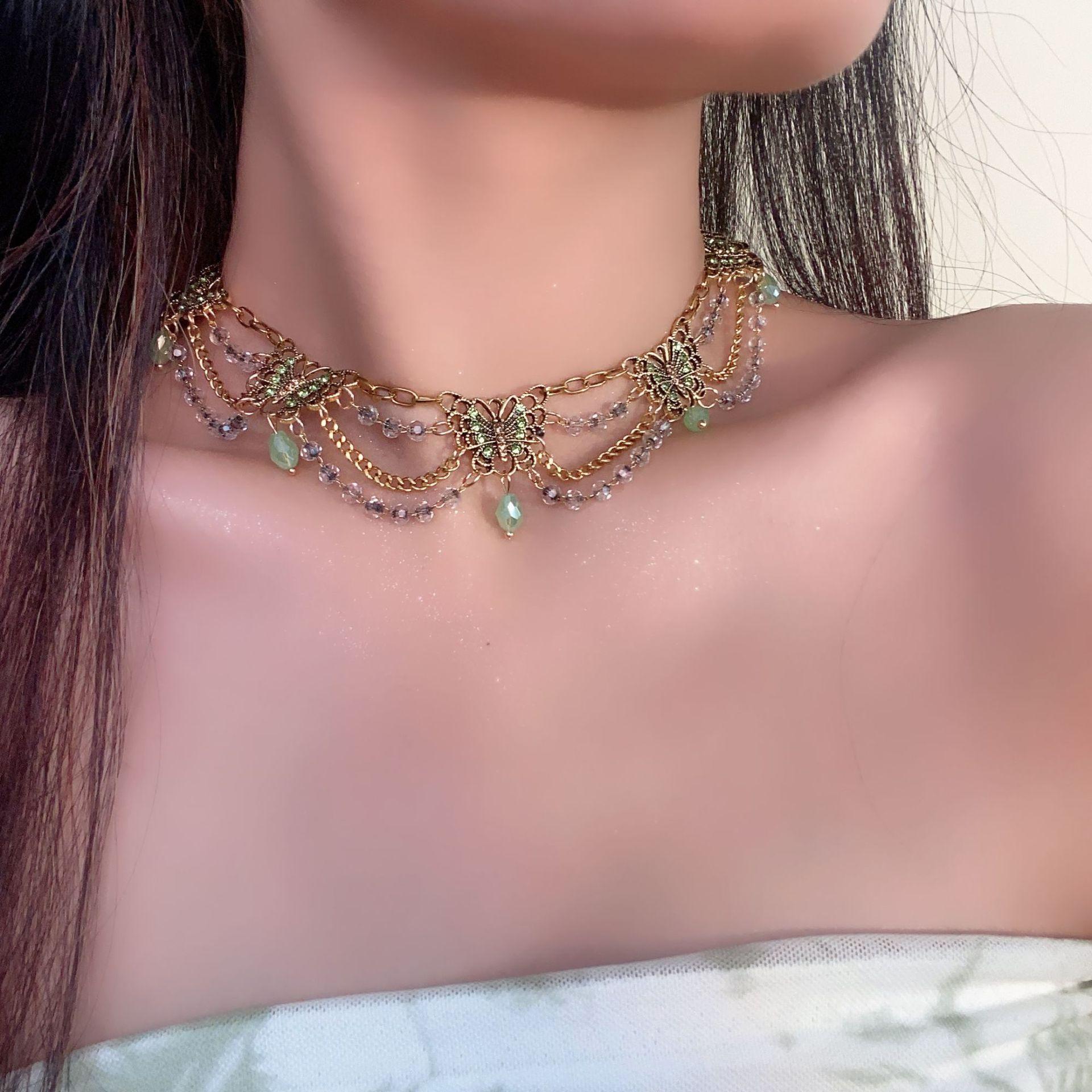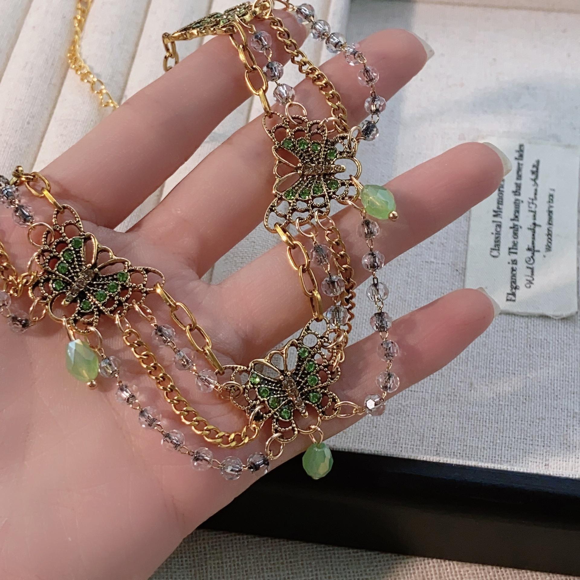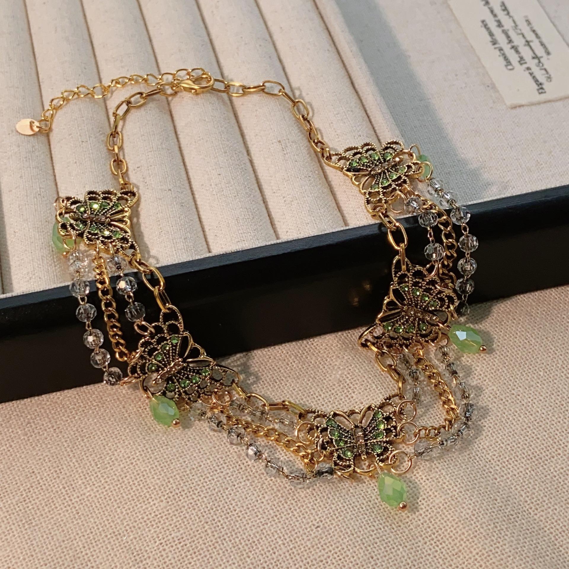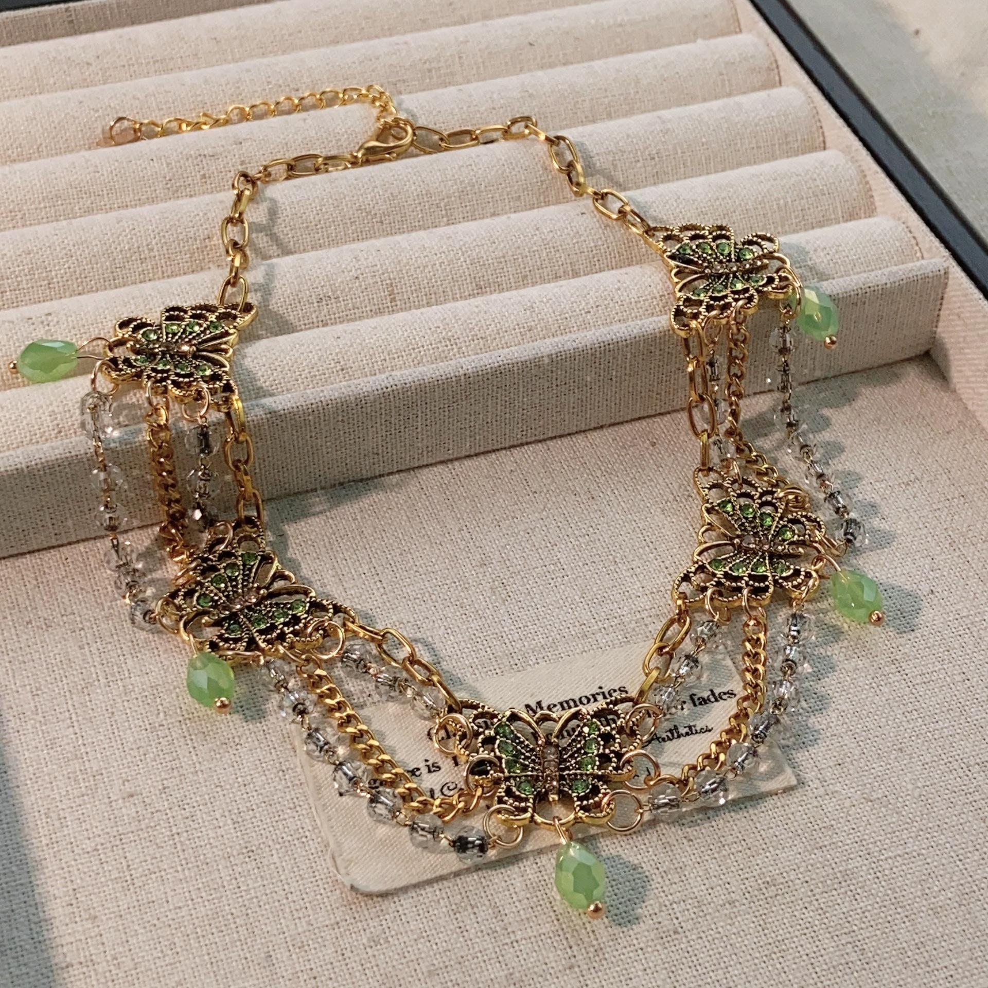 Nuevo collar de mariposa verde estilo chino, combinable con todo, con borlas multicapa y cadena de clavícula de alta gama para mujer.
