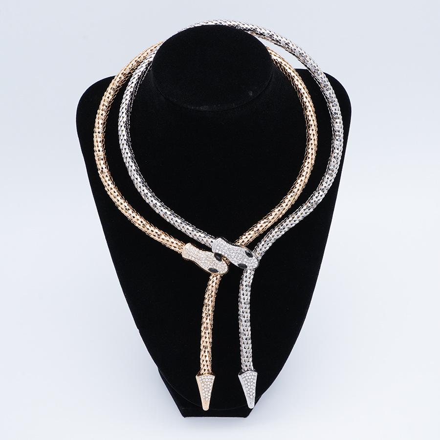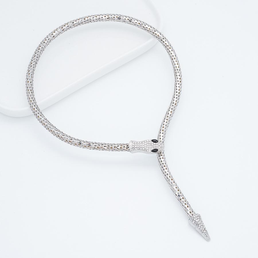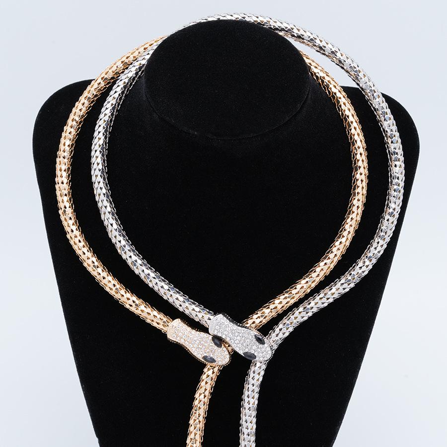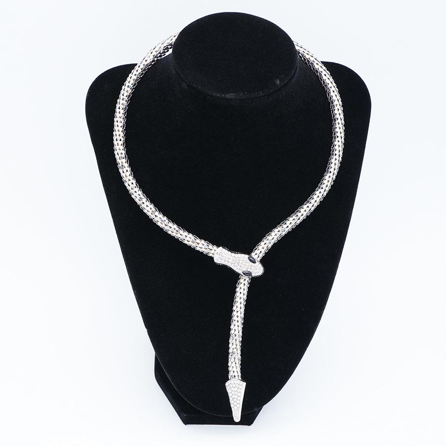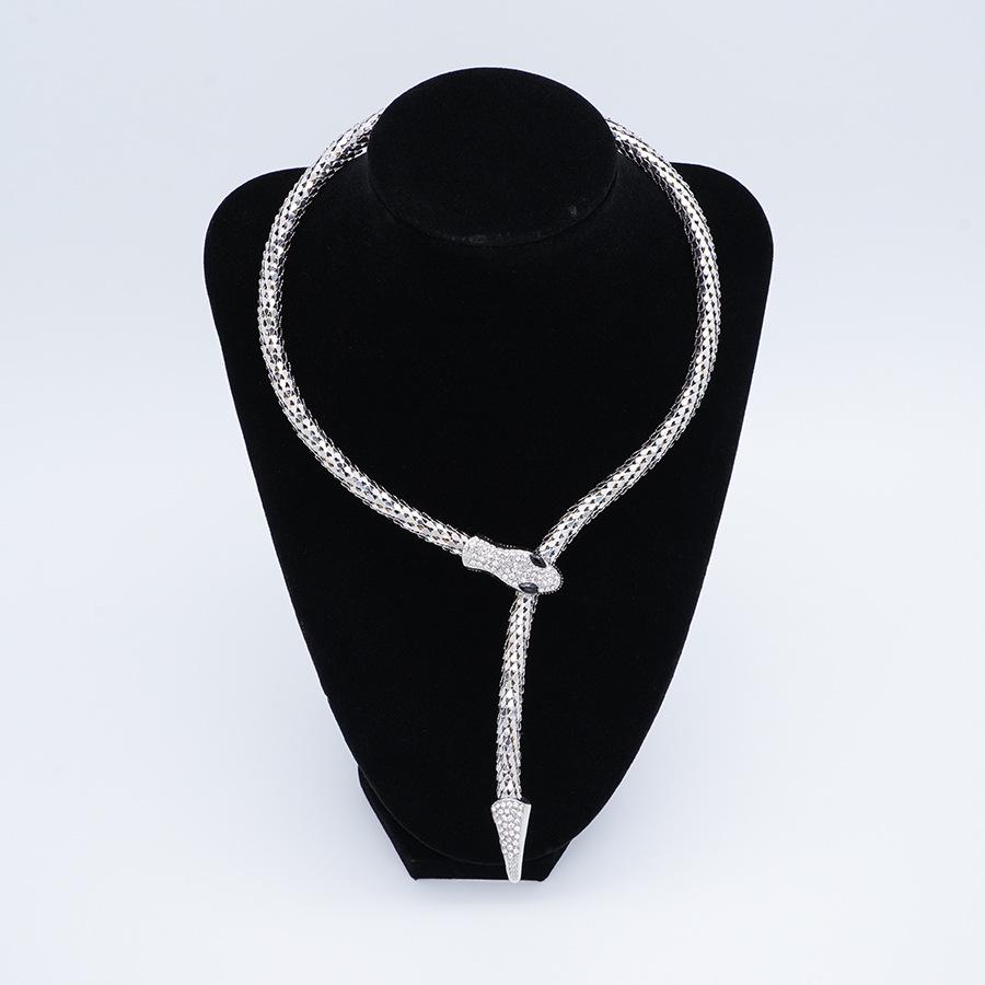 Collar Europeo y Americano Personalizado Retro Cadena Hueso de Serpiente Aleación Forma de Serpiente Punto Diamante Magnético Estilo Punk Exagerado Collar Largo