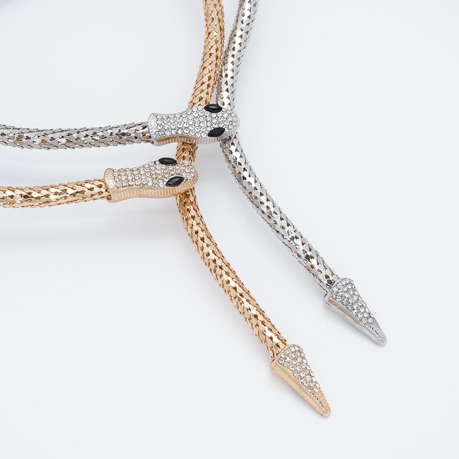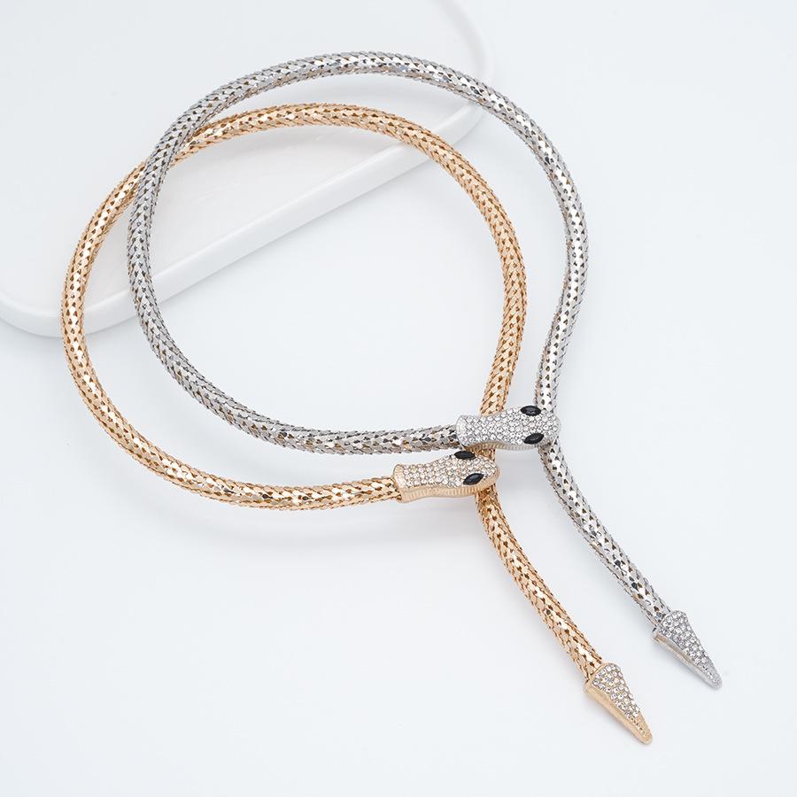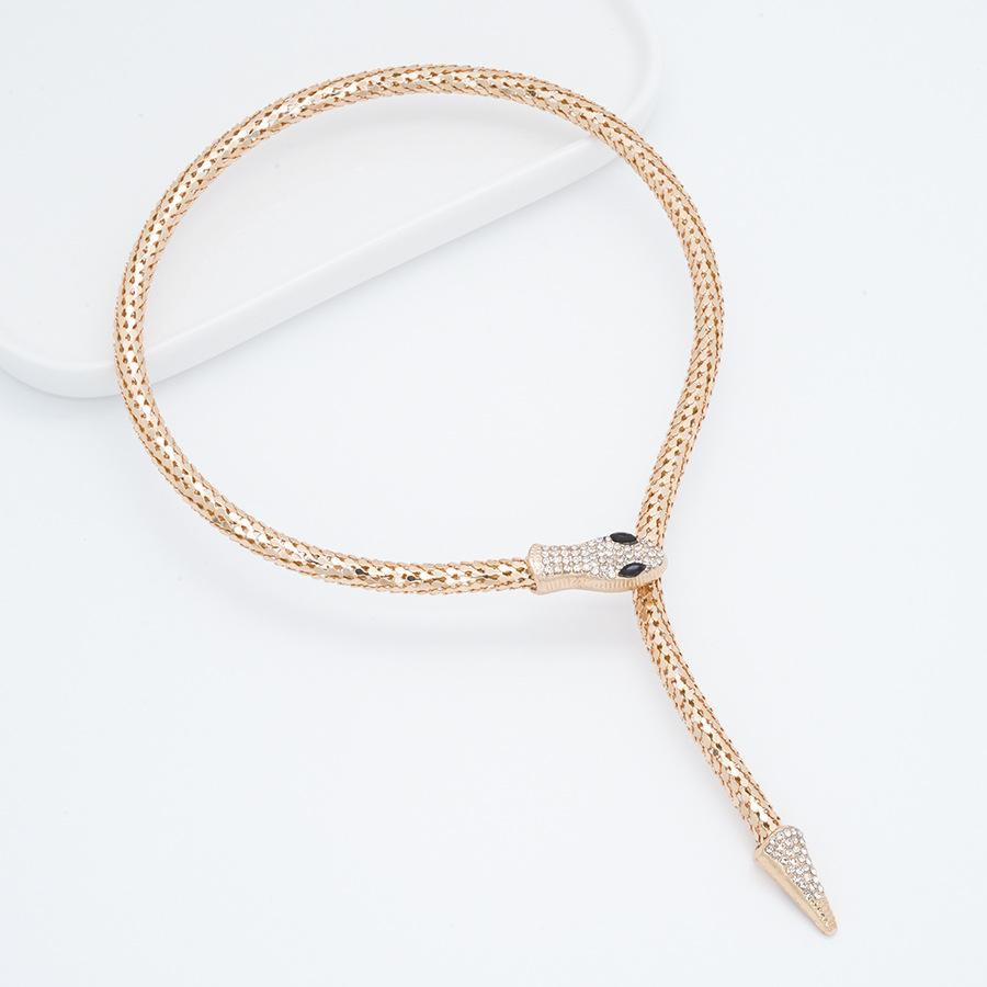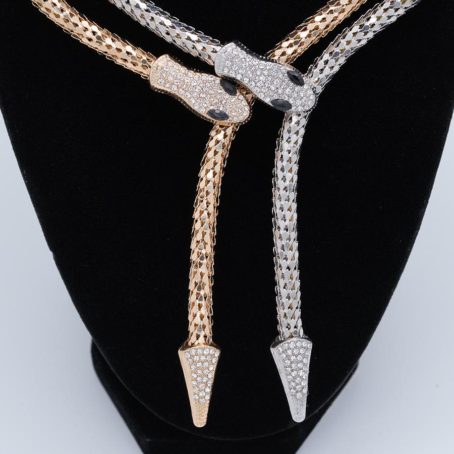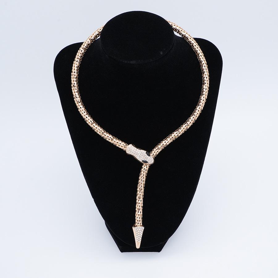 Collar Europeo y Americano Personalizado Retro Cadena Hueso de Serpiente Aleación Forma de Serpiente Punto Diamante Magnético Estilo Punk Exagerado Collar Largo