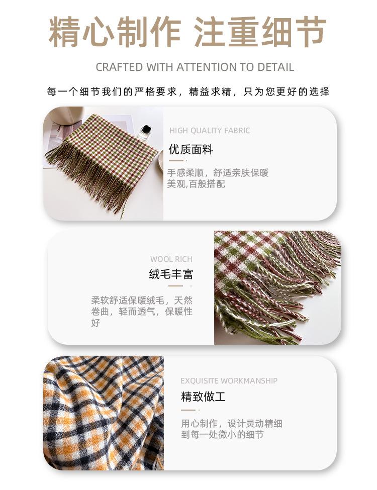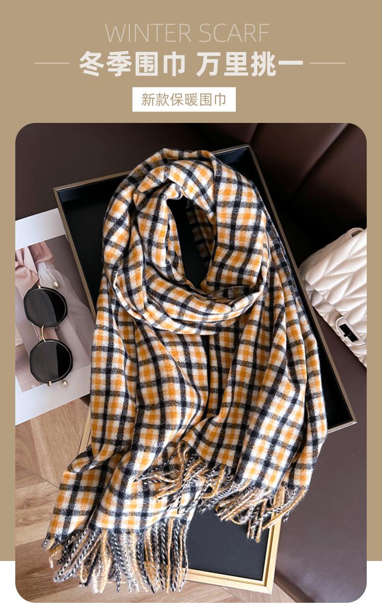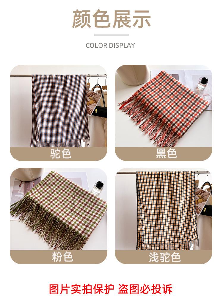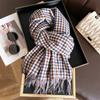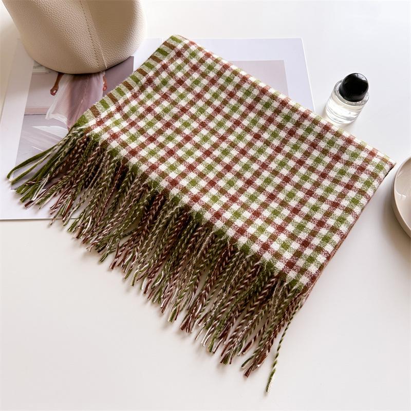 Bufanda chal cálida de imitación de cachemira a cuadros, estilo británico, unisex, de moda para otoño e invierno, con borlas que combinan con todo.