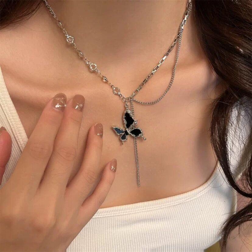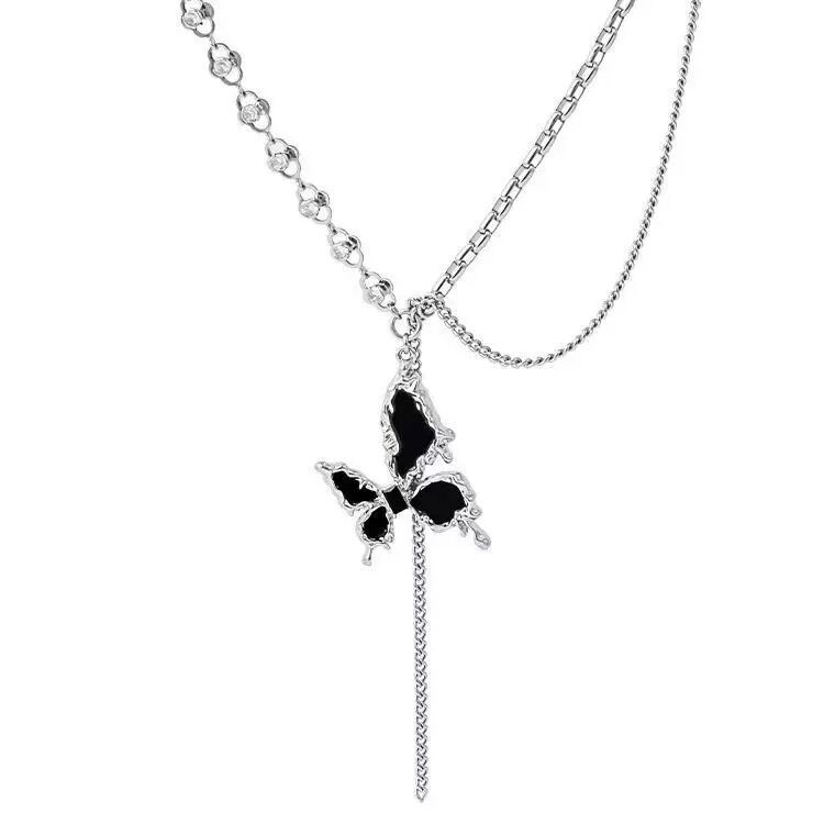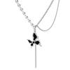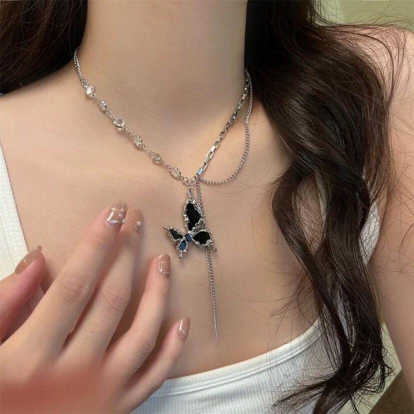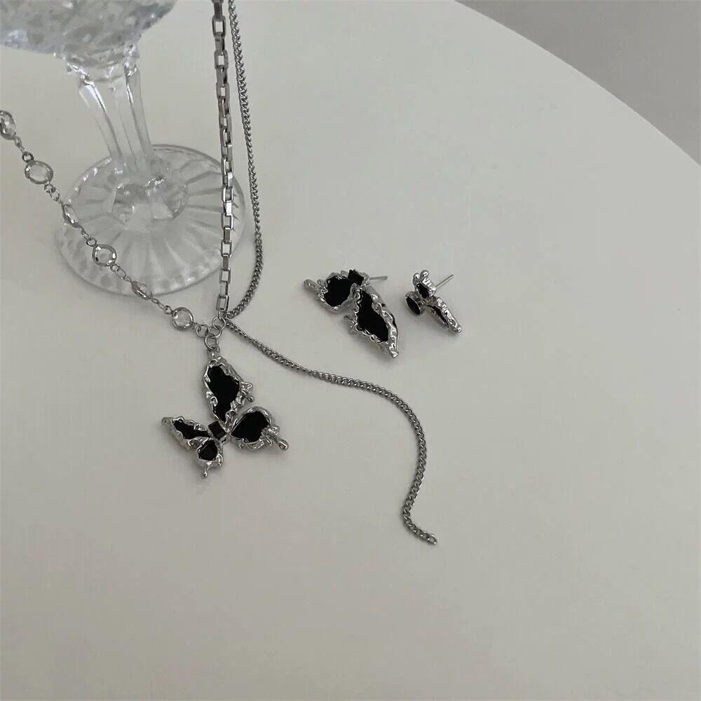 Collar y pendientes de mariposa negra con diseño de nicho para mujer, cadena de clavícula de temperamento, accesorios de collar de alta calidad, anillo de estilo frío a la moda.