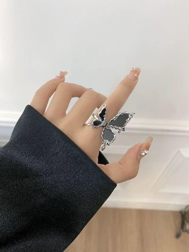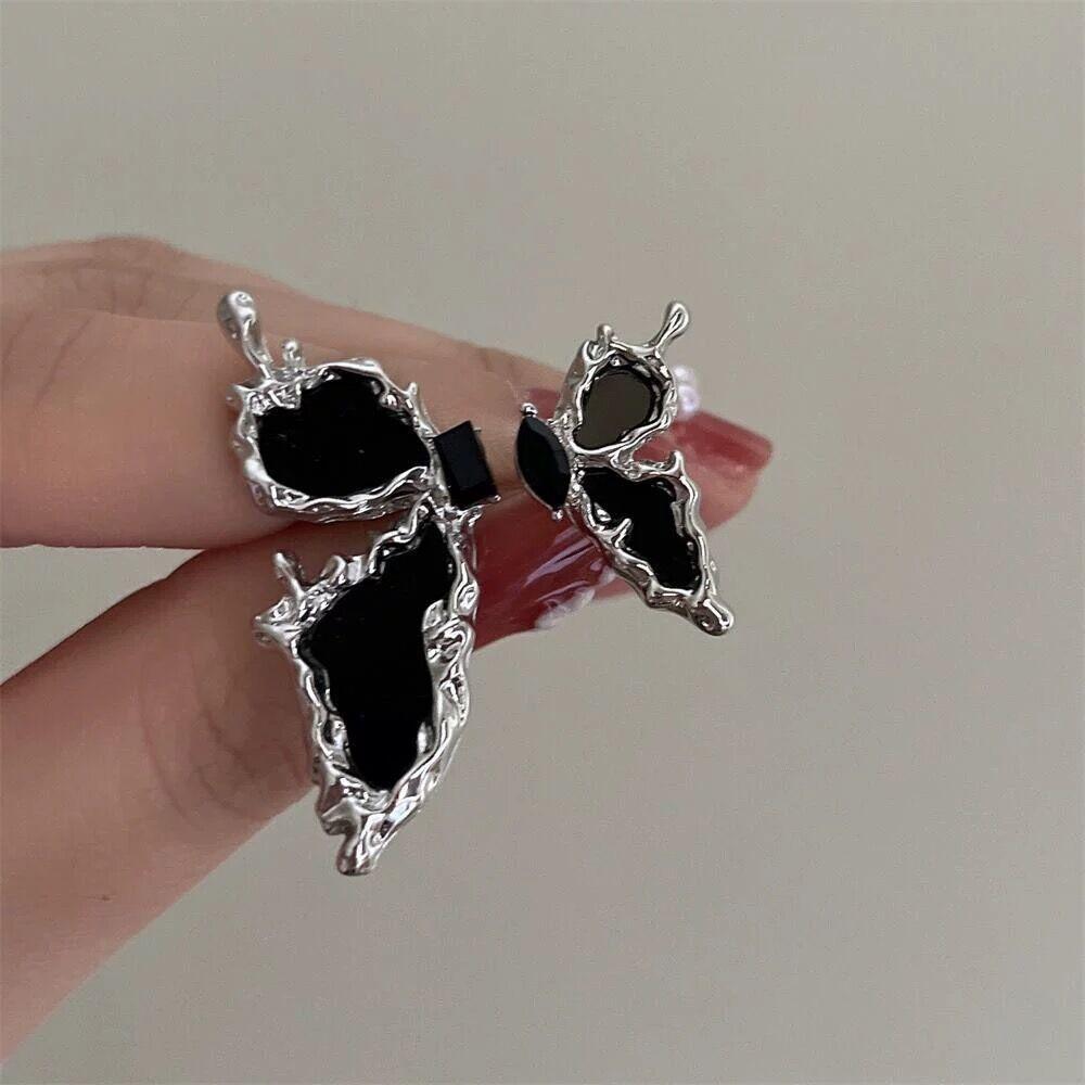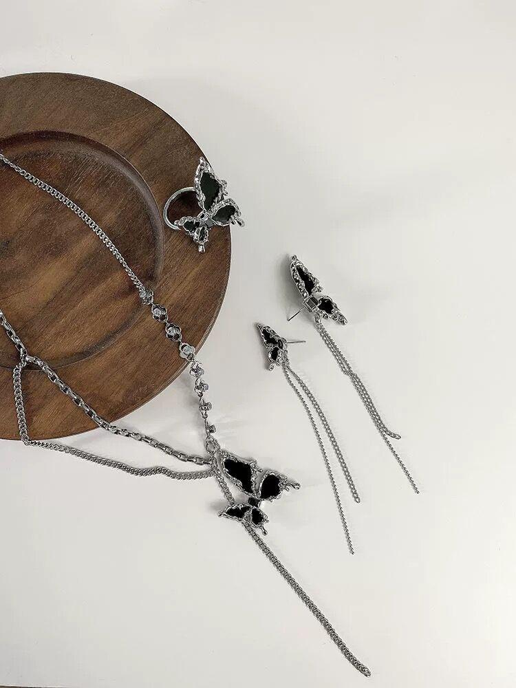 Black Butterfly Earrings, Black Butterfly Necklace, Black Butterfly Ring