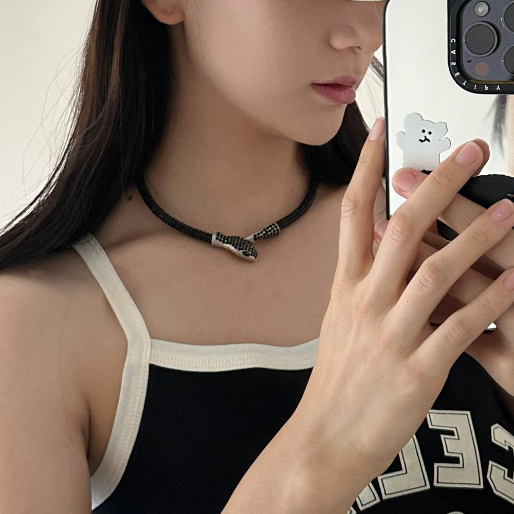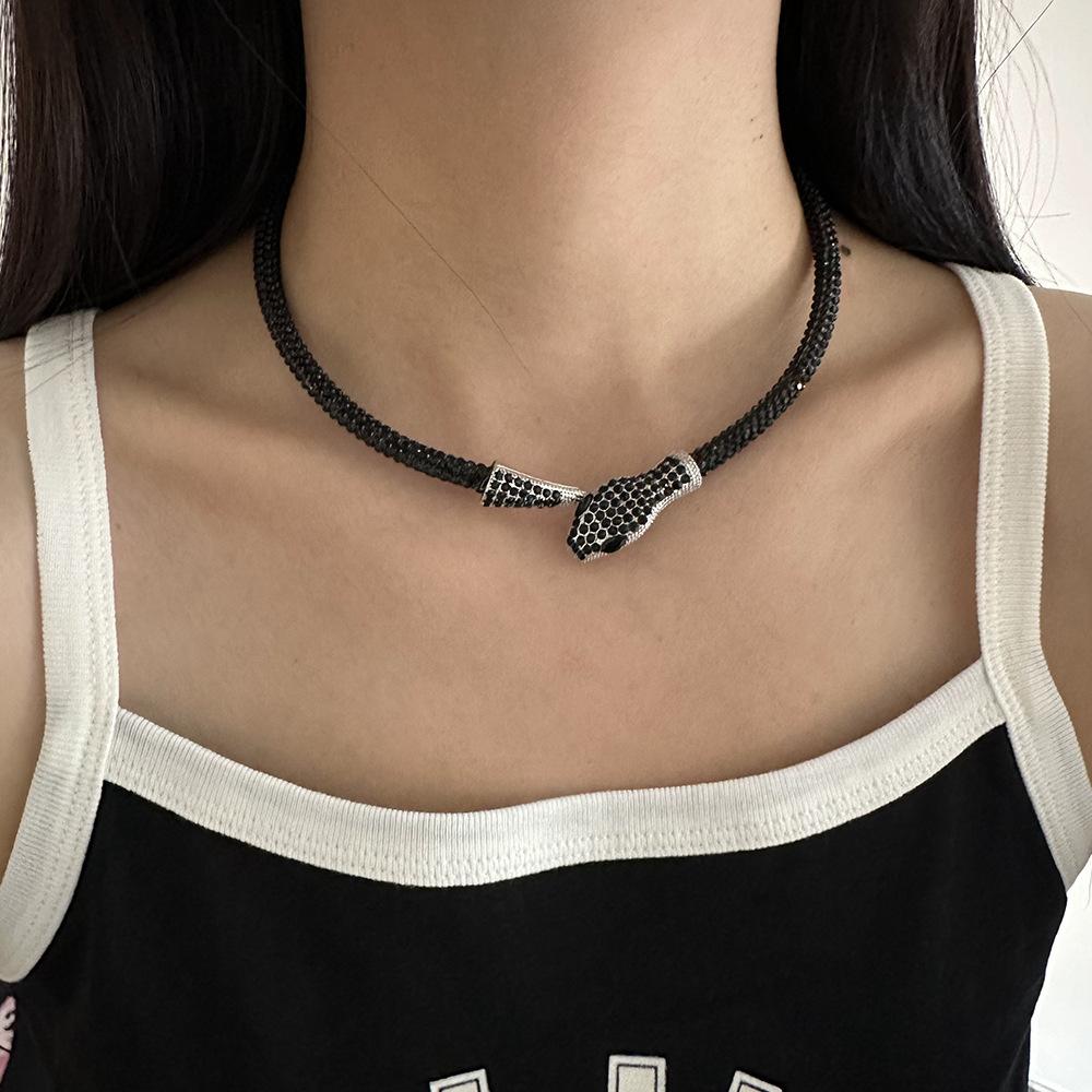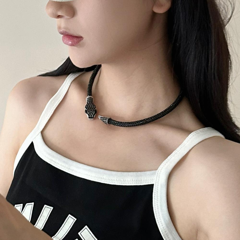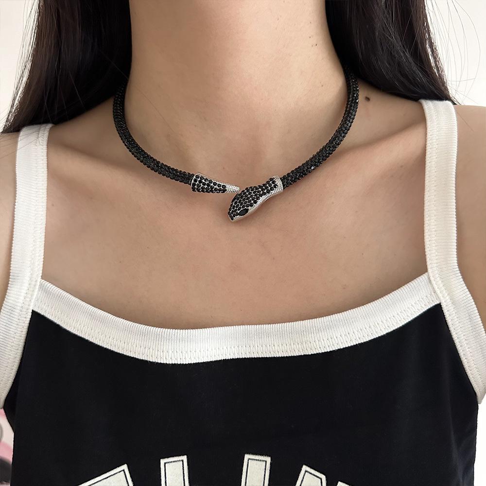 Dulce Chica Picante Cool Diamante Abertura Gargantilla Serpiente Collar Exagerado Nicho Estilo Frío para Mujer Anillo de Cuello Estilo Nuevo de Alta Gama