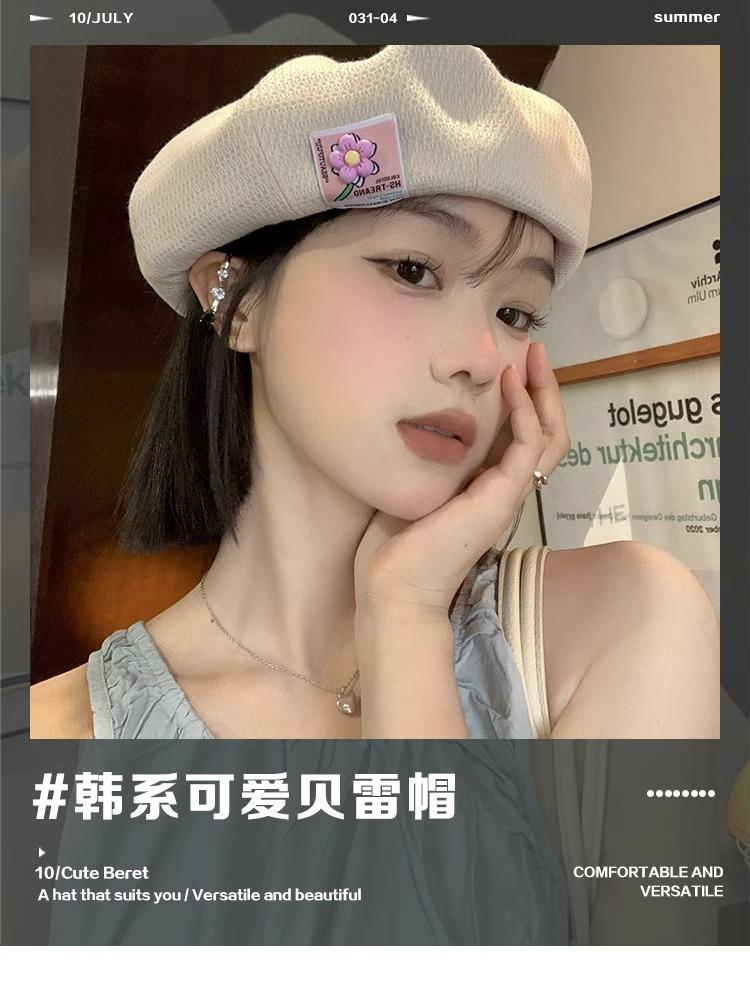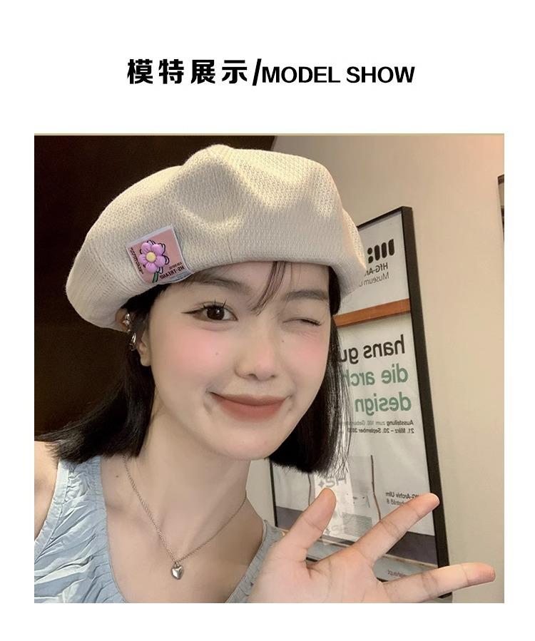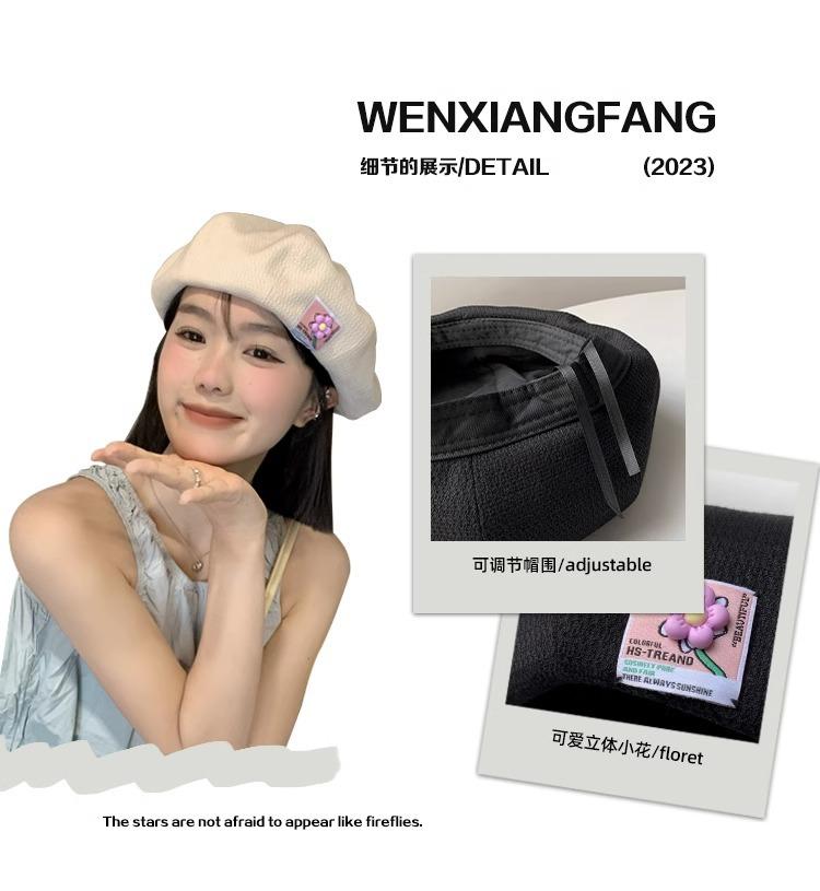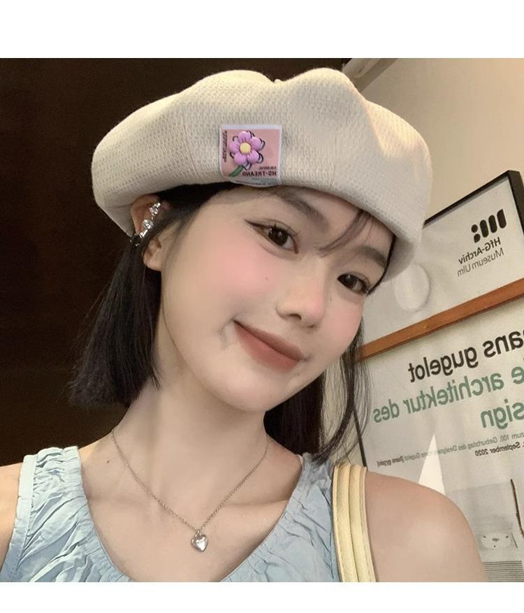 Sombrero de pintor Beilei con linda flor de estilo japonés, boina pequeña para mujer con cabeza grande, sombrero octogonal para otoño e invierno, a la moda