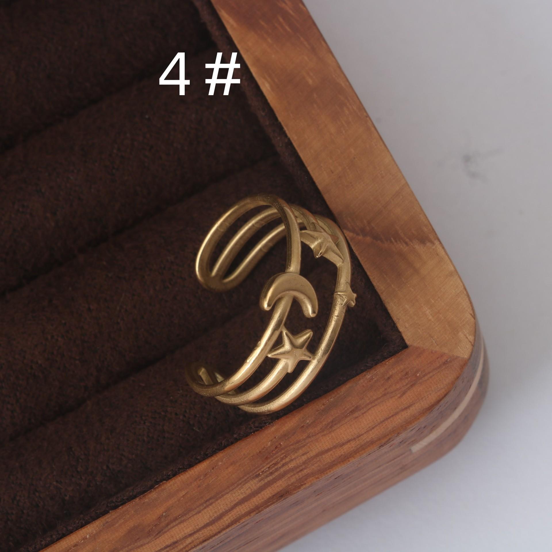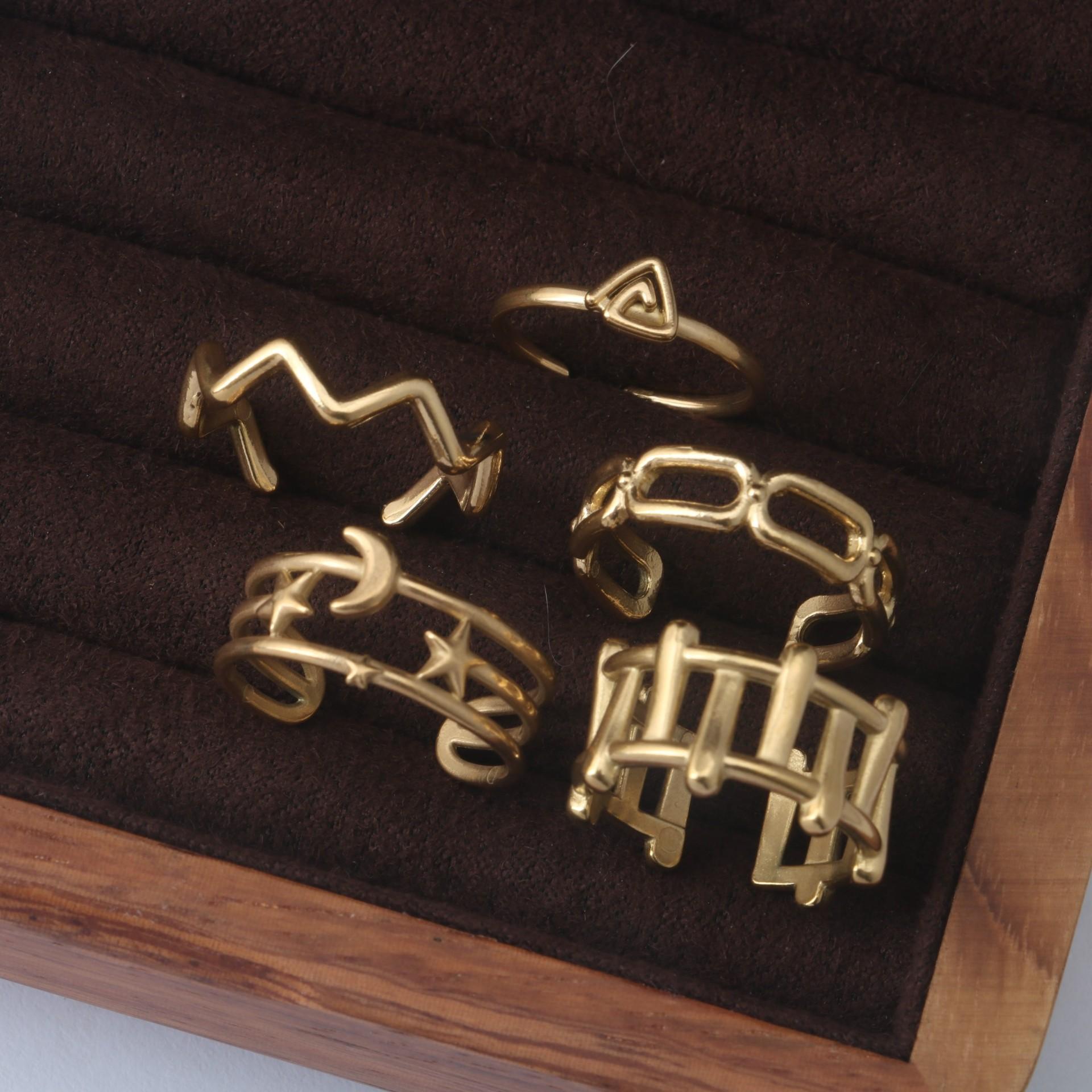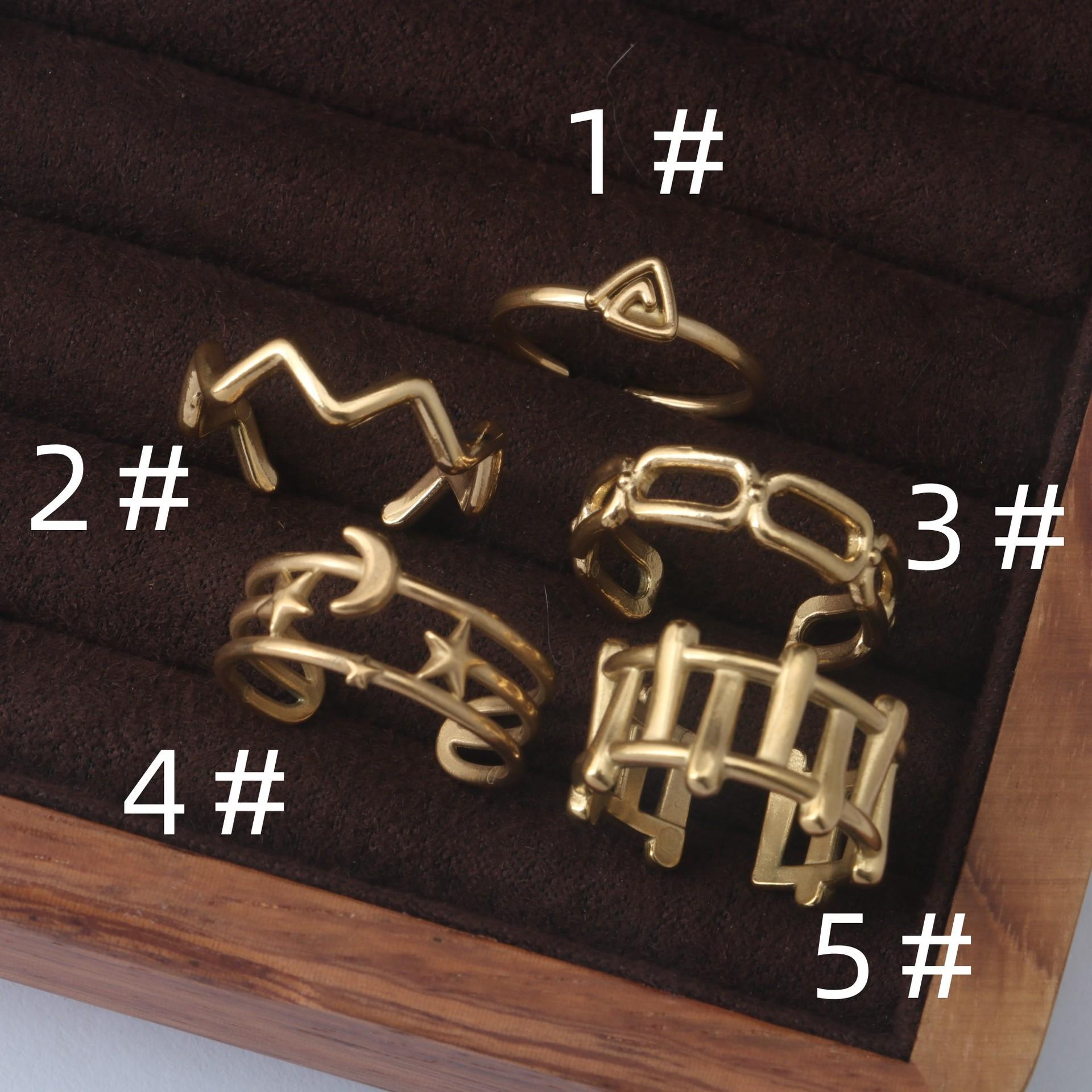 Anillo de acero inoxidable para mujer abertura hueca ajustable acero de titanio dorado líneas geométricas estrellas luna por mayoreo