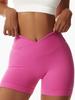 Pantalones cortos de yoga europeos y americanos con realce de cadera de color melocotón, pantalones cortos deportivos ajustados sin costuras para correr con cintura alta y elásticos para mujer