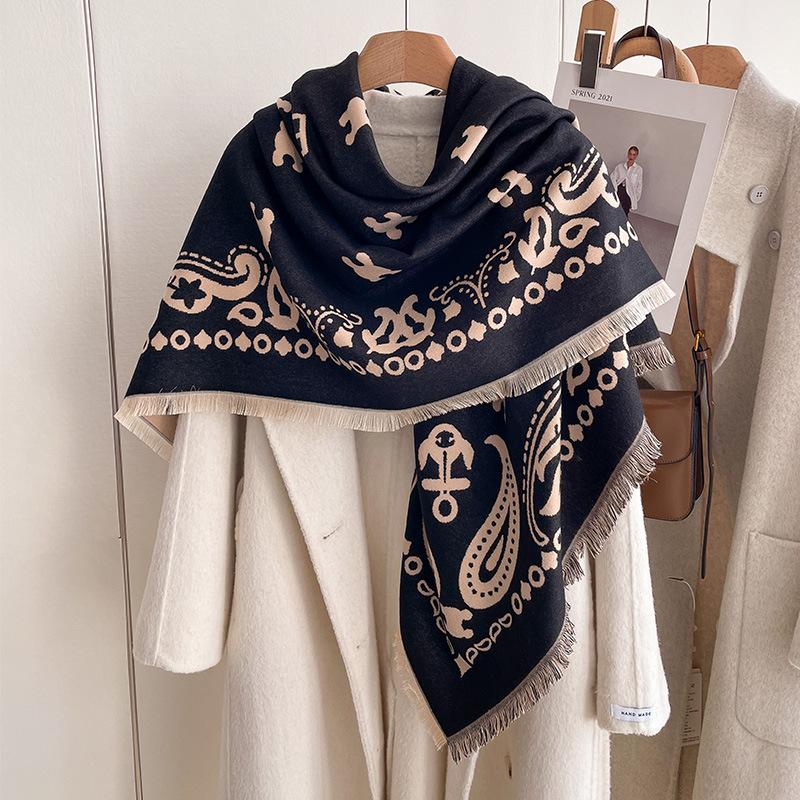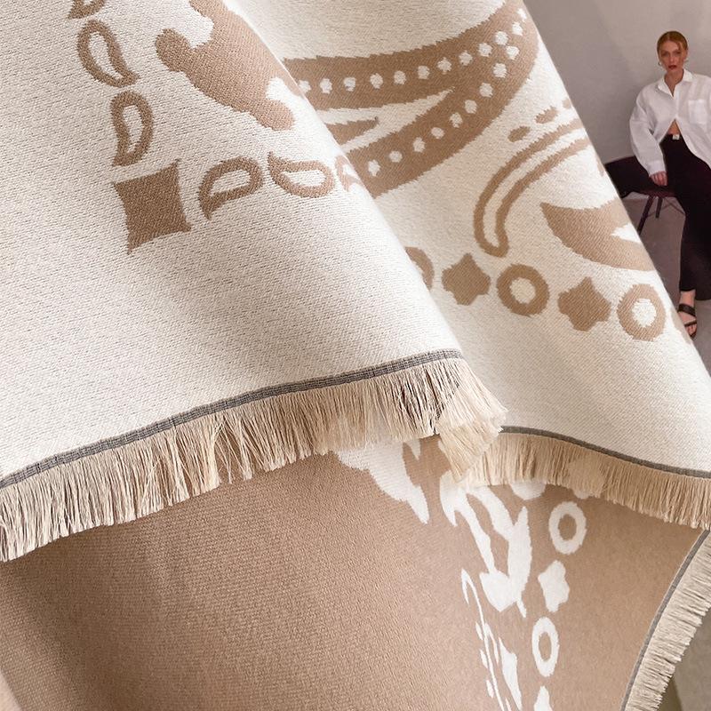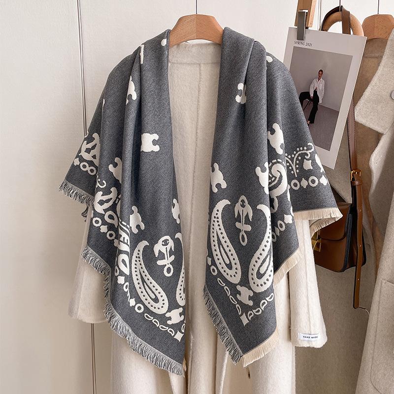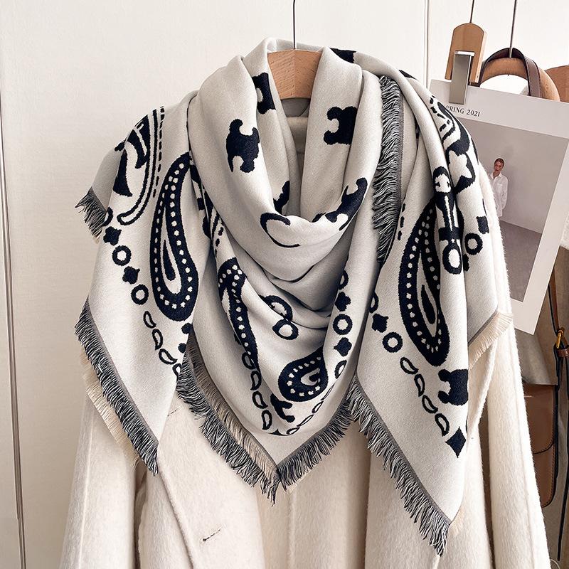 Bufanda cálida de cachemir de doble cara para mujer, estilo europeo, con estampado de letras de colores clásicos, cuadrada, grande y sencilla, de moda, para otoño e invierno.