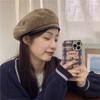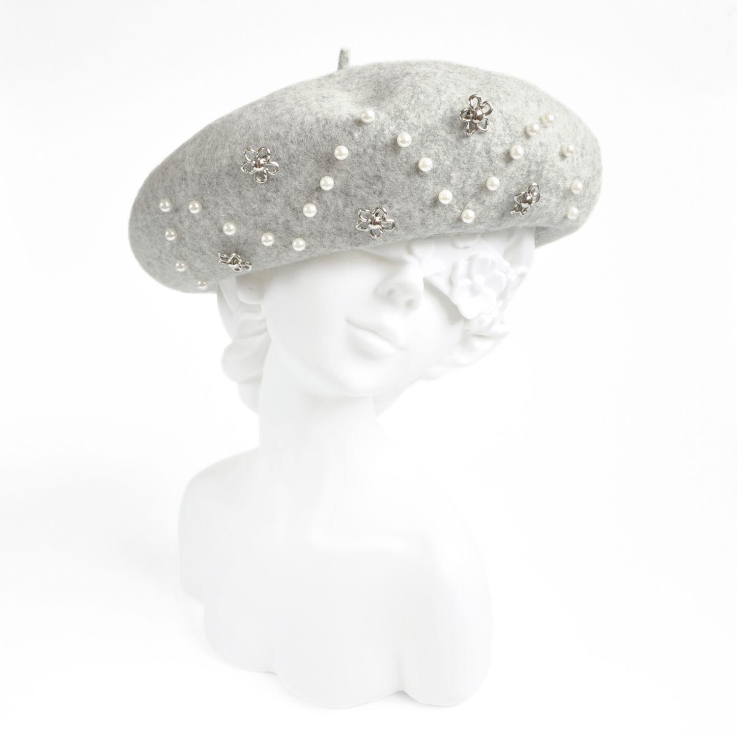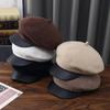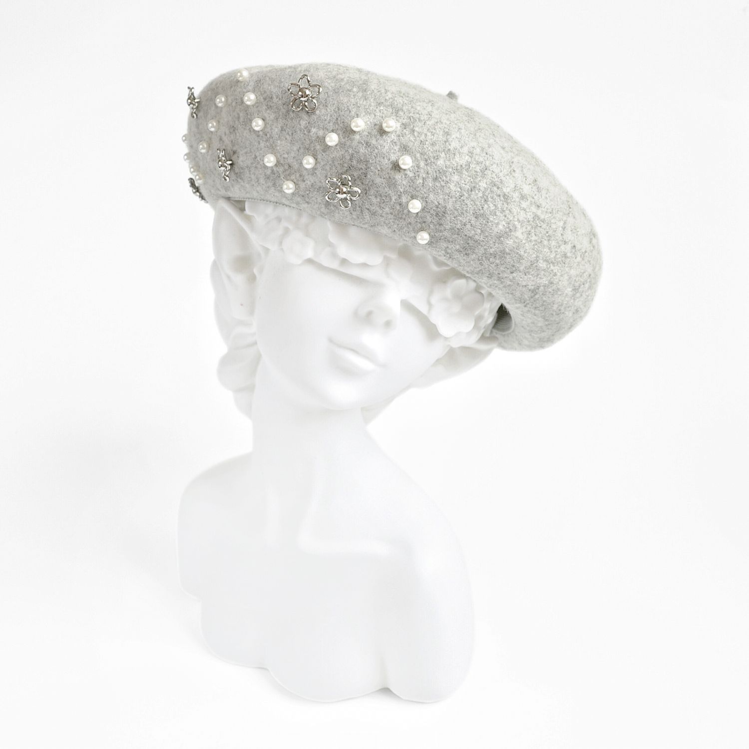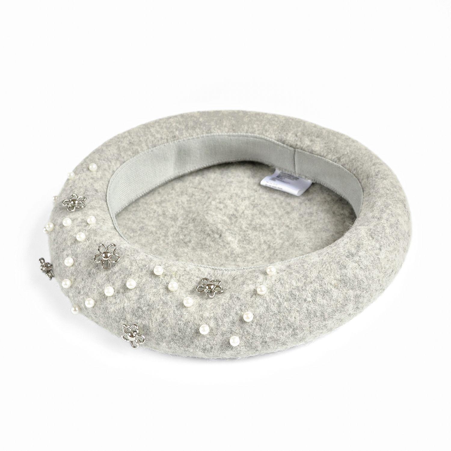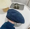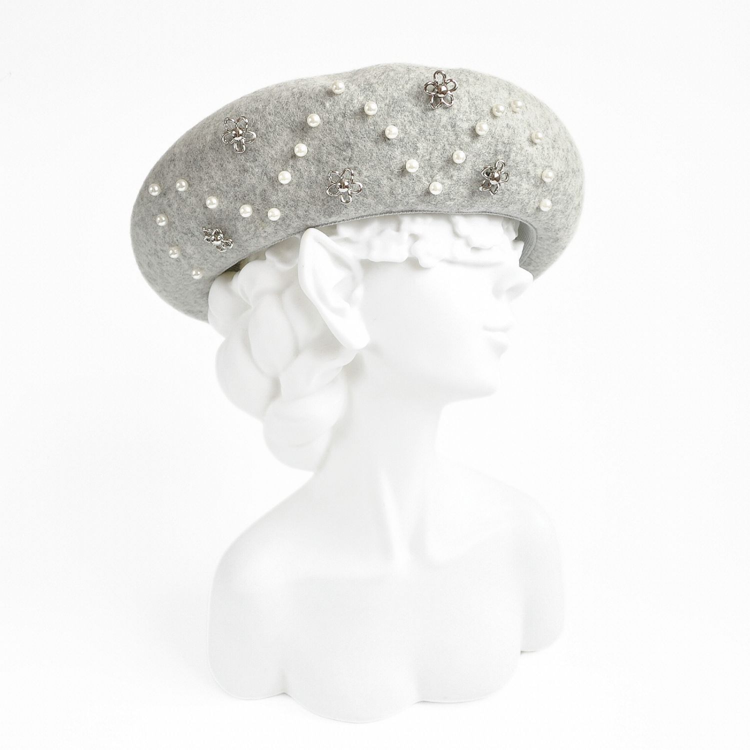 Otoño e Invierno Nuevo Estilo Sombrero de Pintor de Lana estilo Chanel para Mujer Flor Cosida a Mano Gris Perla de Industria Pesada Boina de Lana Estéreo