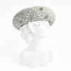 Pearl hand-stitched flower light hemp gray wool mushroom hat