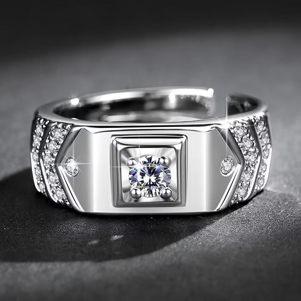 Nuevo anillo de apertura en forma de V de Amazon para hombre, anillo ajustable de circonita dominante, joyería de comercio exterior al por mayor