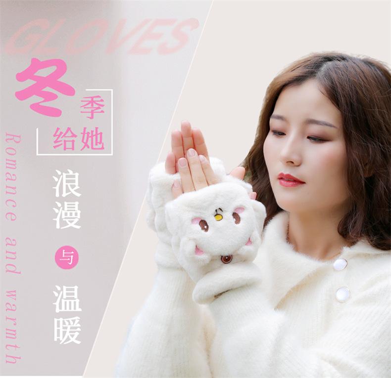 Guantes de montar cálidos para mujer, de invierno, estilo coreano, bonitos, de felpa, con medio dedo, gruesos y para estudiantes
