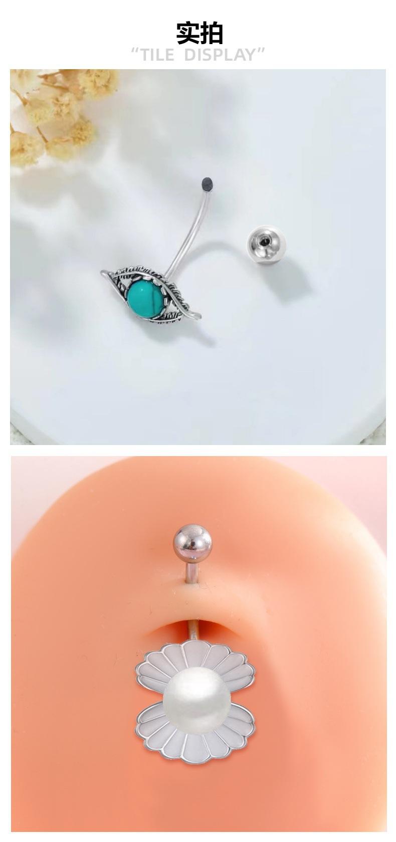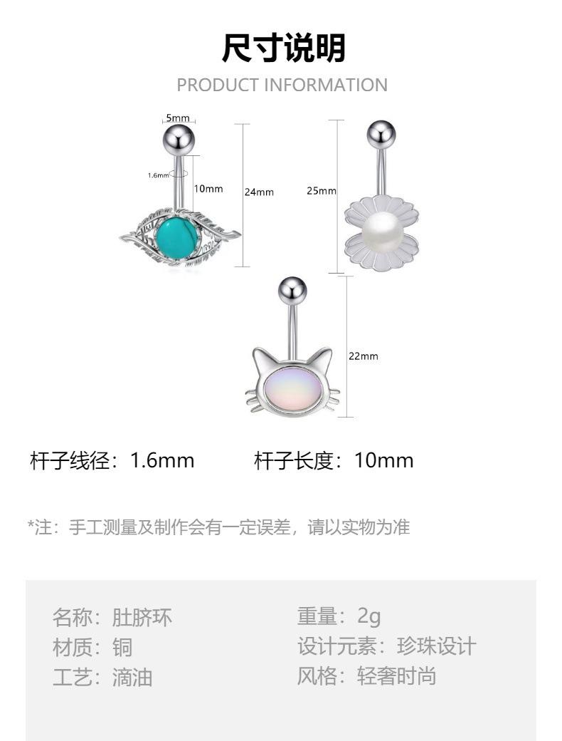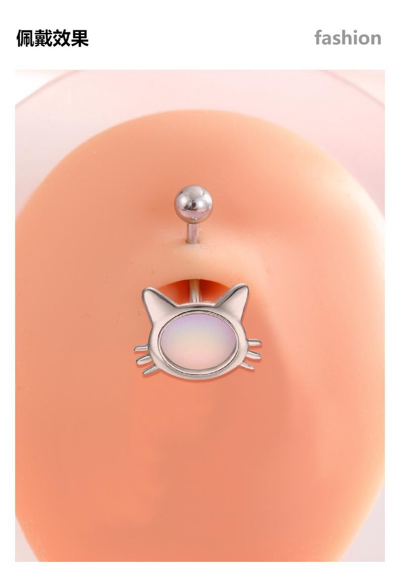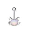 Nuevo piercing para ombligo de acero inoxidable con forma de gato y ojos de concha de perla, joyería para perforar el ombligo, venta al por mayor transfronteriza en Amazon