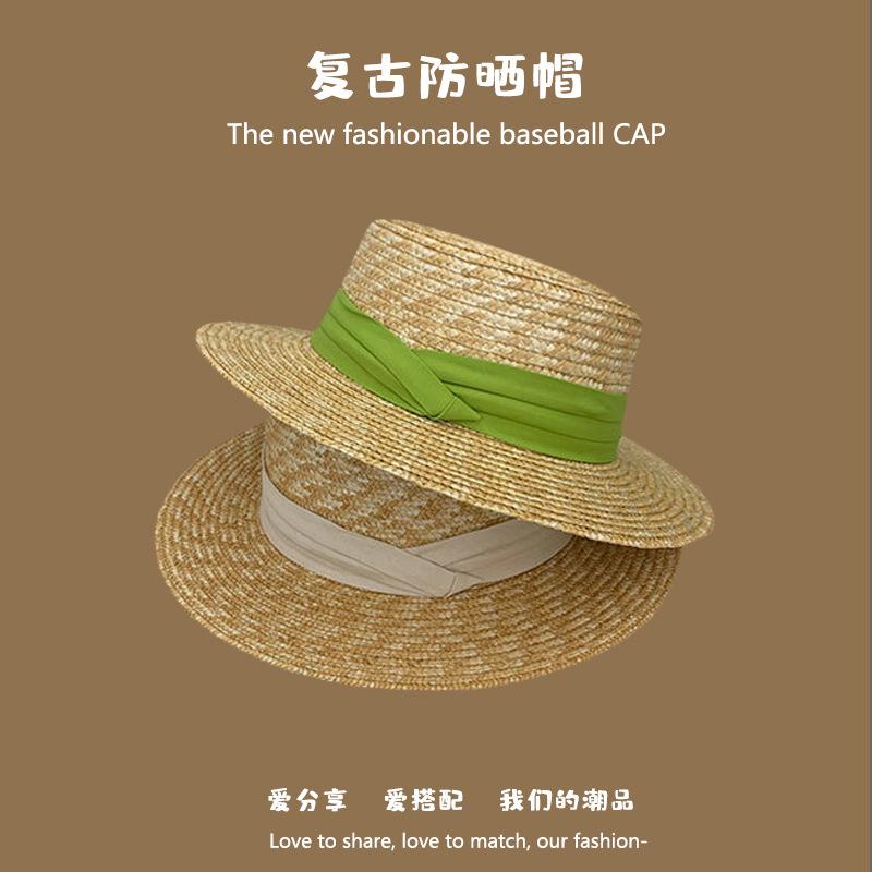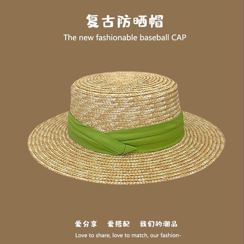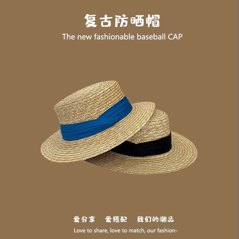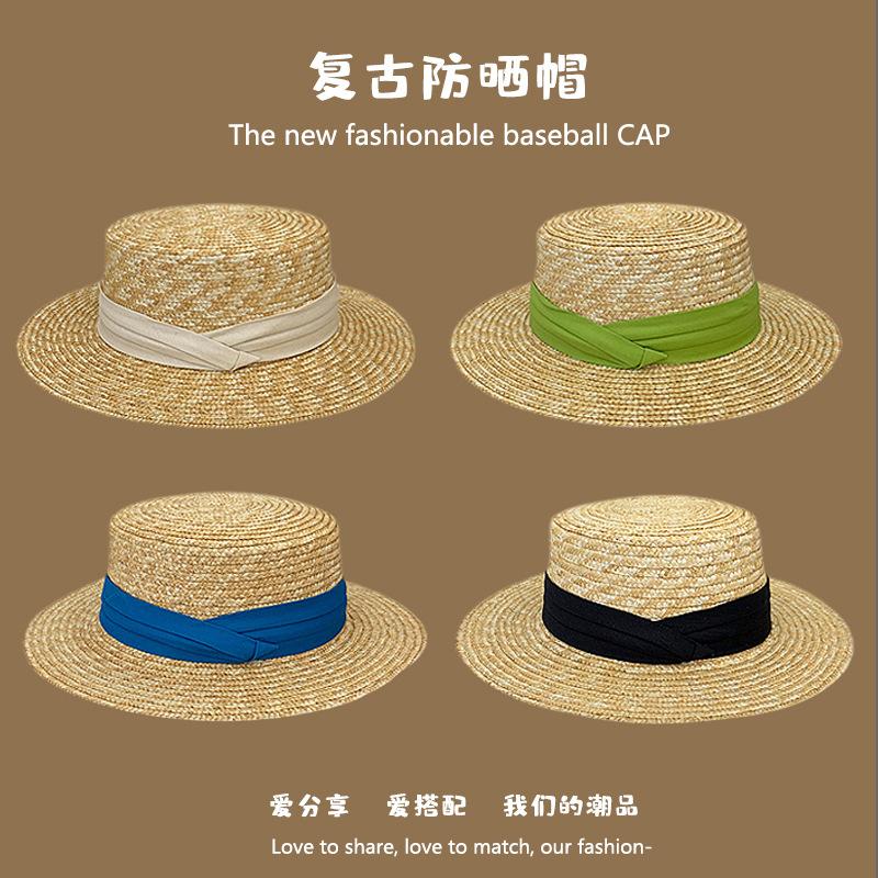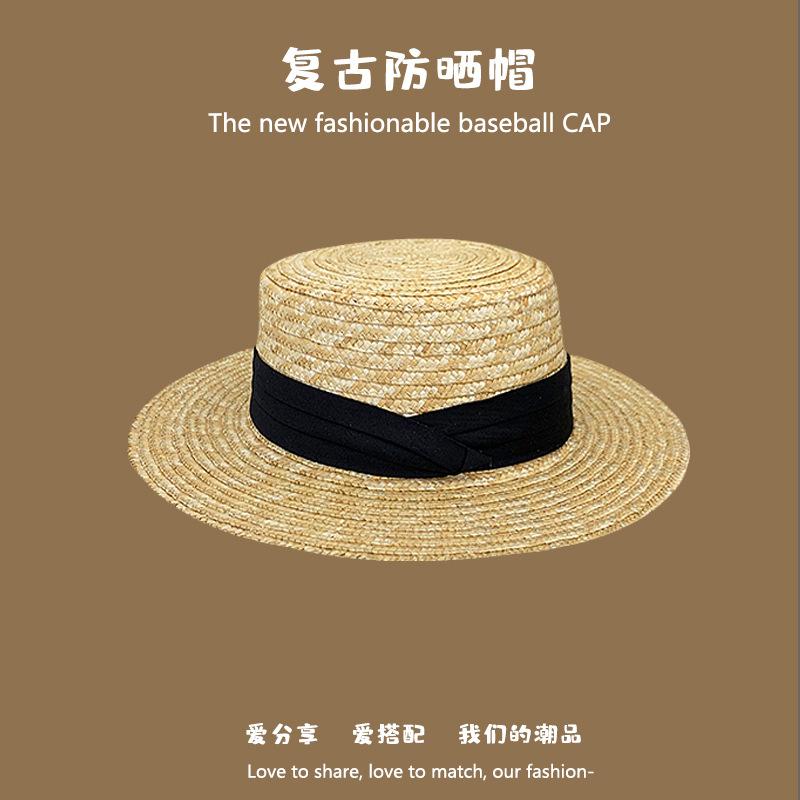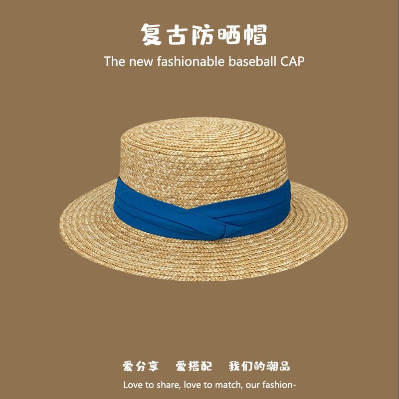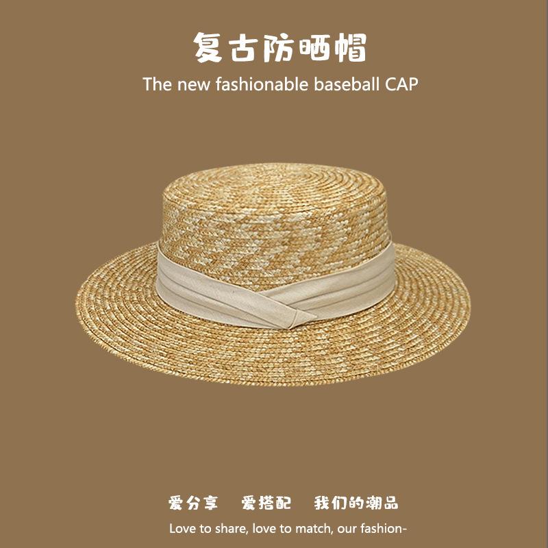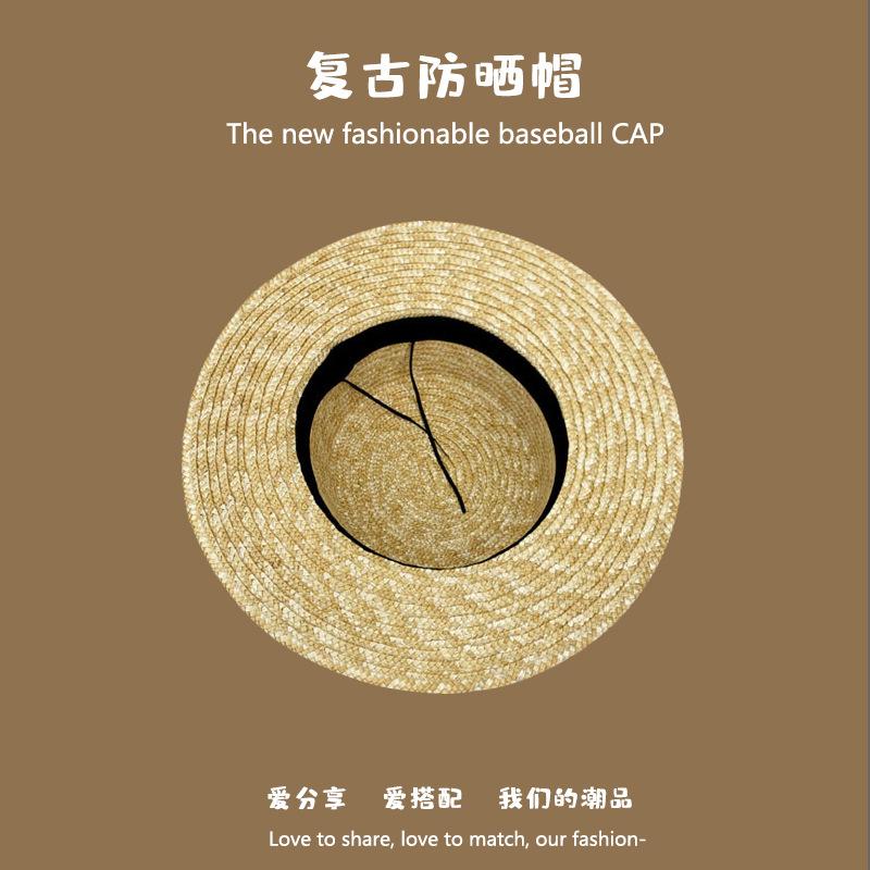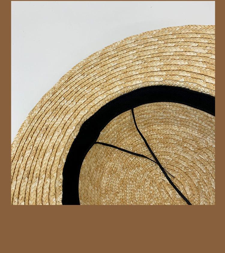Sombrero de paja vintage de copa plana para mujer, sombrero de verano con protección solar, sombrero de playa, sombrero tejido de paja con foto costera.