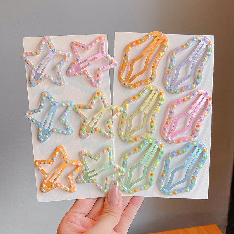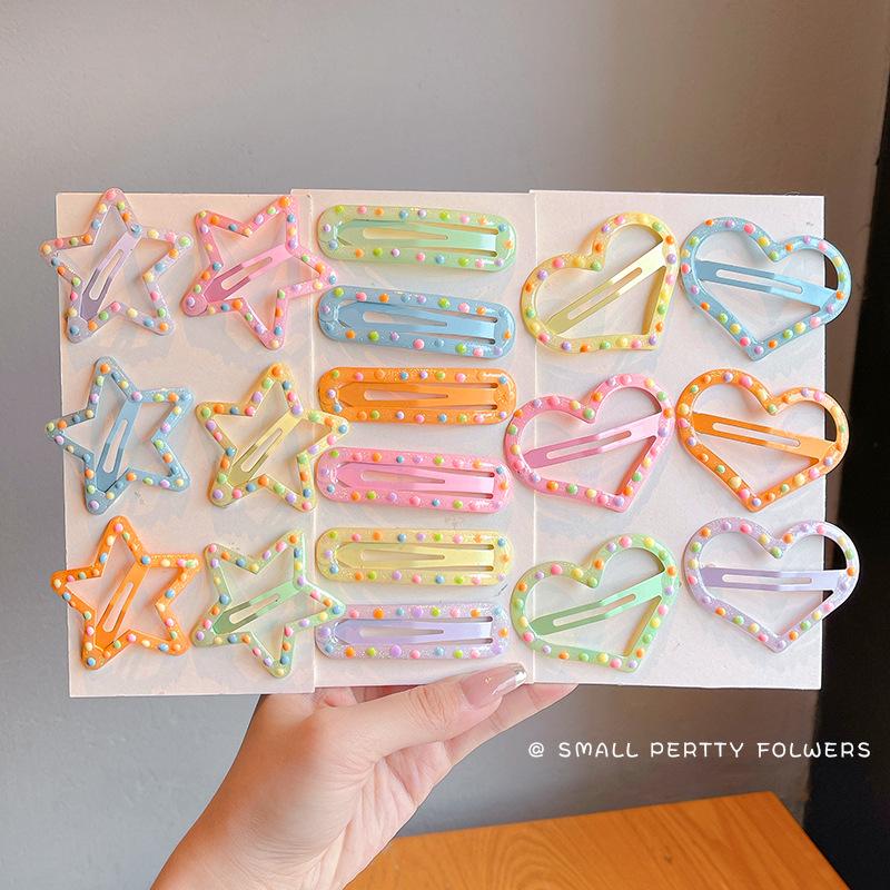 Horquilla para el pelo con diseño de flores y amor para niña, con flequillo de lunares y ondas de colores, horquilla rota, diadema para niña