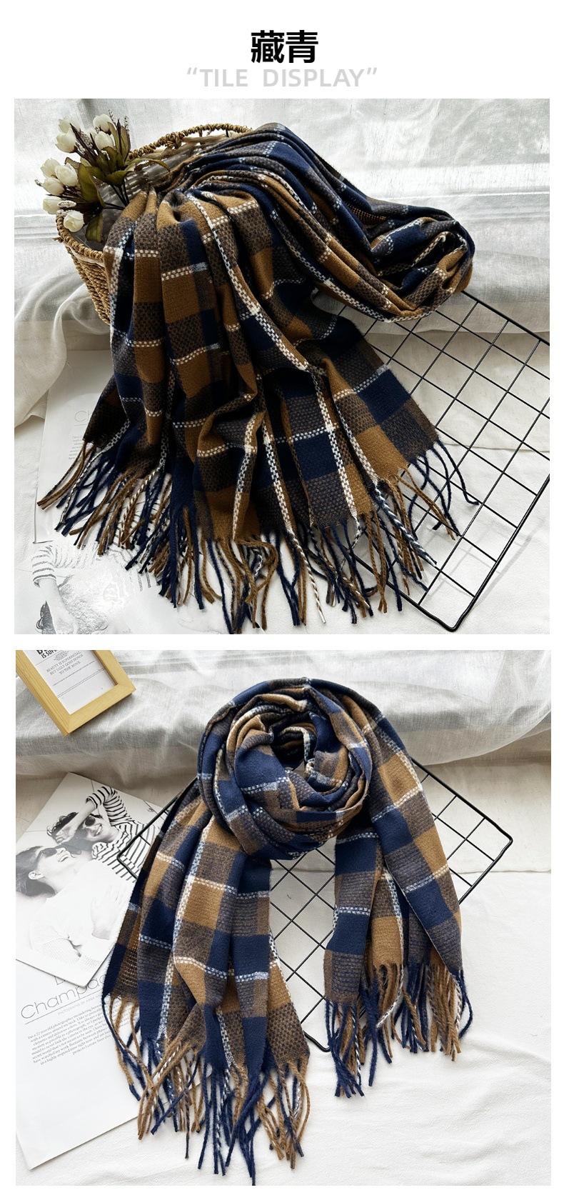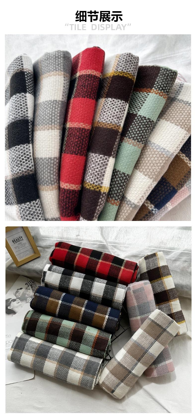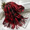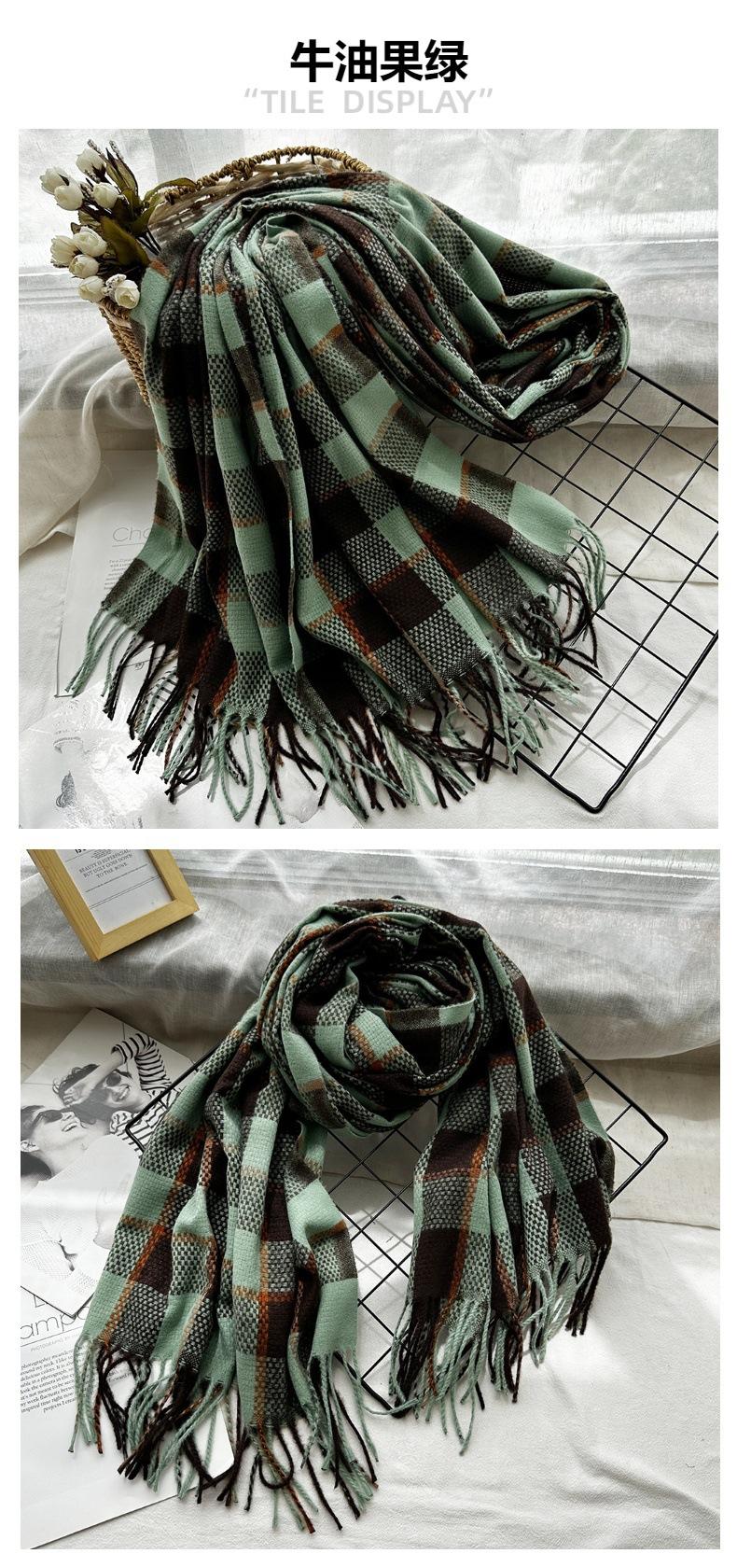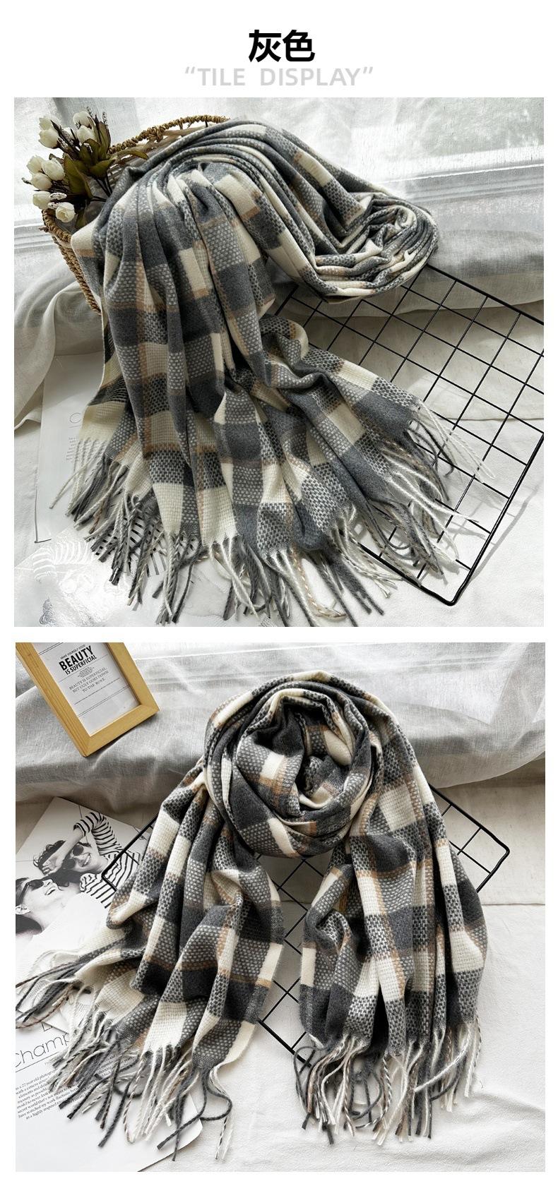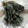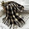 Bufanda de Cachemira a Cuadros Nueva de Comercio Exterior para Mujer Invierno Estilo Coreano Combinable Gruesa Cálida Chal Bufanda con Flecos para Estudiante