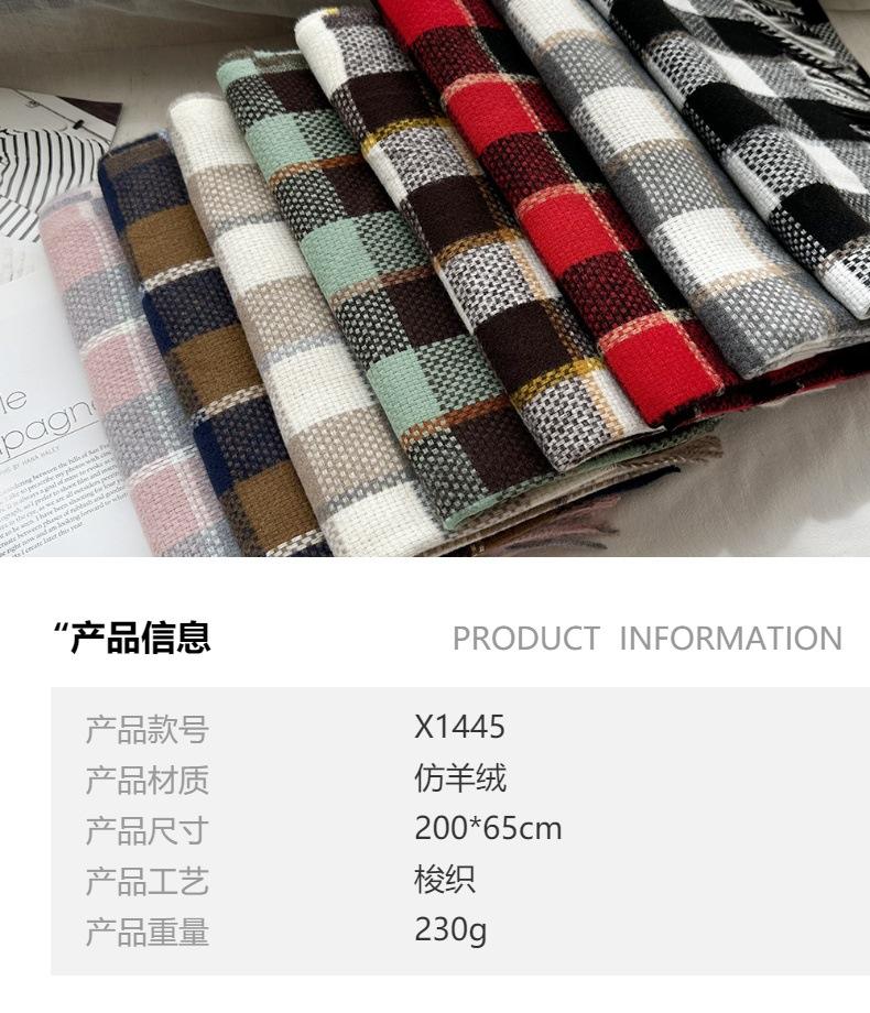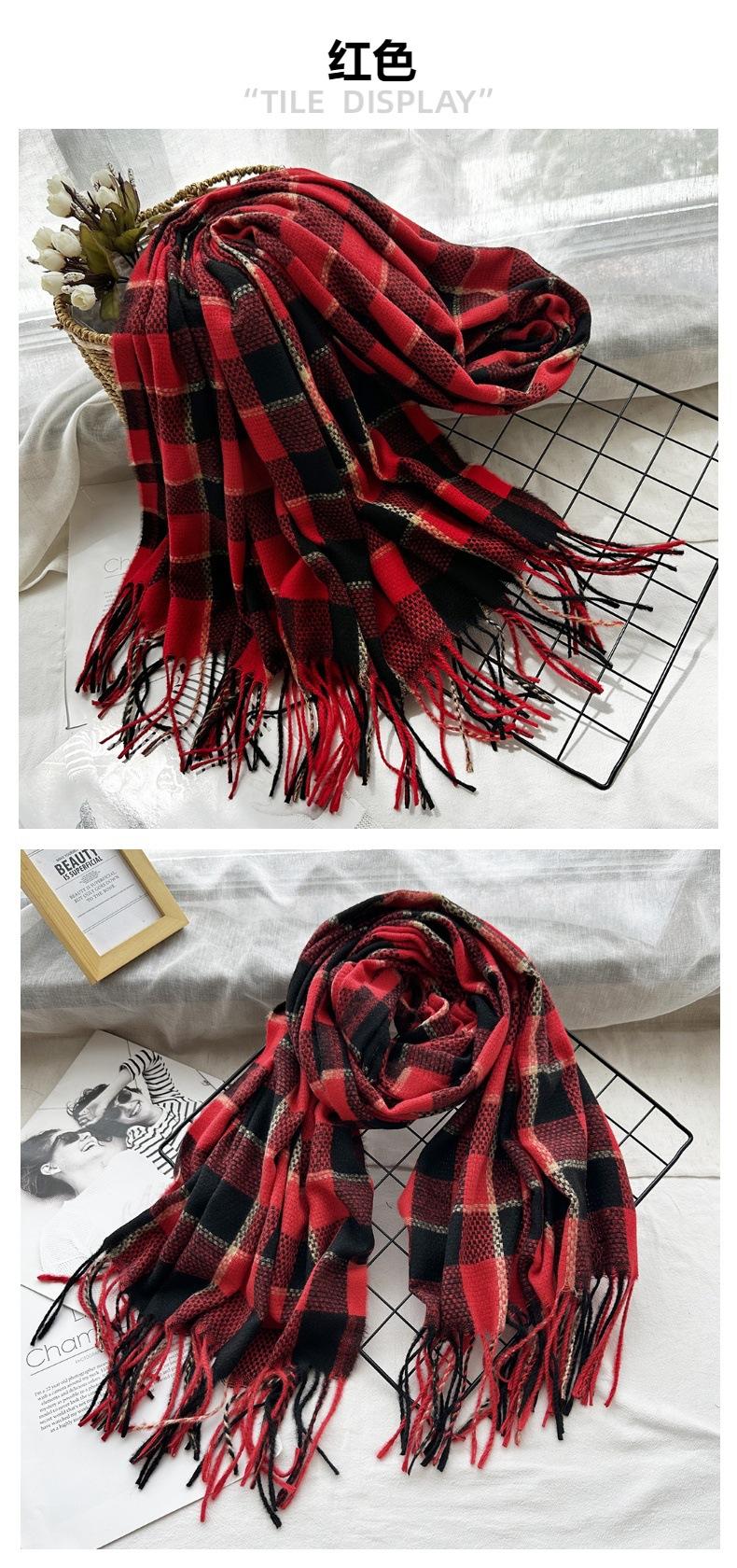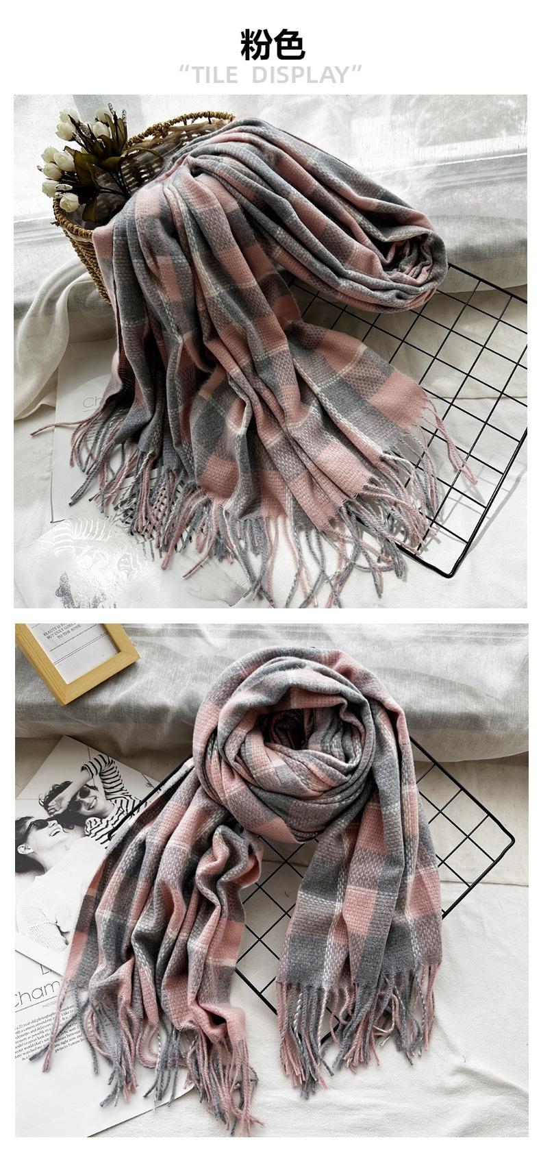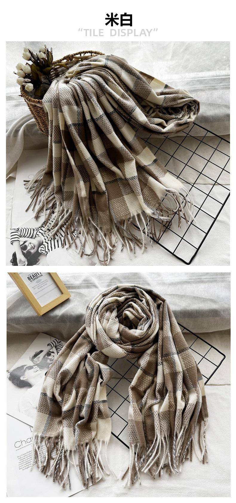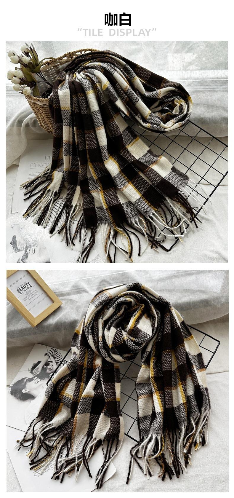 Bufanda de Cachemira a Cuadros Nueva de Comercio Exterior para Mujer Invierno Estilo Coreano Combinable Gruesa Cálida Chal Bufanda con Flecos para Estudiante