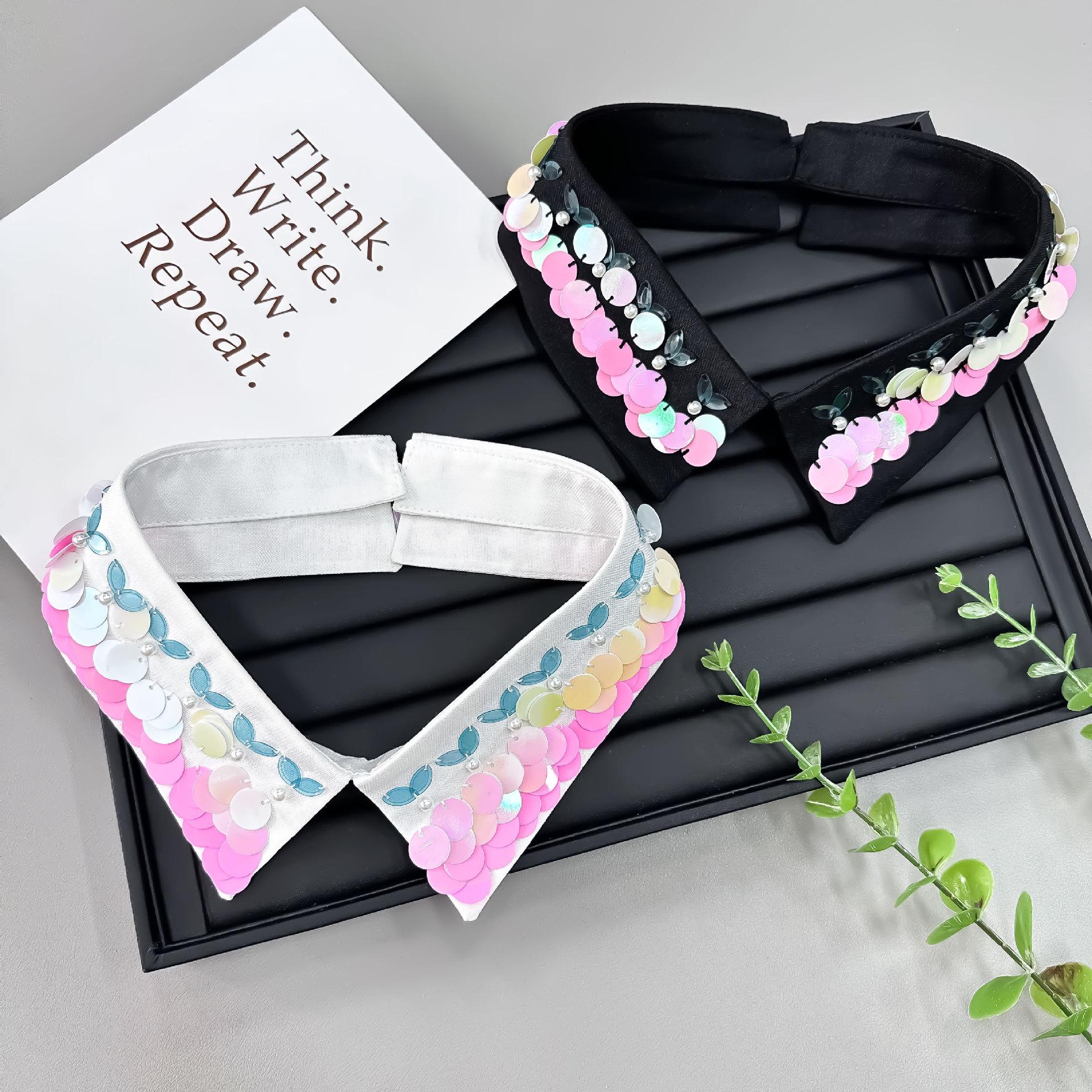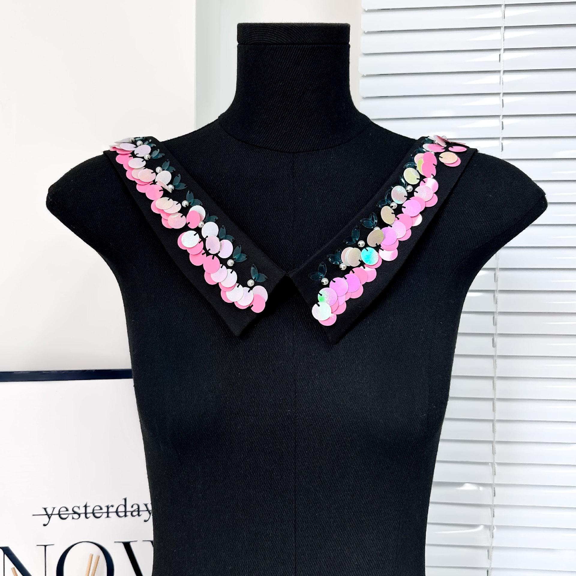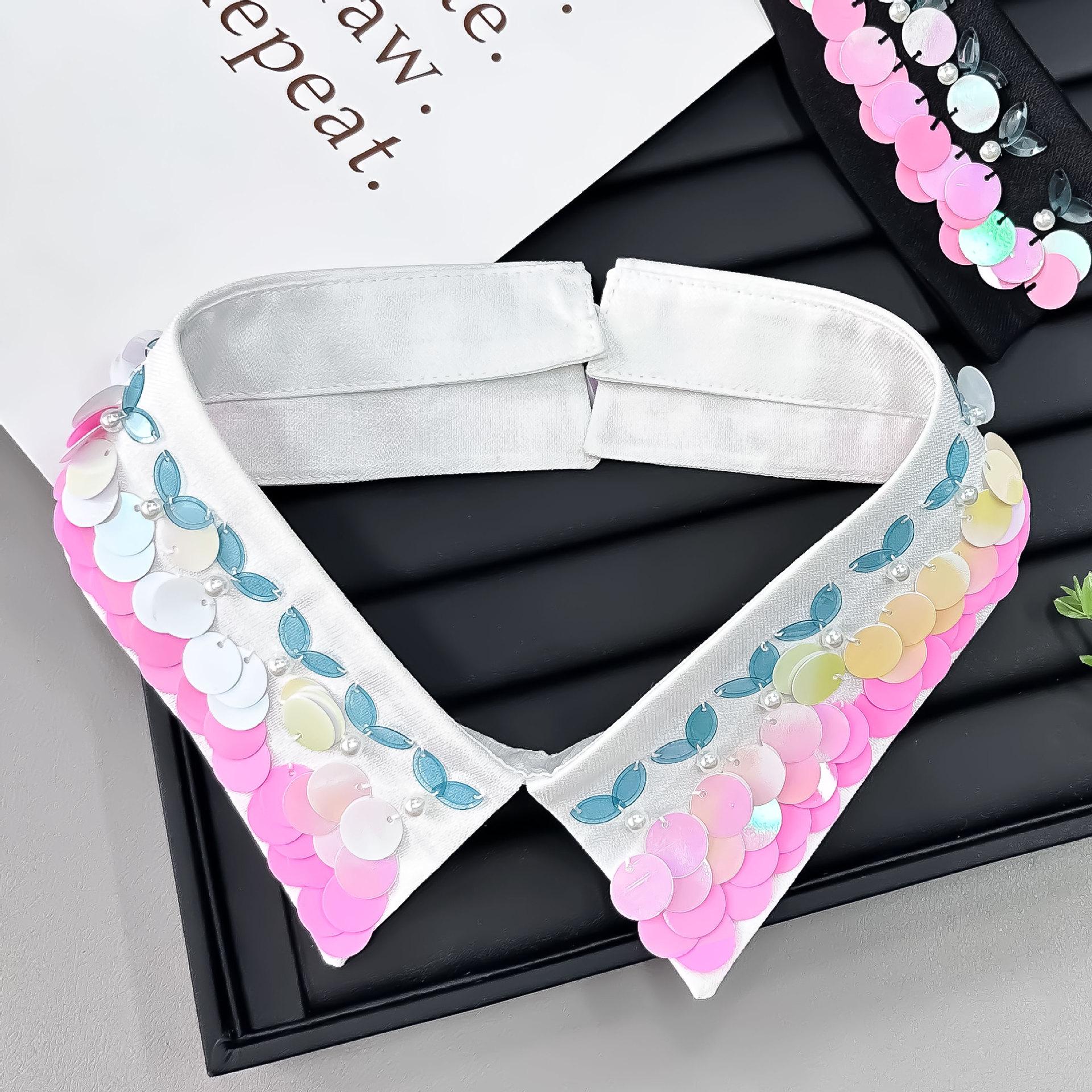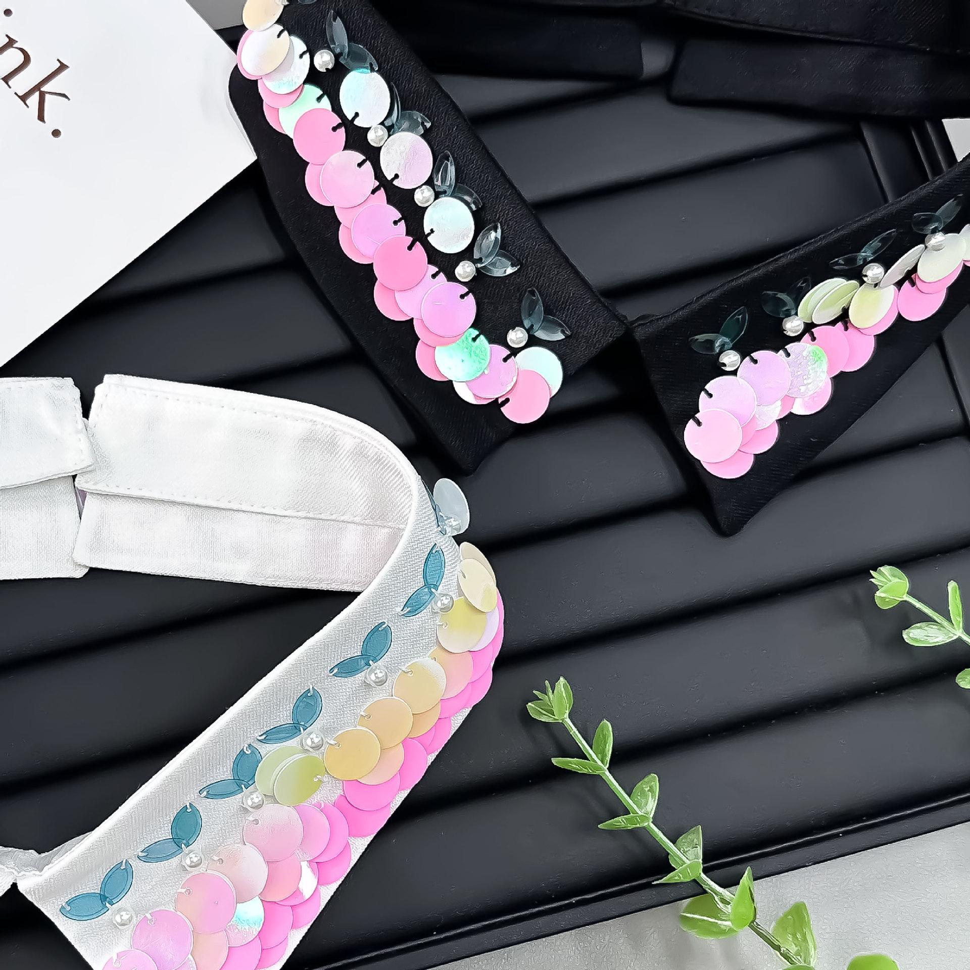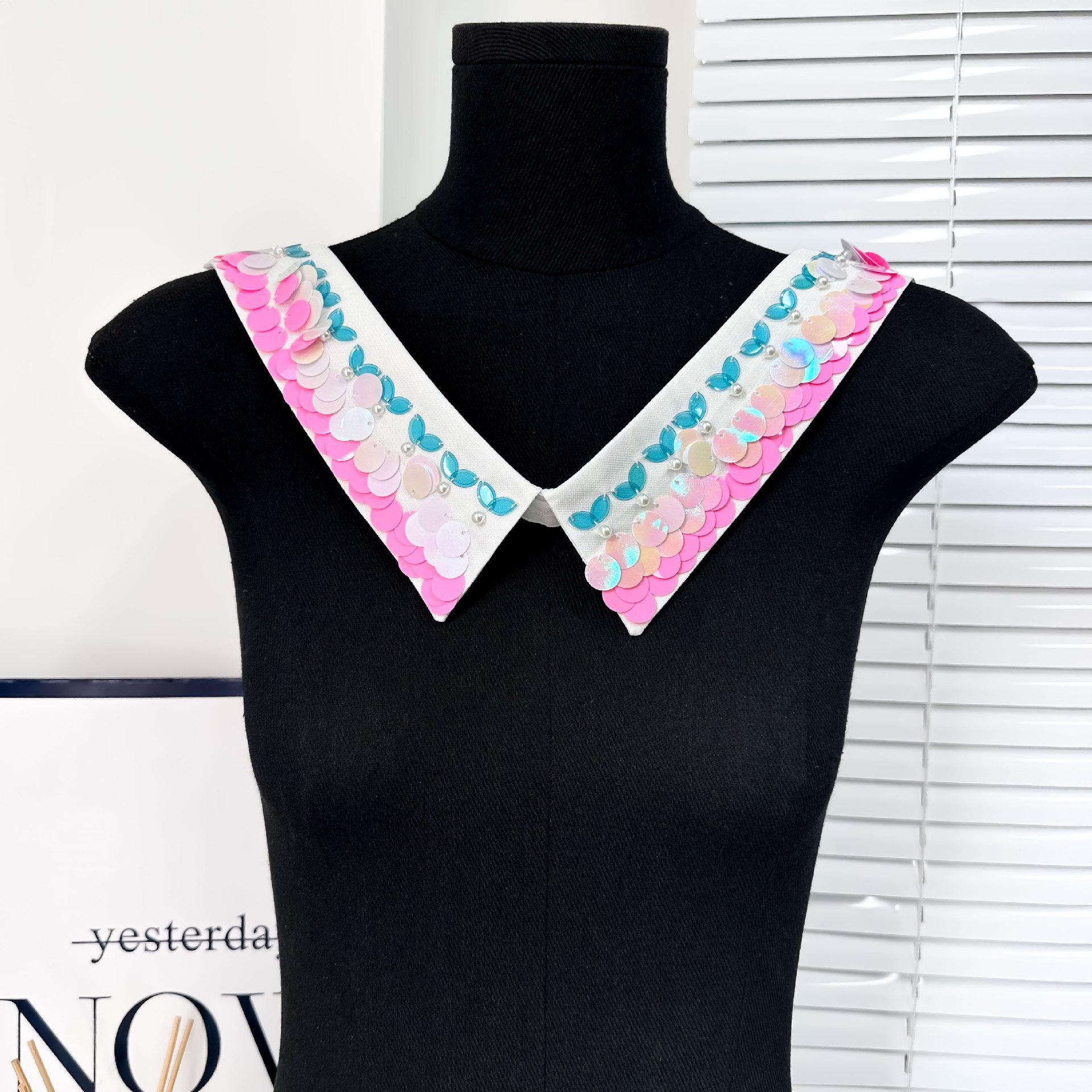 Camisa Popular Europea y Americana Colorida Asimétrica Bordada con Lentejuelas Cuello Falso Nueva Versátil Chal Exterior de Punto Decoración Grande
