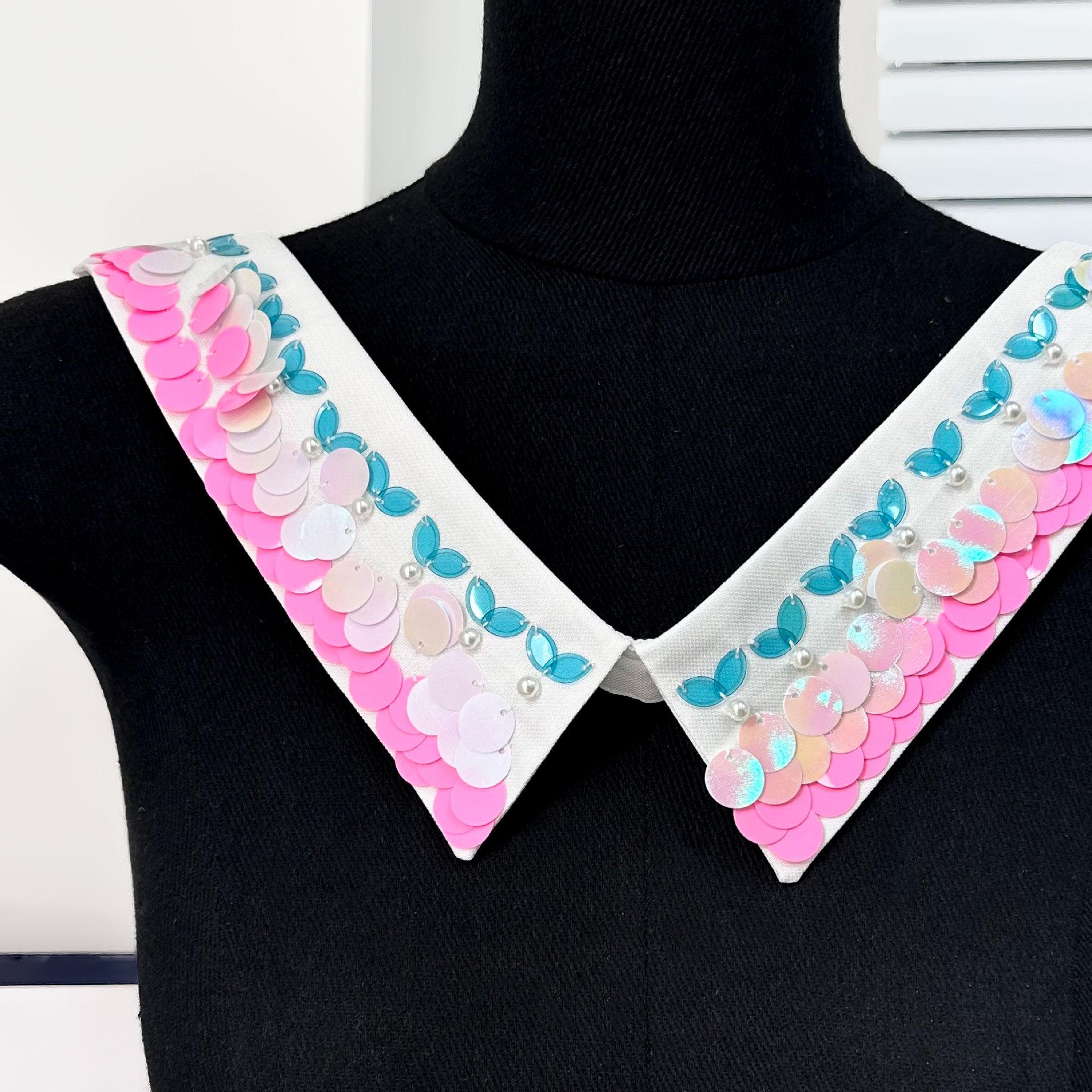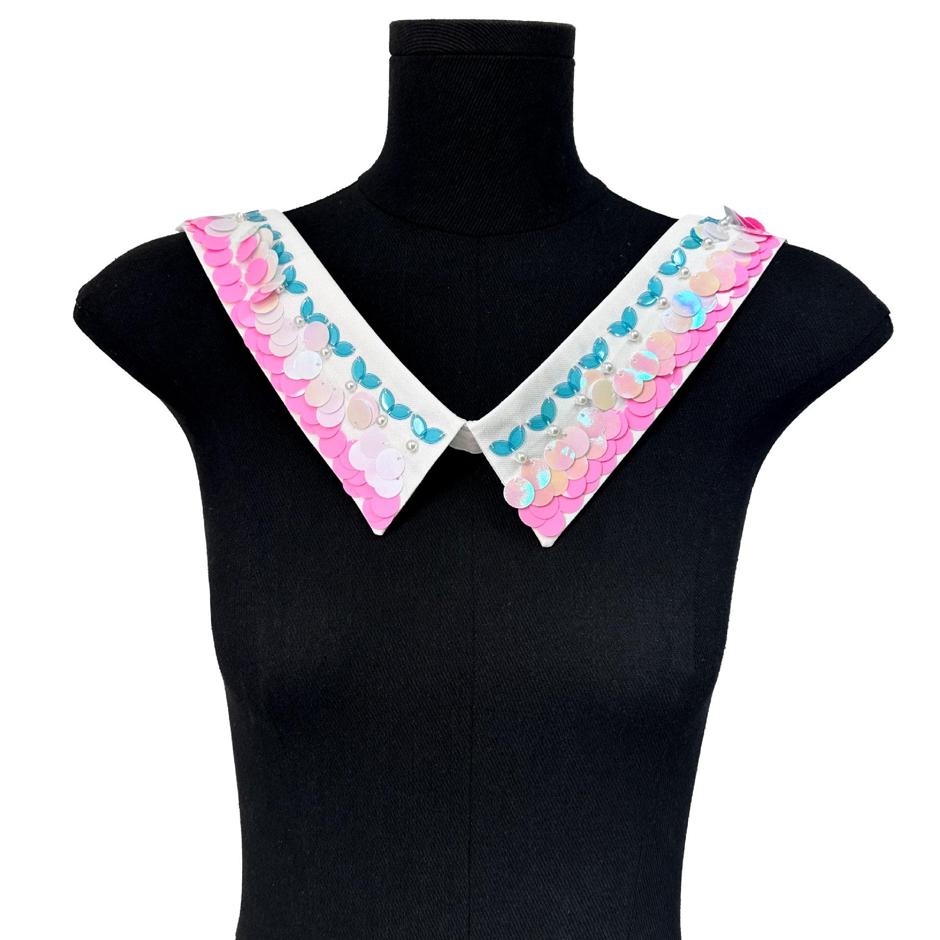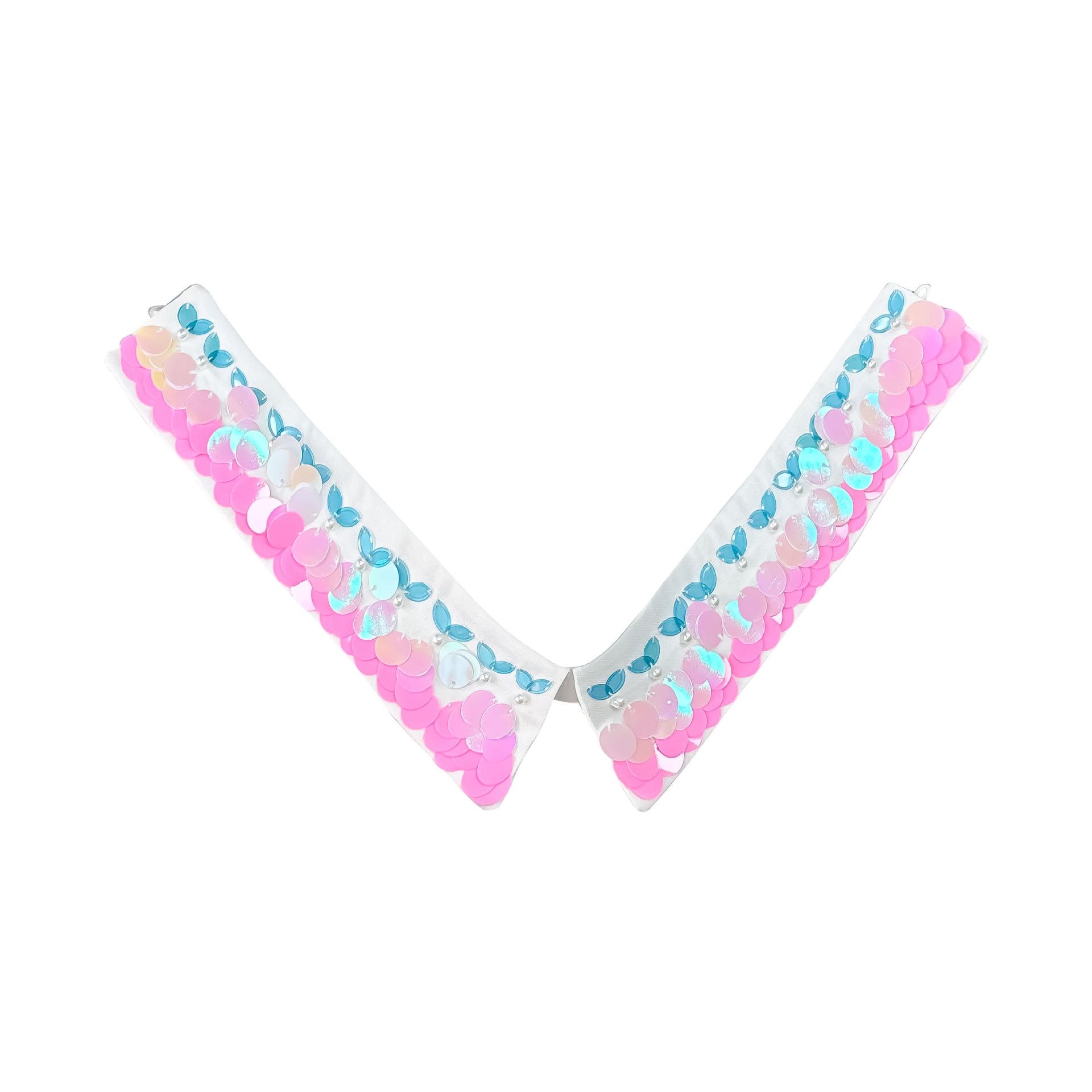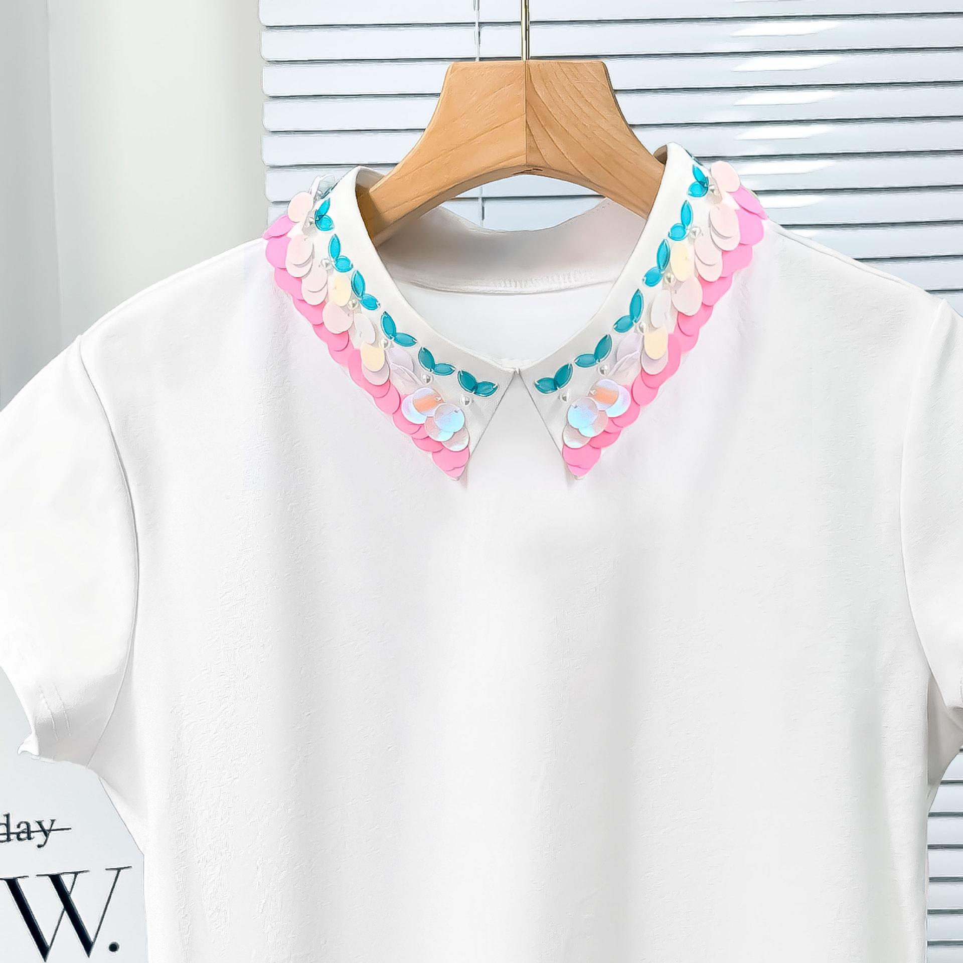 Camisa Popular Europea y Americana Colorida Asimétrica Bordada con Lentejuelas Cuello Falso Nueva Versátil Chal Exterior de Punto Decoración Grande
