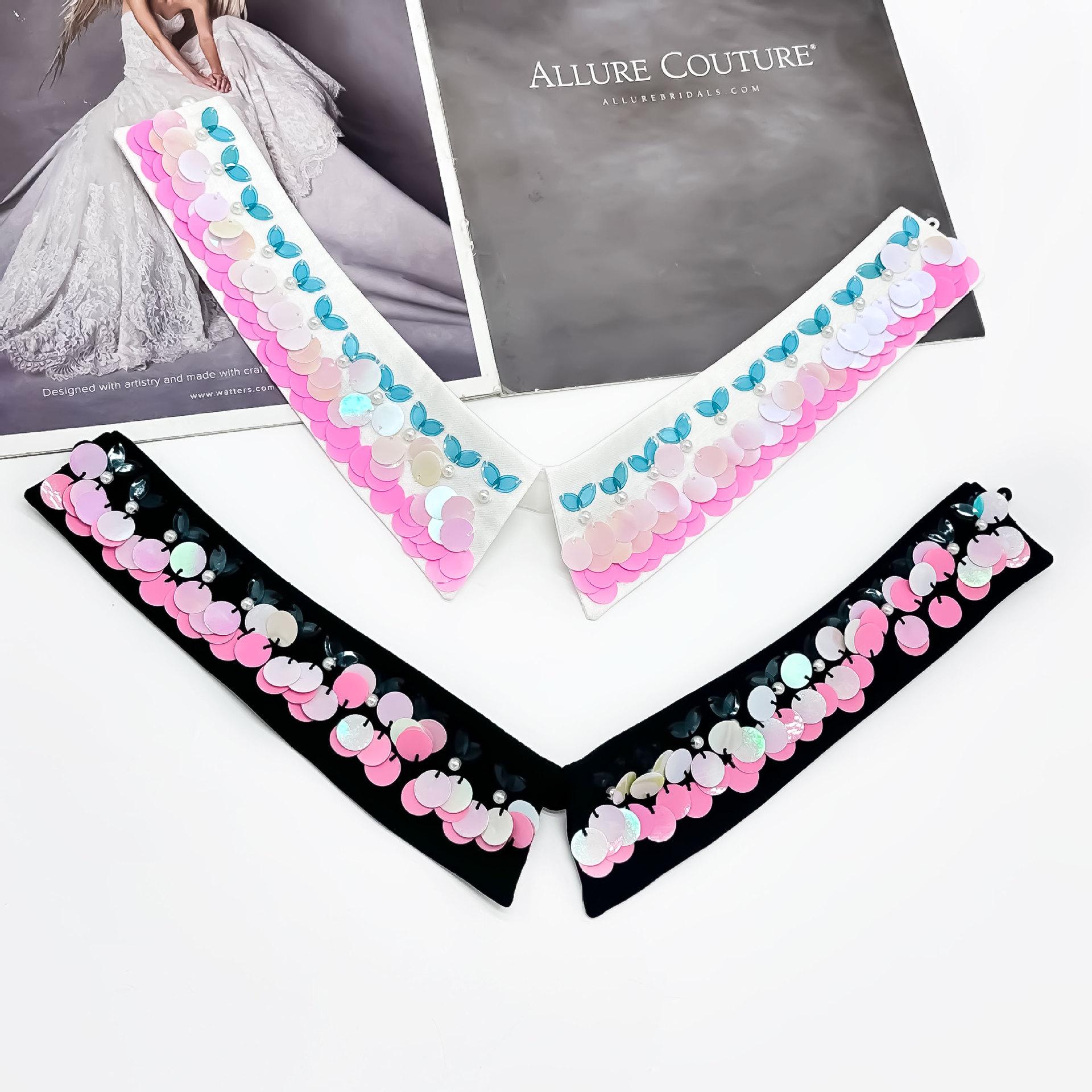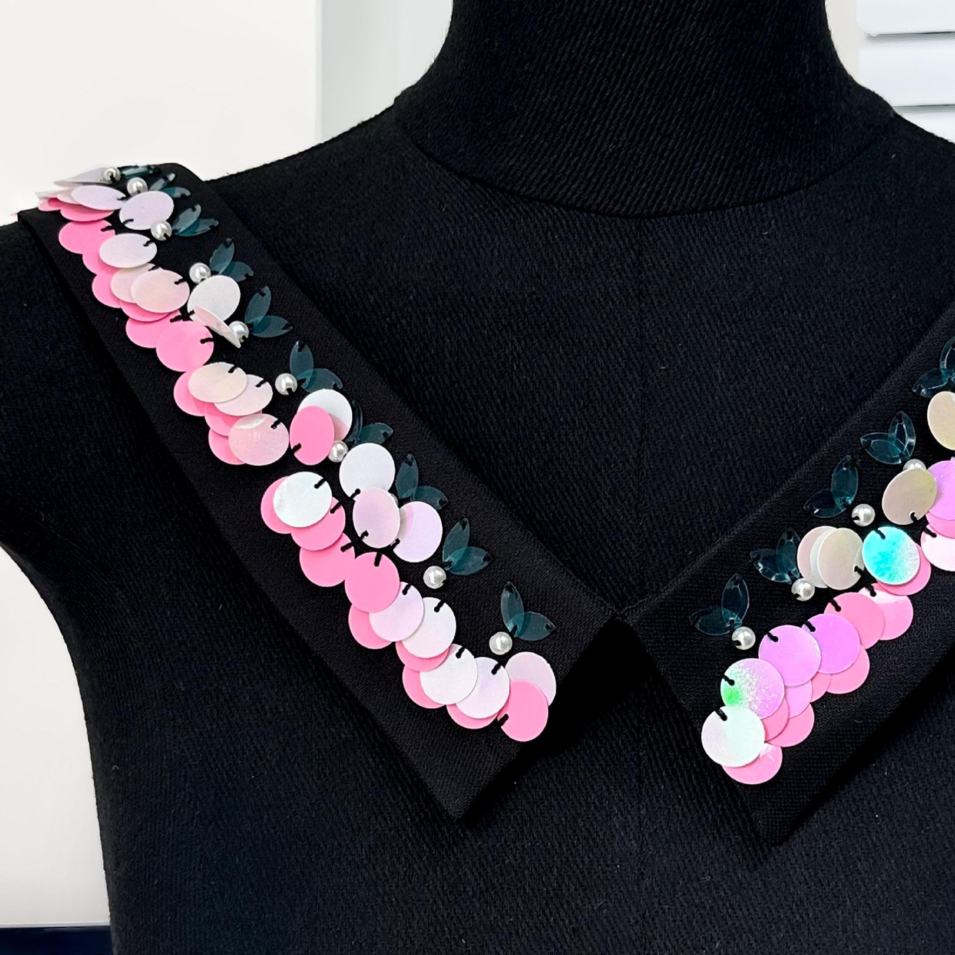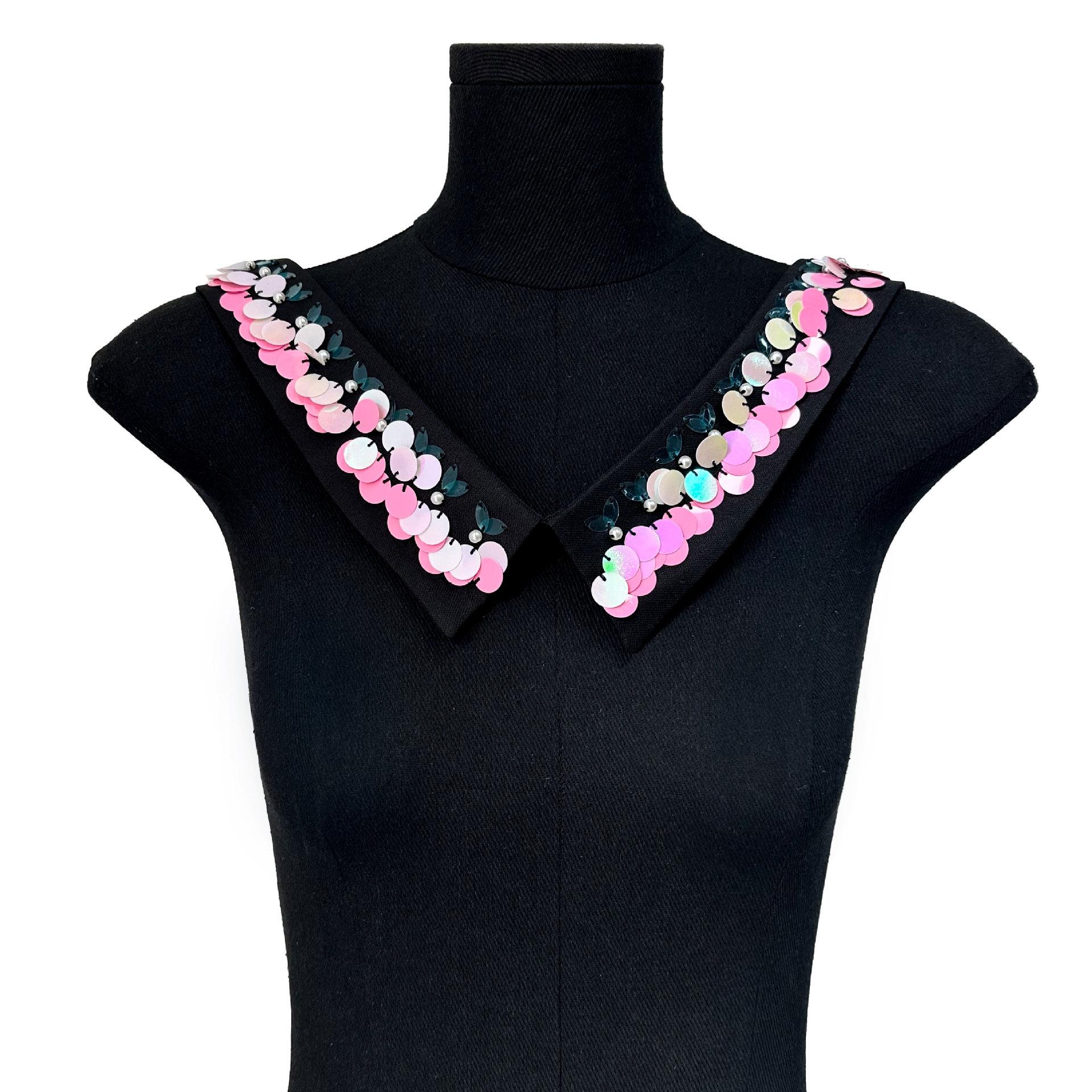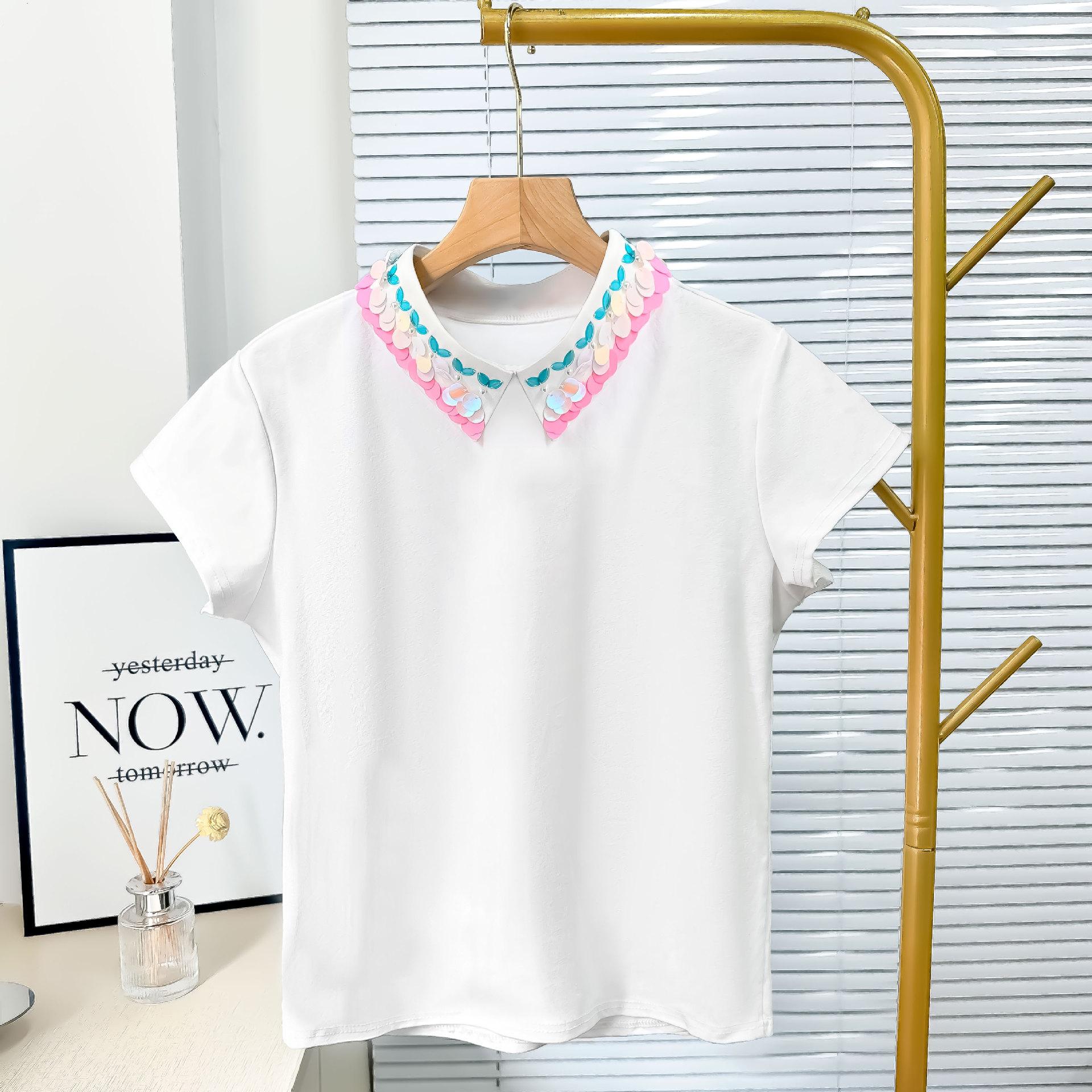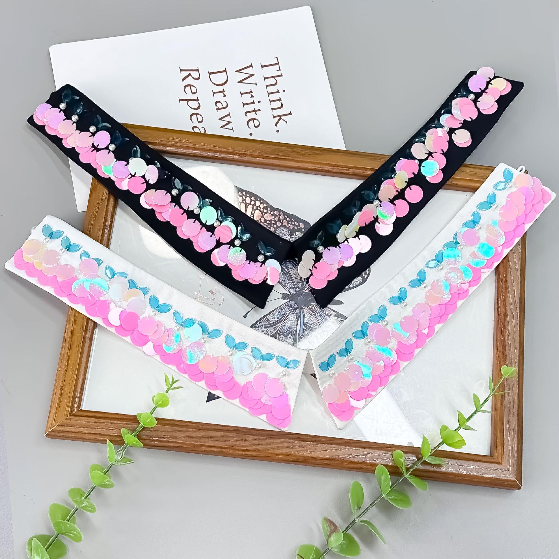 Camisa Popular Europea y Americana Colorida Asimétrica Bordada con Lentejuelas Cuello Falso Nueva Versátil Chal Exterior de Punto Decoración Grande