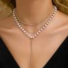 Collar Minimalista de Oro de 14K con Perlas y Diamantes, Cadena de Cuello de Moda de Tres Capas, Cadena de Clavícula Multicapa, Joyería Transfronteriza Europea y Americana
