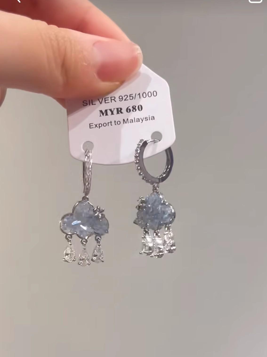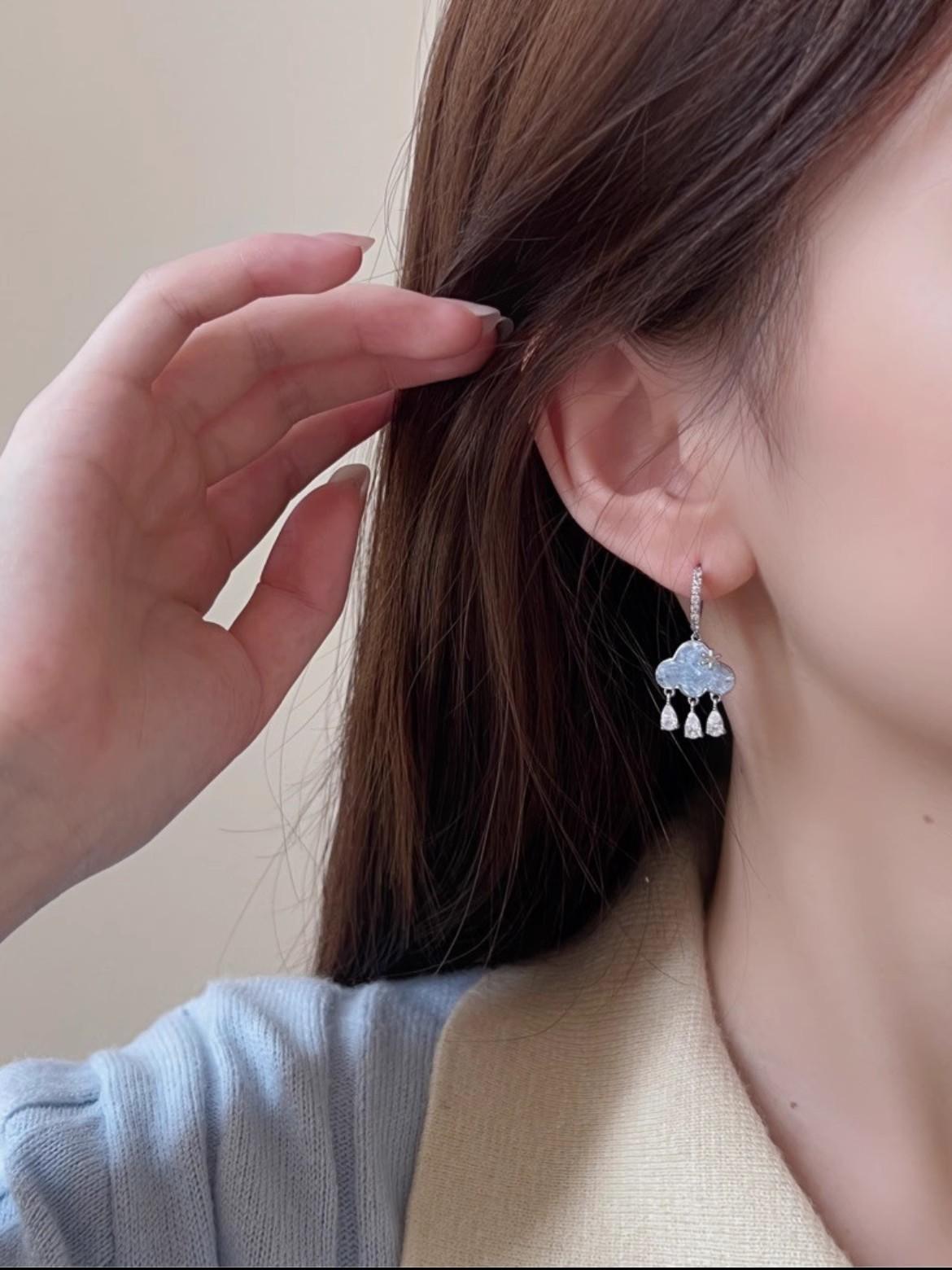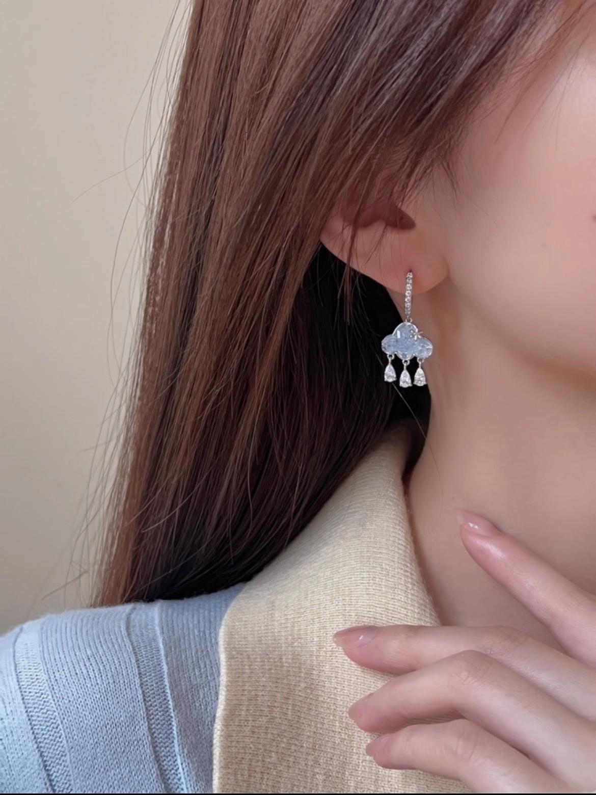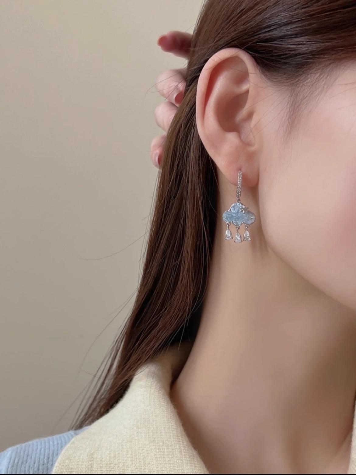 Crystal cloud water drop ear Buckle (a pair)