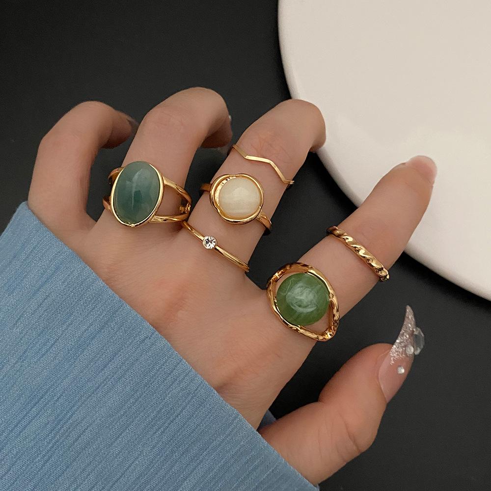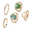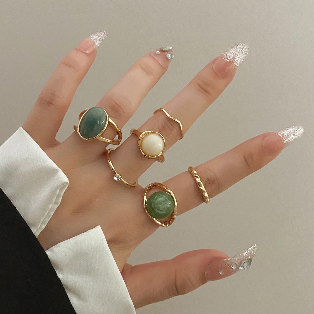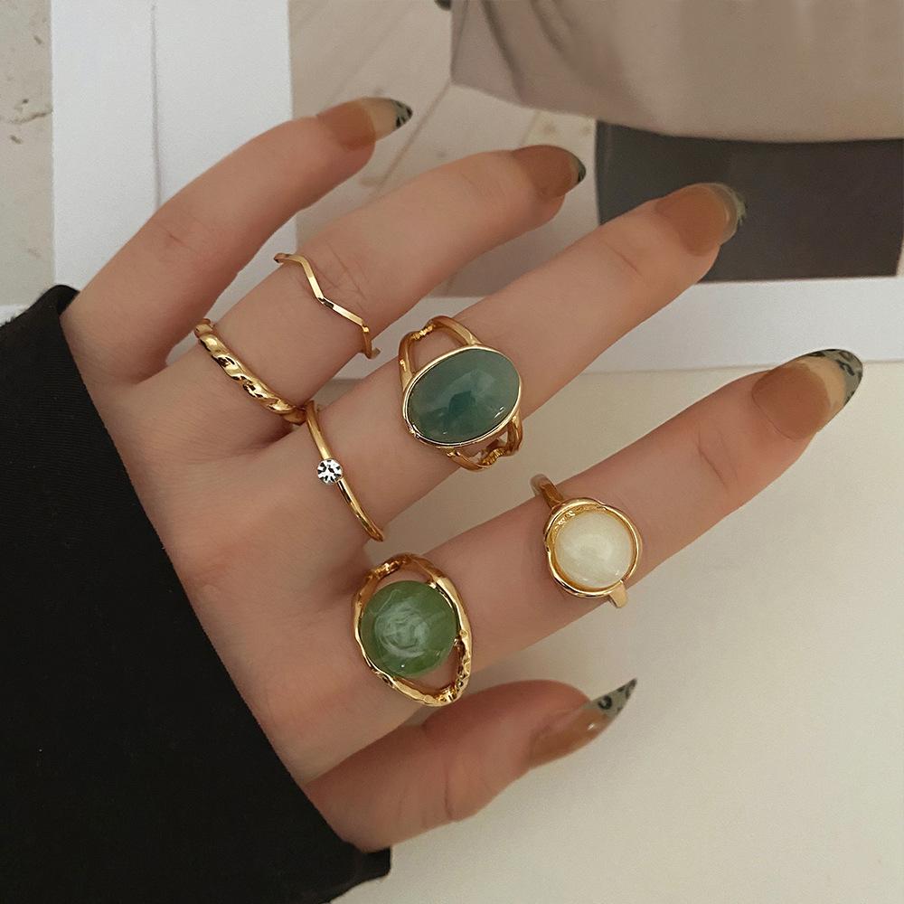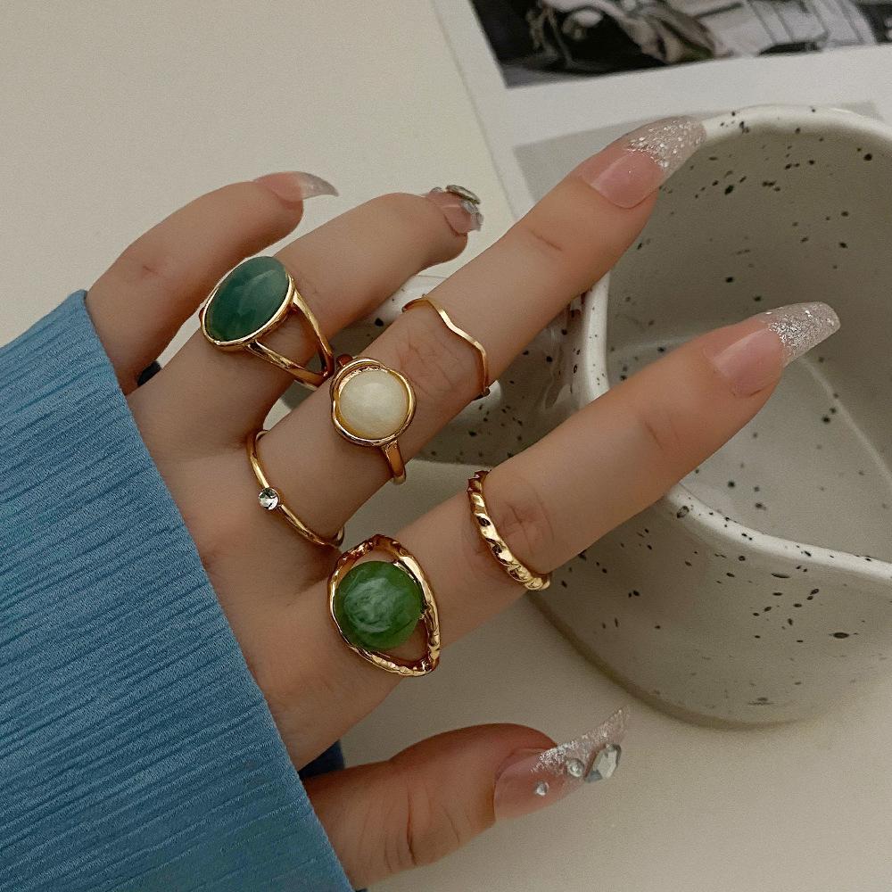 Conjunto de Anillos de Esmeralda Transfronterizo para Mujer, Europeo y Americano Retro Creativo Personalizado Geométrico, Juego de 6 piezas