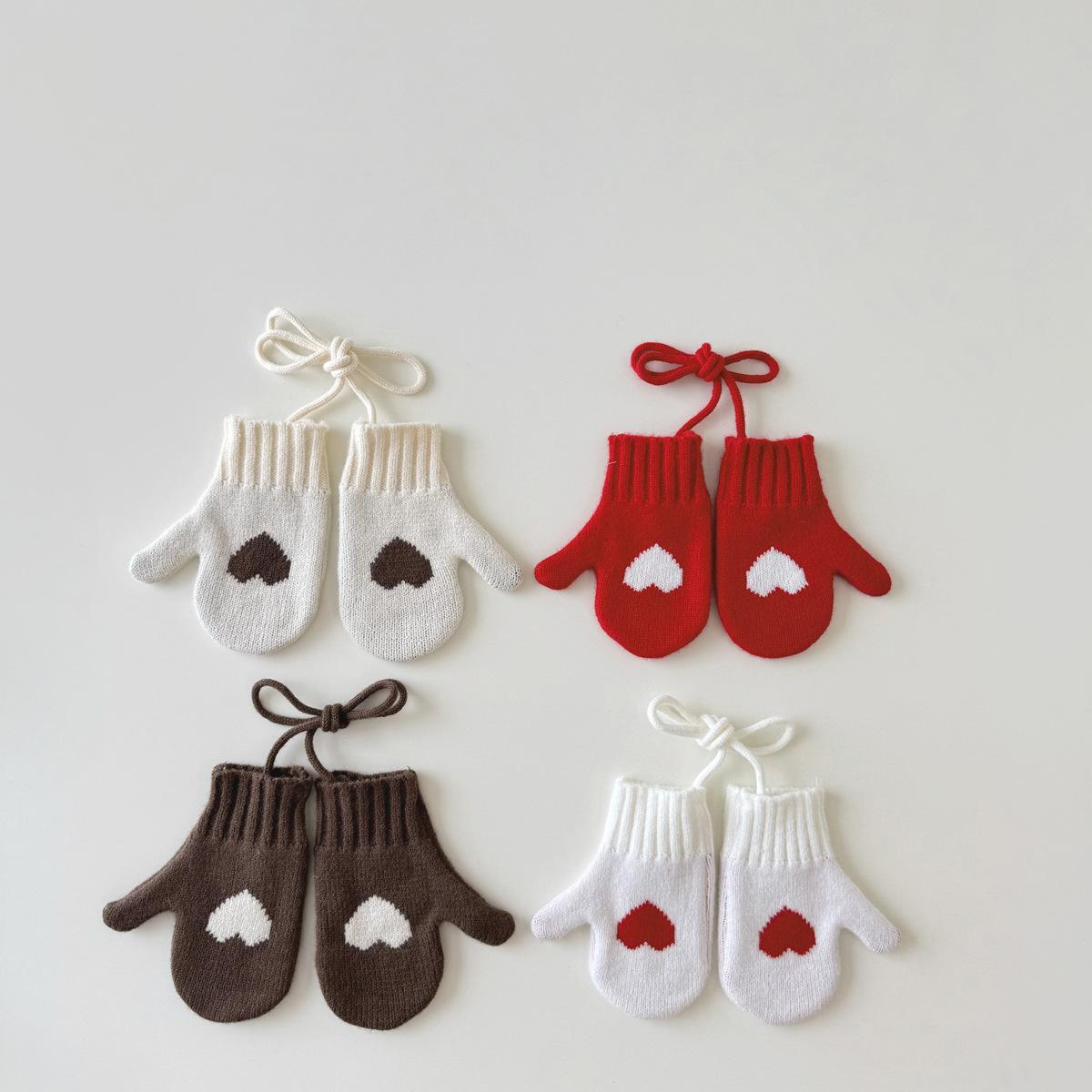 Guantes de amor para niños One Pan, otoño e invierno, con forma de corazón, cálidos, resistentes al viento, para colgar en el cuello, para niños y niñas.
