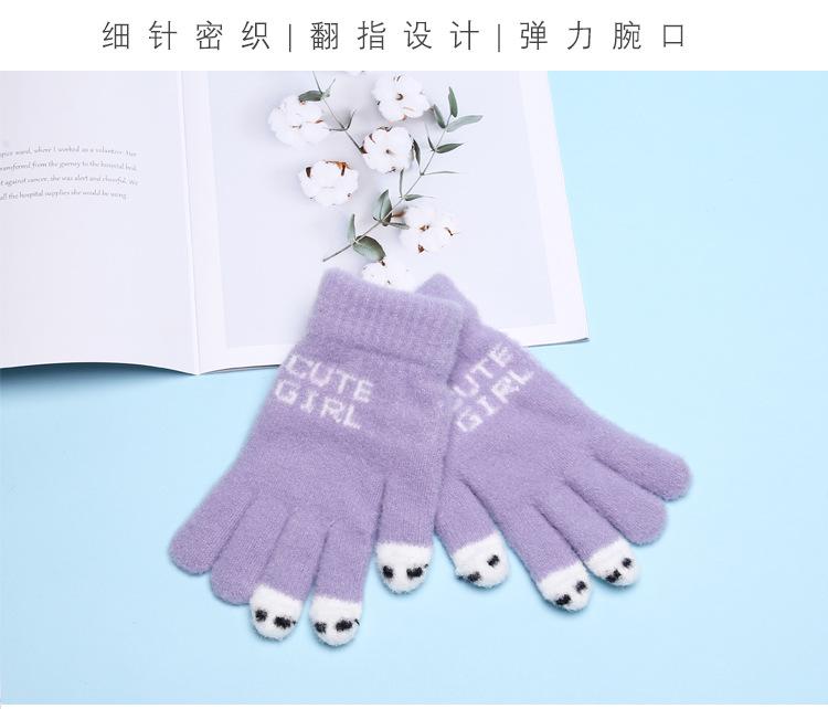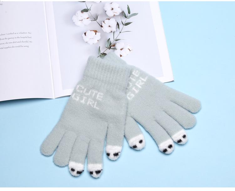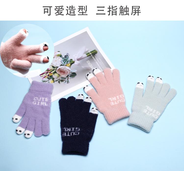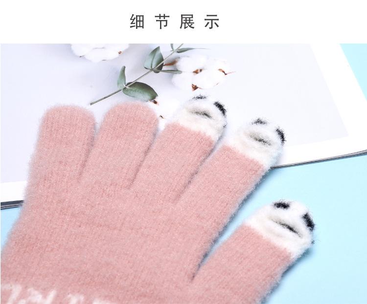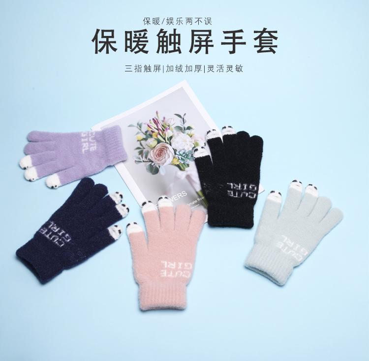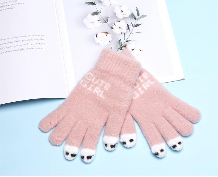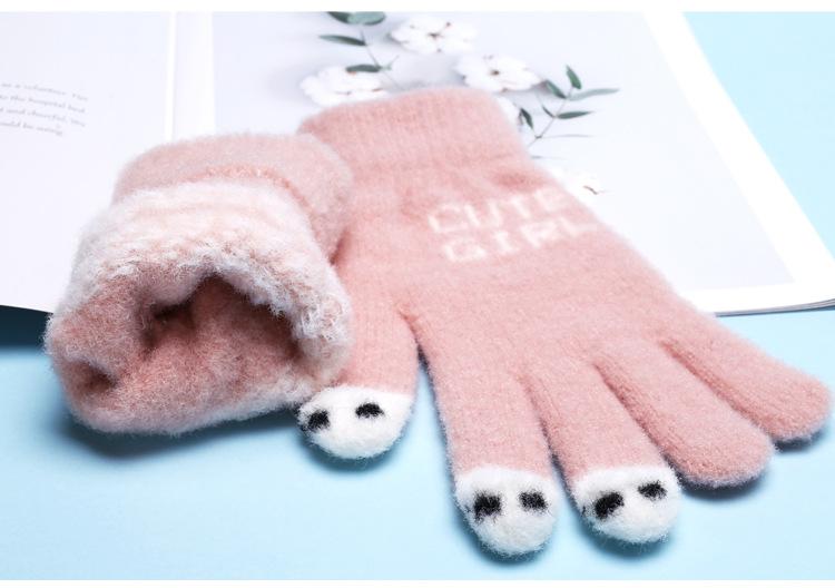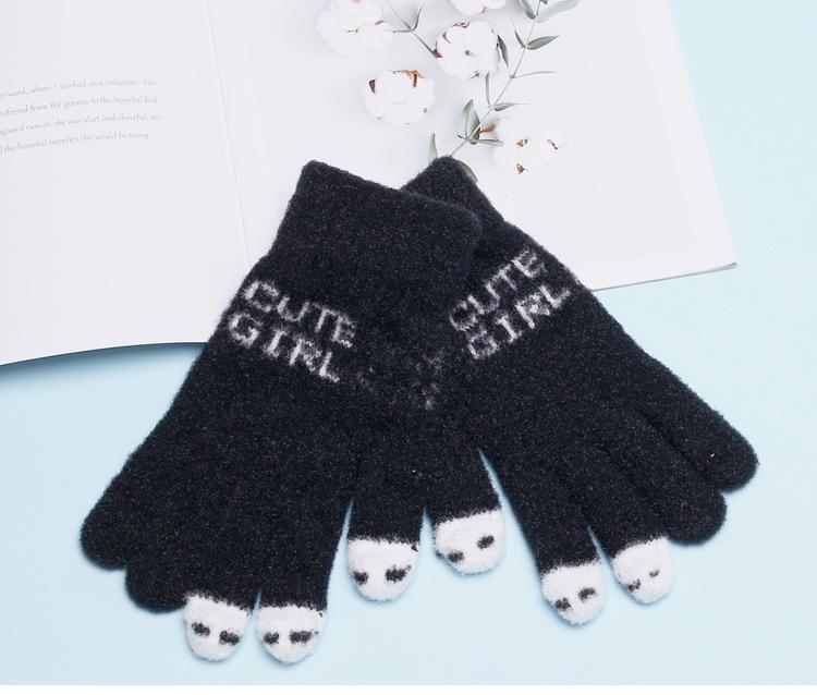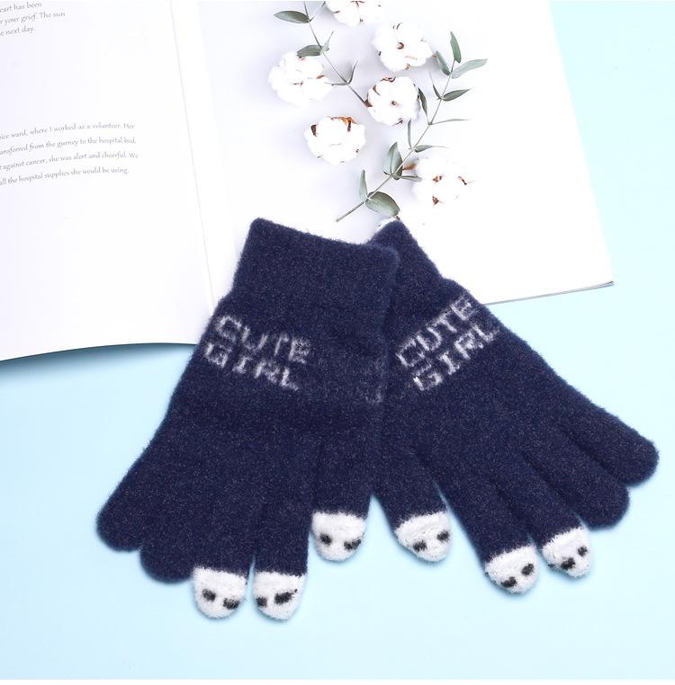 Guantes gruesos de punto sin dedos para mujer, estilo nuevo de otoño e invierno, con pantalla táctil y diseño de dibujos animados, para escribir y usar teléfonos móviles, a prueba de frío y cálidos, versión coreana