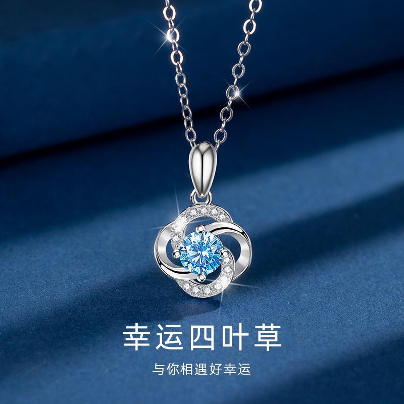 Collar de trébol de cuatro hojas de la suerte en plata de ley s925, cadena corta de clavícula con temperamento, colgante para novia, esposa o regalo de San Valentín.
