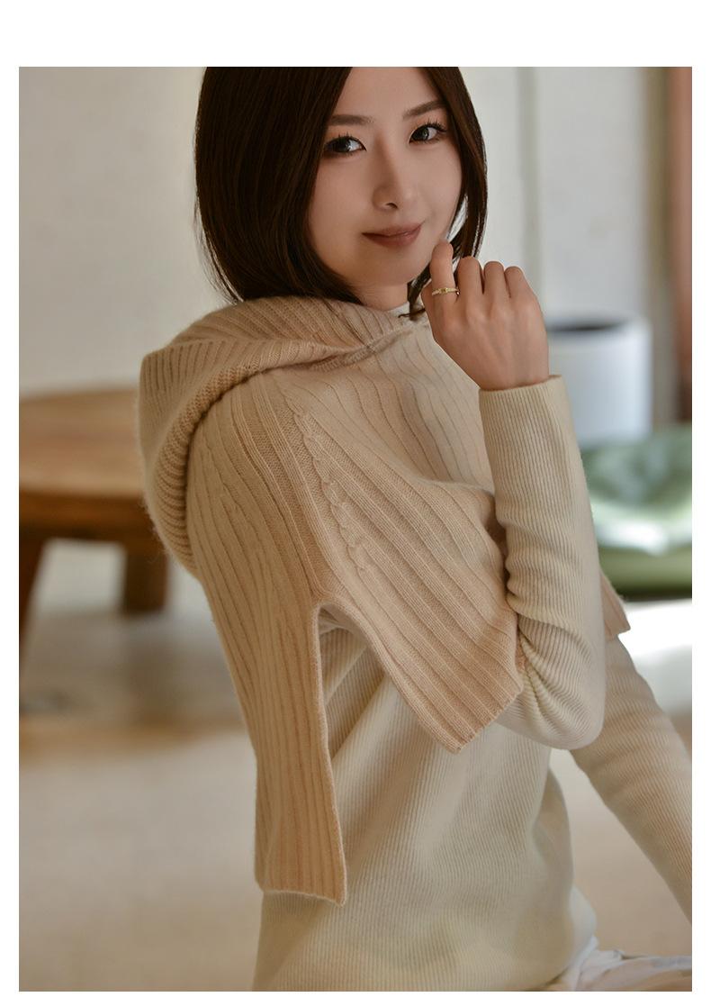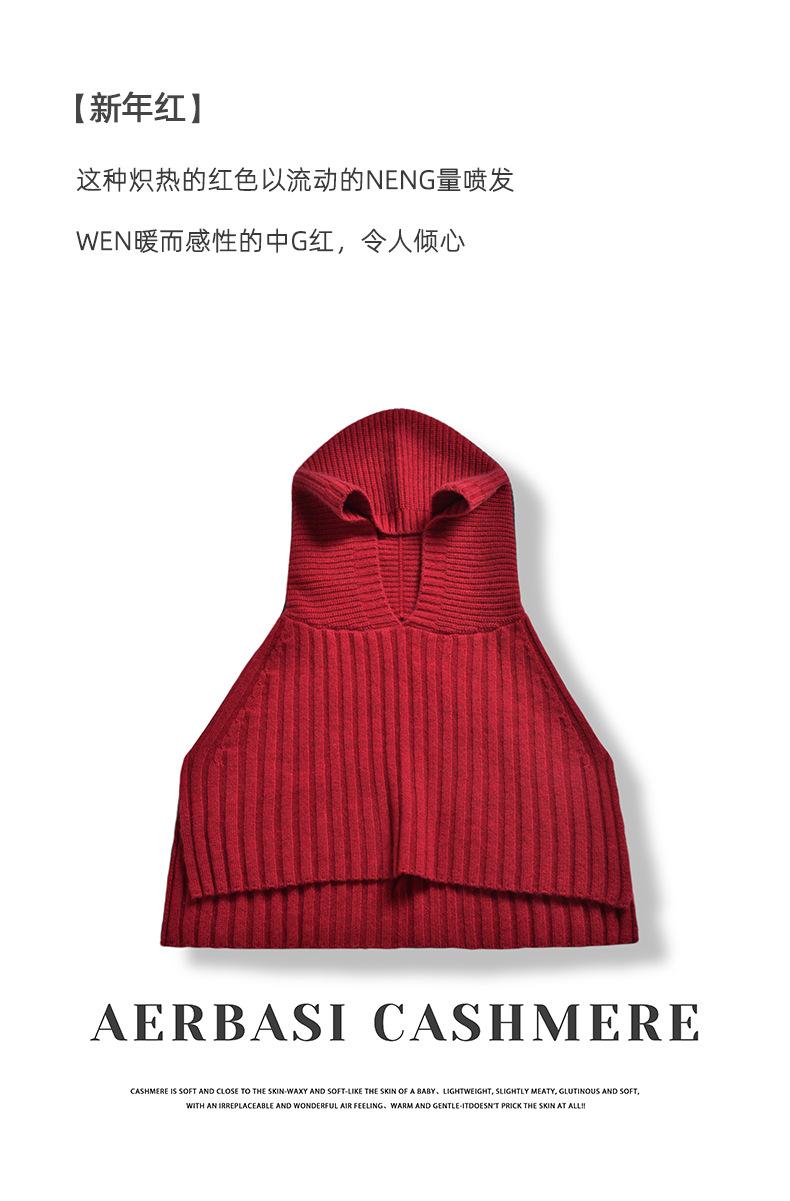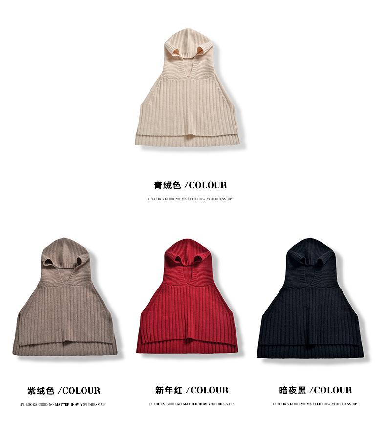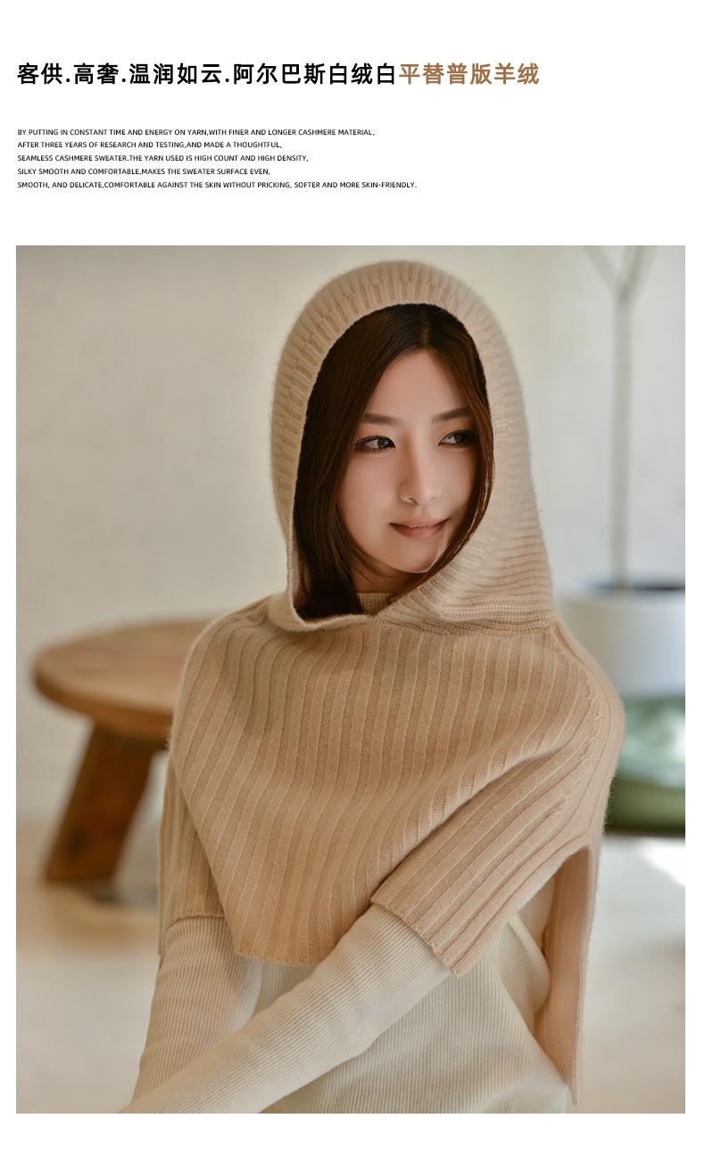 Gorro y bufanda de cachemira para mujer, de otoño e invierno, de una pieza, cálido, de punto, con capucha, de color liso, grueso.