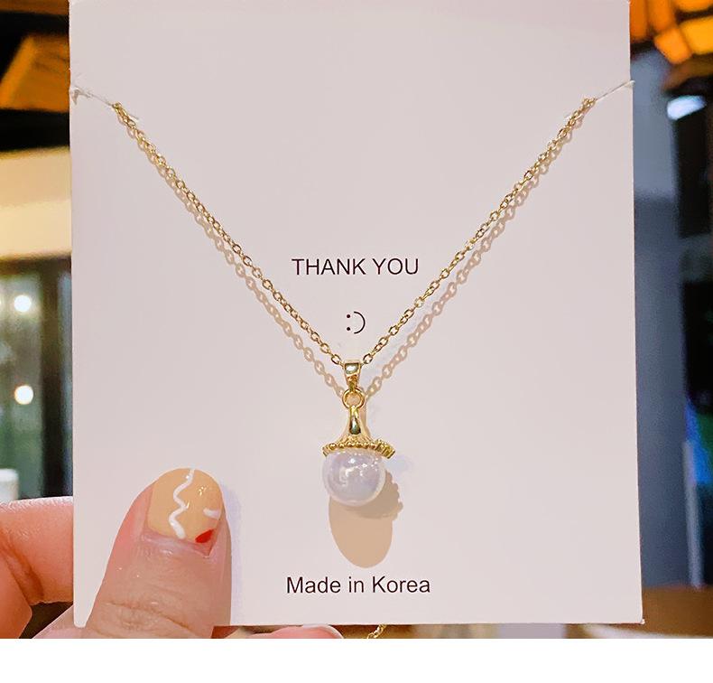 Collar de Acero de Titanio Perla Ji Xiao Sirena Moda para Mujer Simple Lujo Ligero Cadena Clavícula Celebridad de Internet Combinable Joyería Elegante al Por Mayor