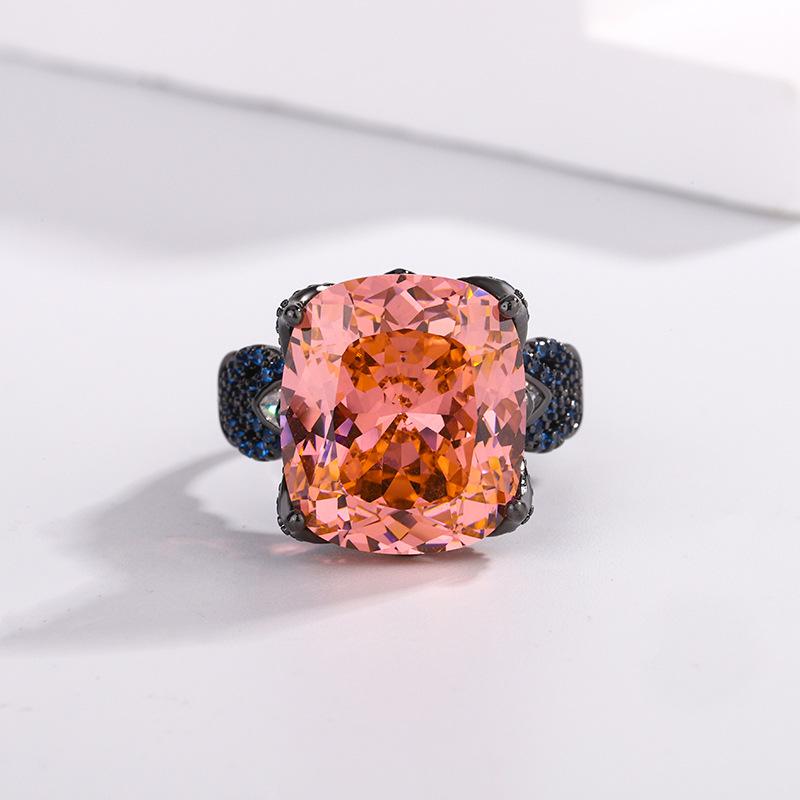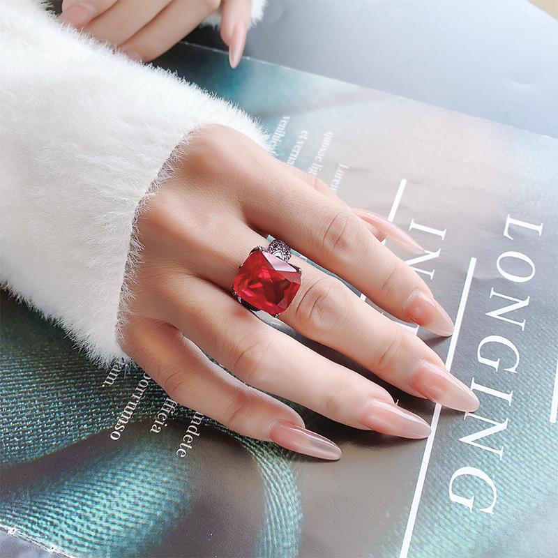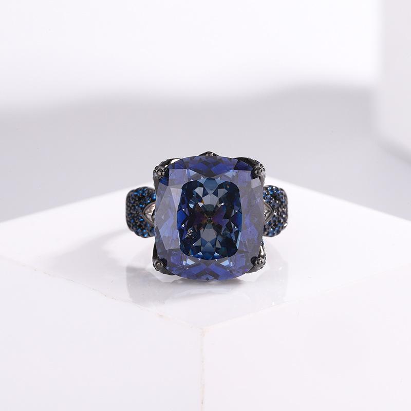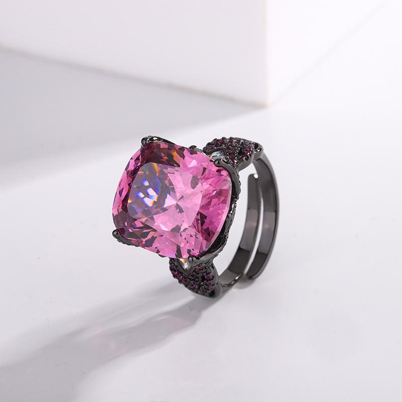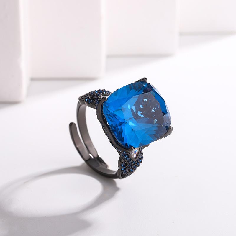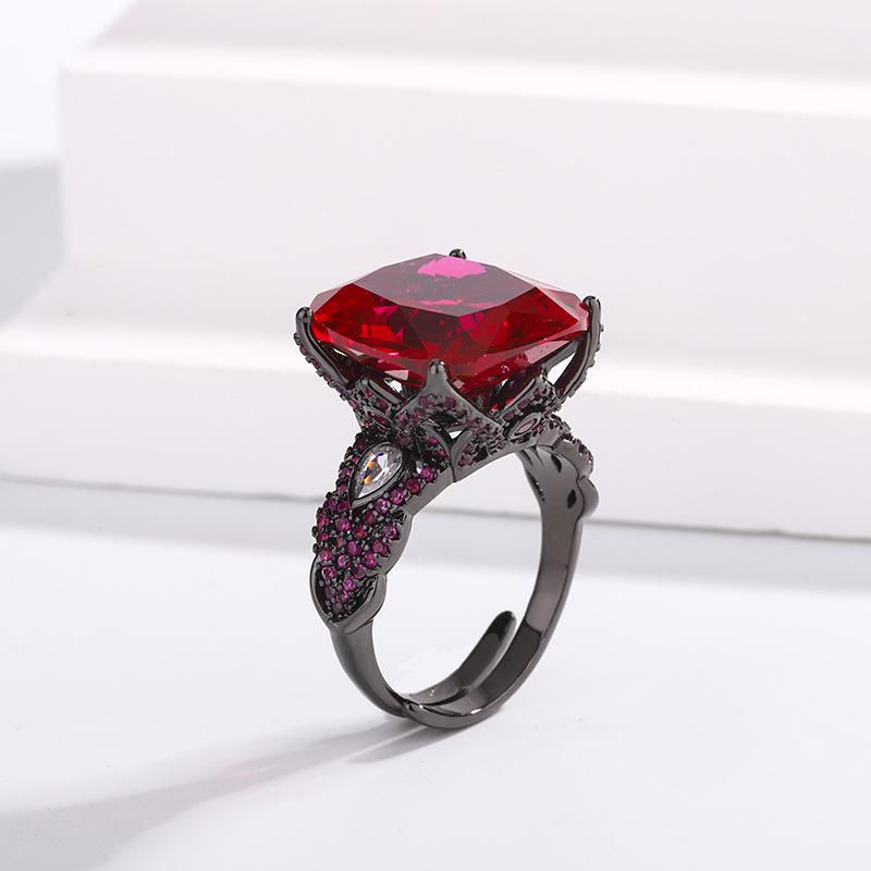 2024 Zhuang Shengsheng joyería cobre chapado en oro retro moda simulación corindón oro negro anillo mujeres al por mayor 14*16