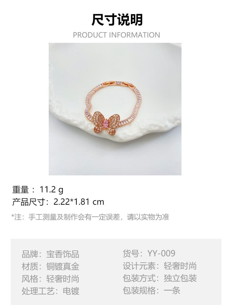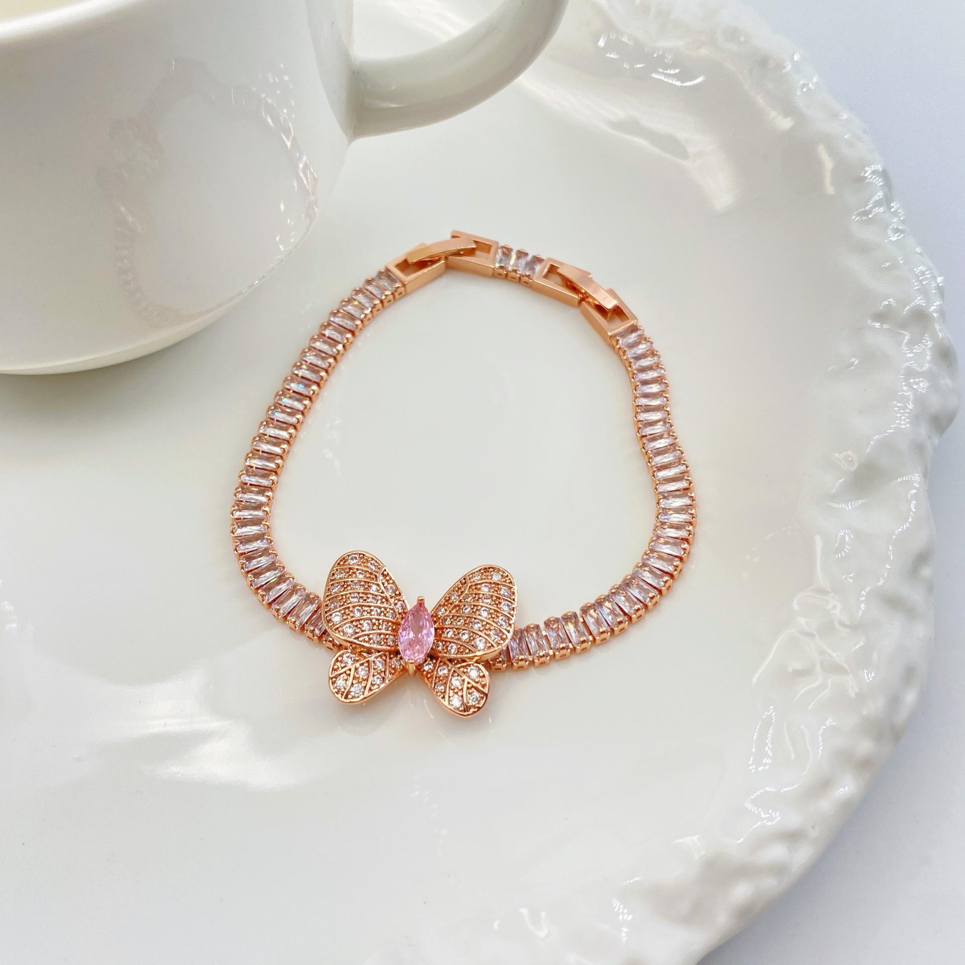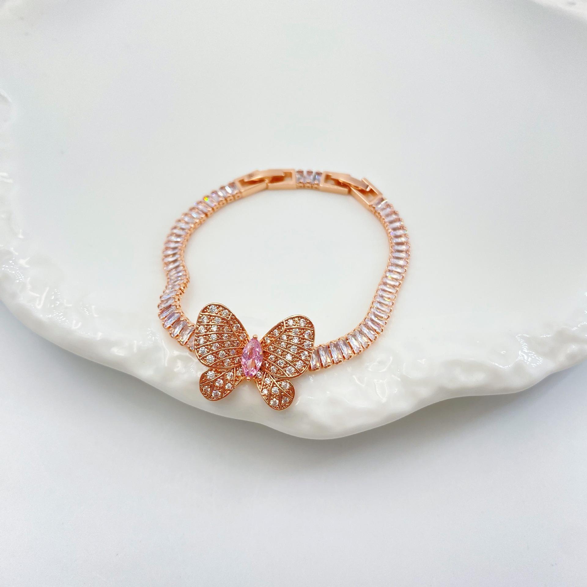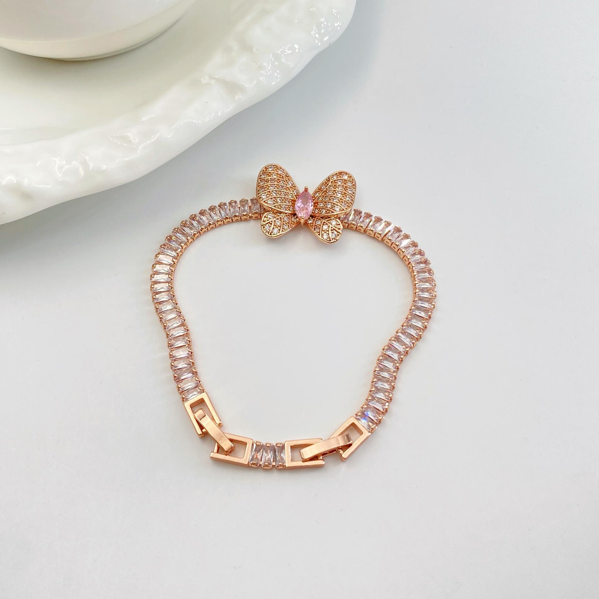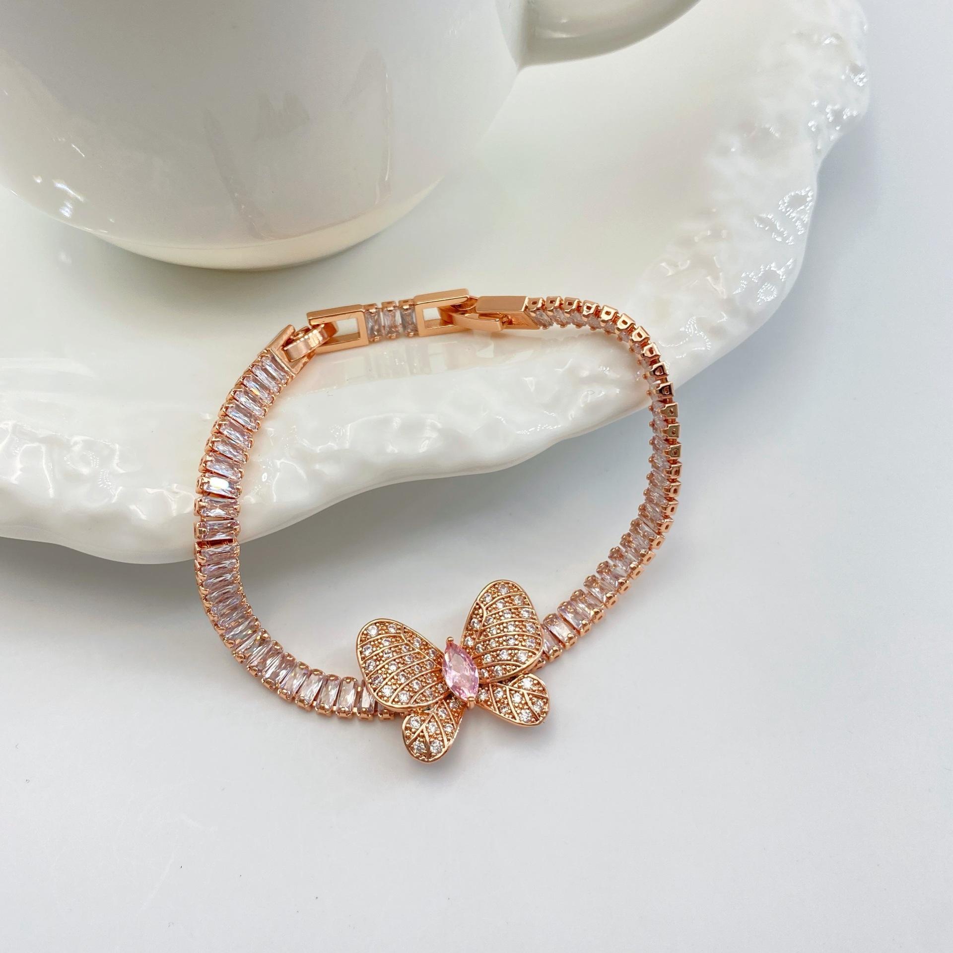 Nueva Pulsera Mariposa de Circonio de Lujo Ligero Oro Rosa Diseño Nicho Alto Sentido Moda Elegante Pulsera Versátil Venta al por Mayor