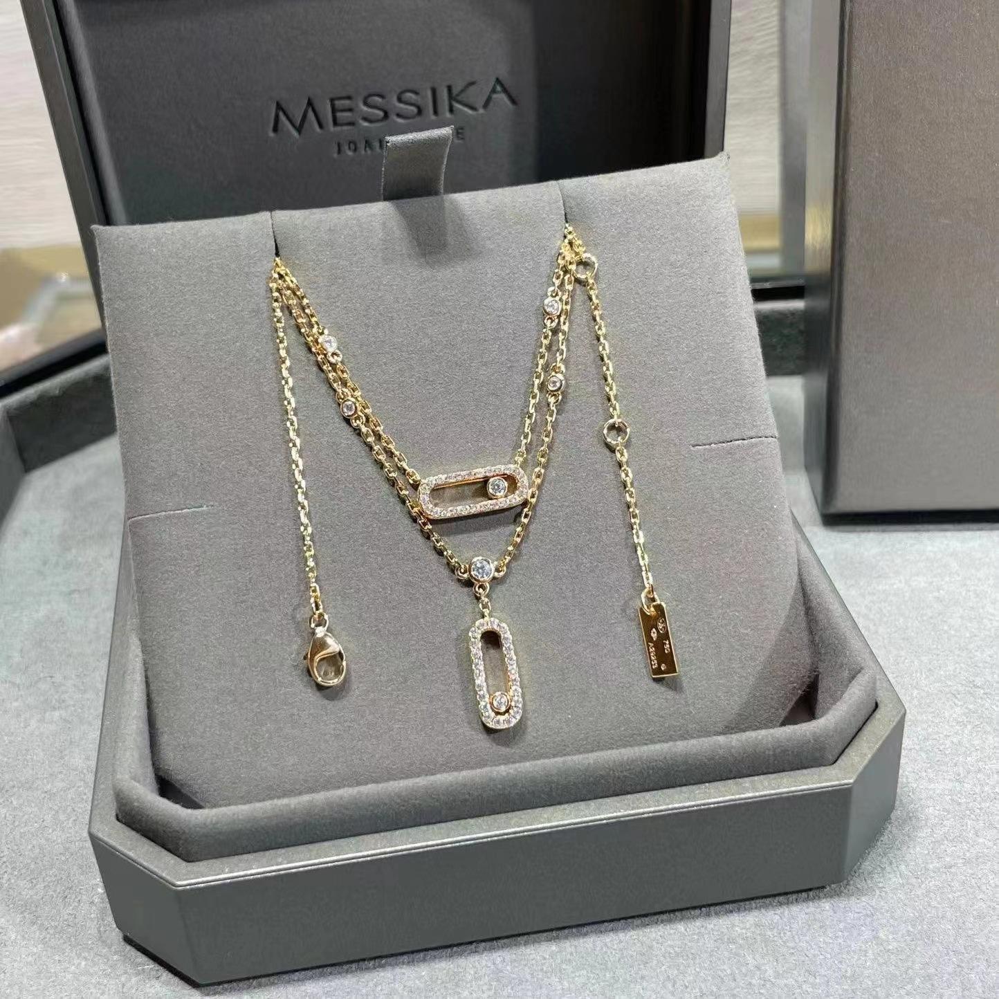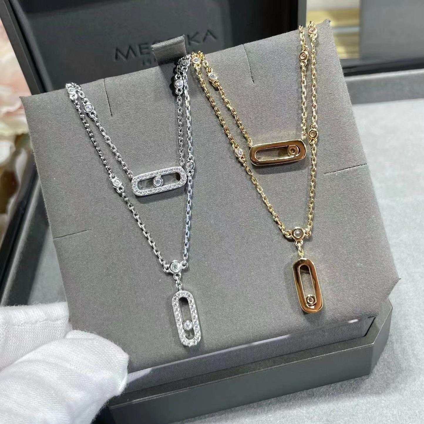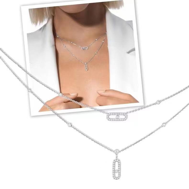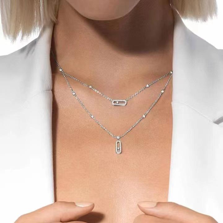 Collar Mesica para mujer con colgante de borla de doble capa y diseño deslizante de diamantes, oro rosa de 18 quilates, cadena de clavícula de alta calidad que combina con todo.