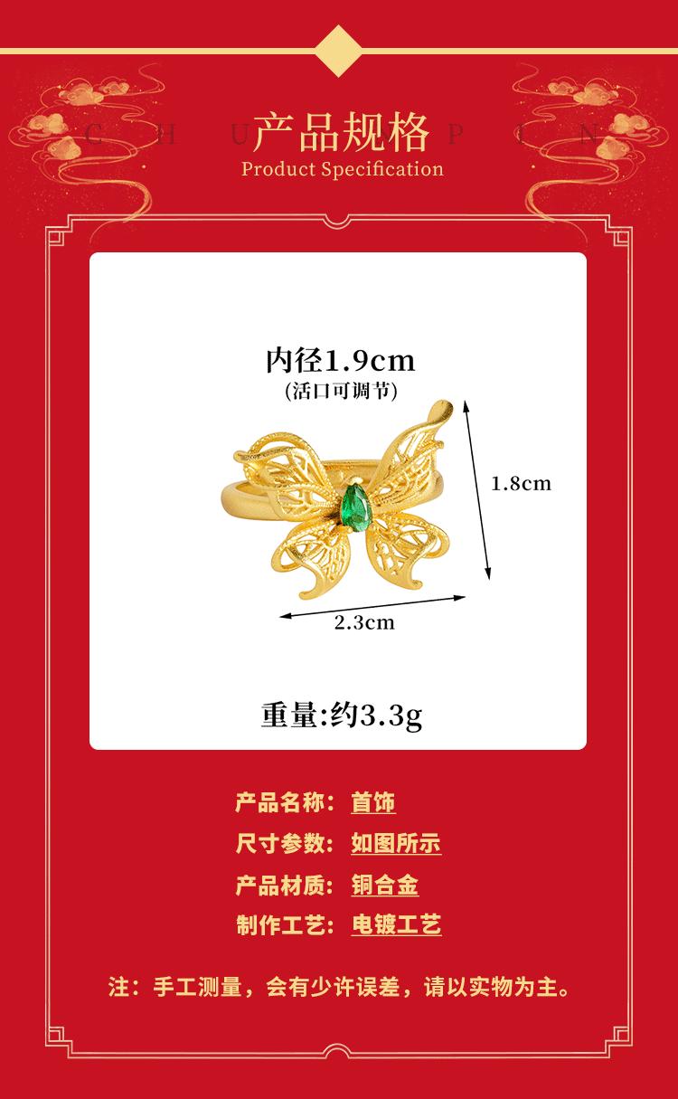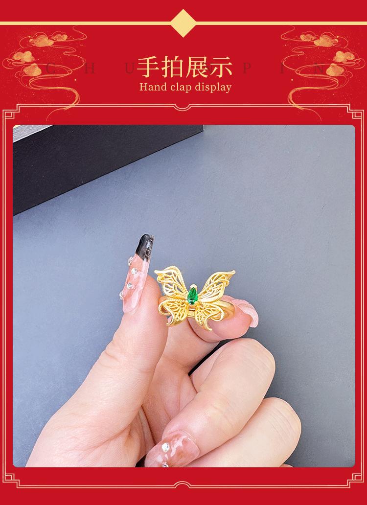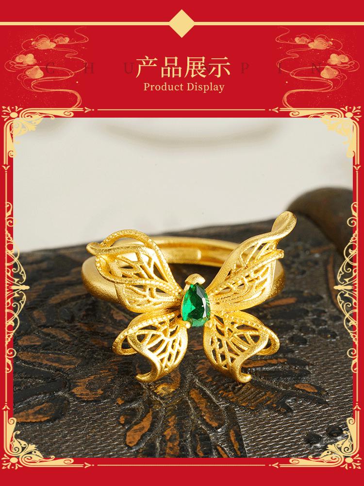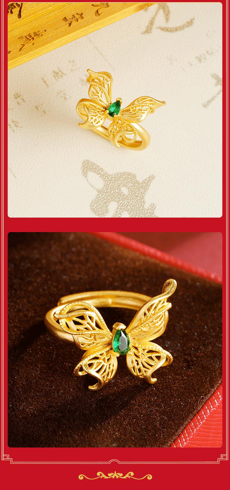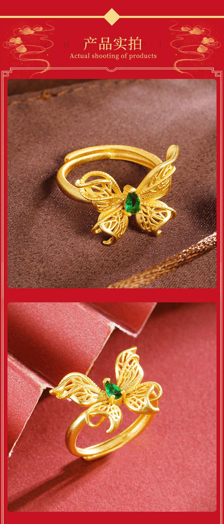 Anillo de Oro de Arena Vietnamita con Mariposa de Línea Hueca Incrustada Diseño Nicho Retro Joyería de Alta Gama No se Desvanecerá por Mucho Tiempo