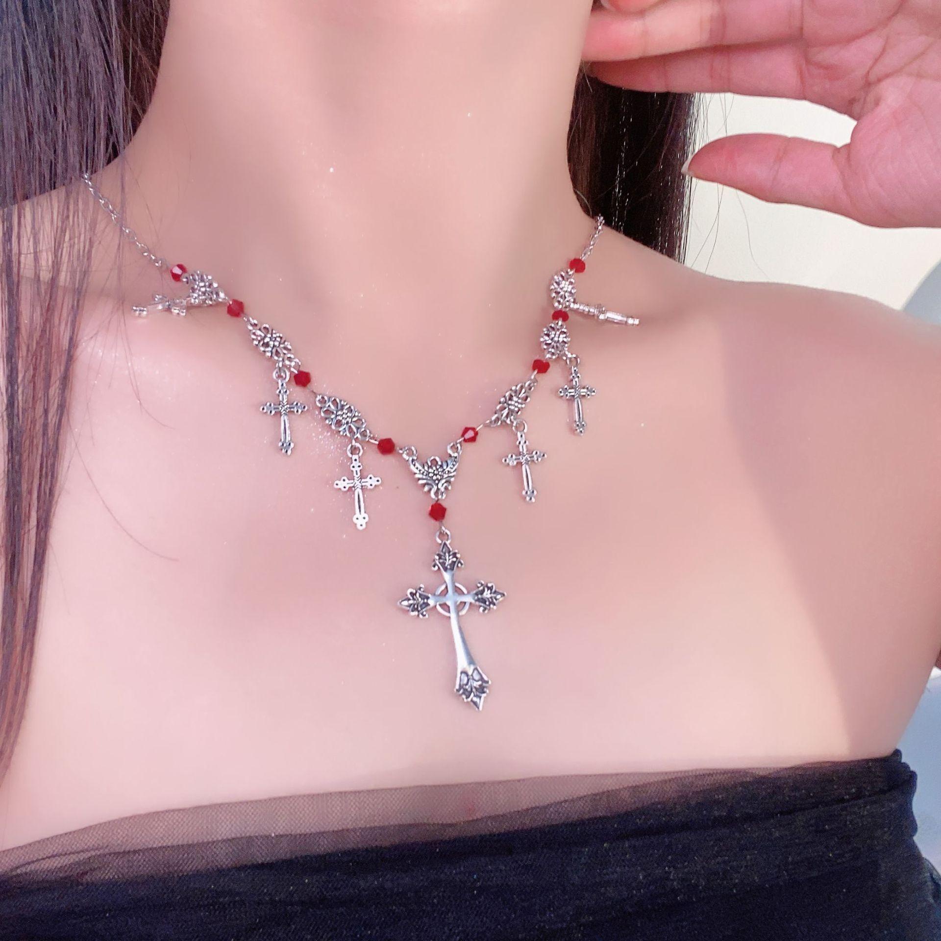 Cross pendant stitching clavicle chain