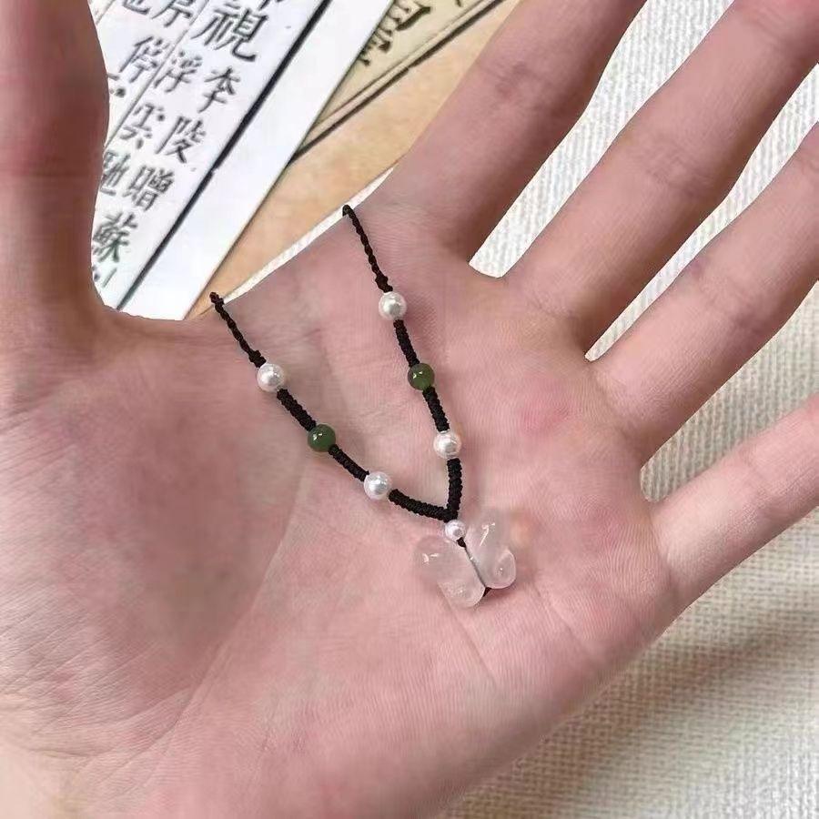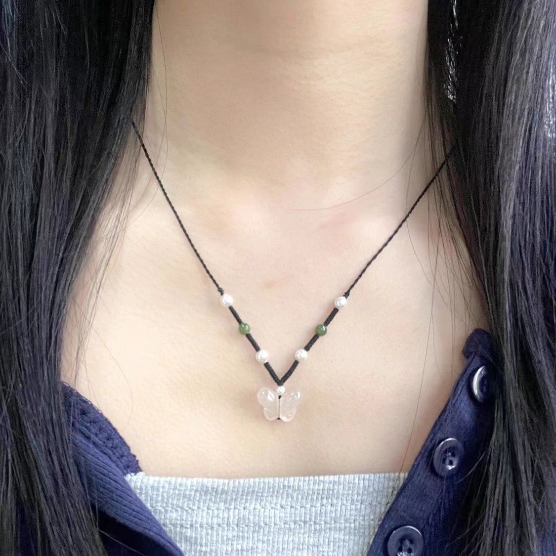 Nuevo collar de cuerda tejida a mano con colgante de mariposa y flor china 2024, nuevo collar de cadena de clavícula retro de alta calidad.