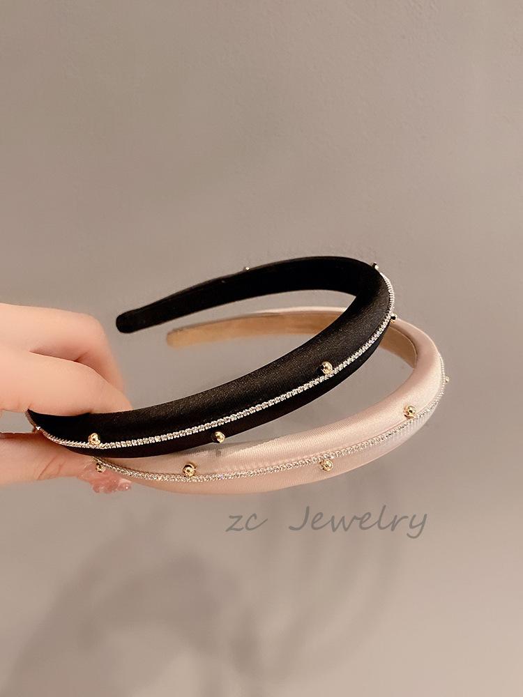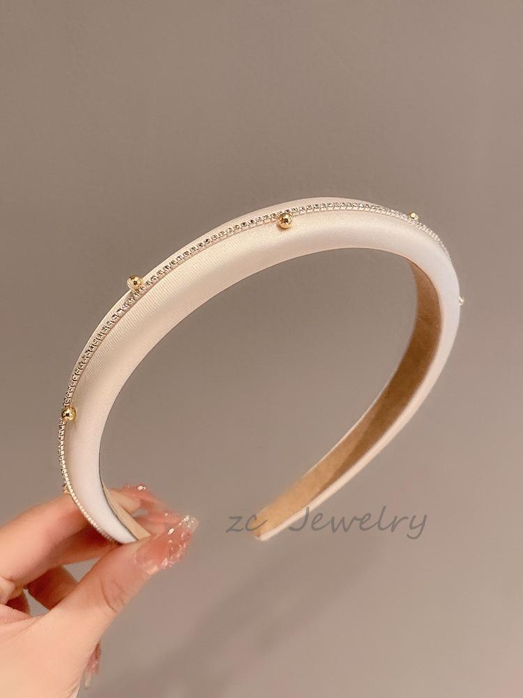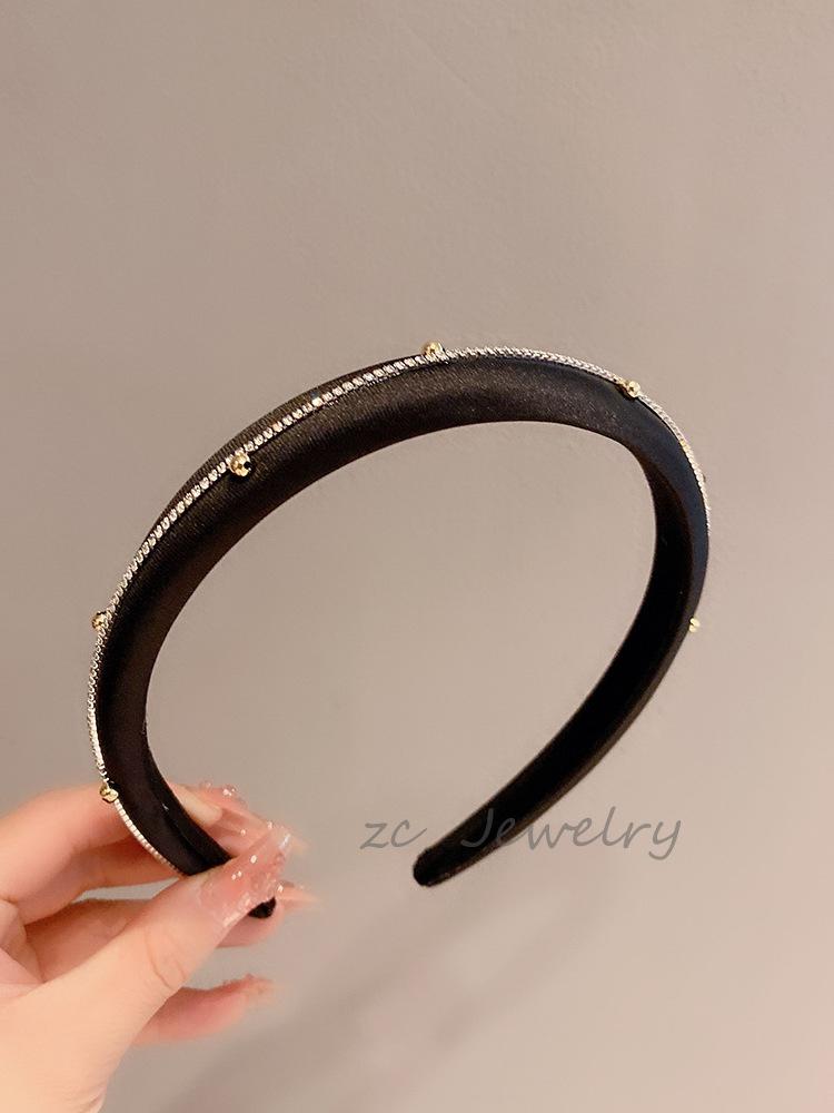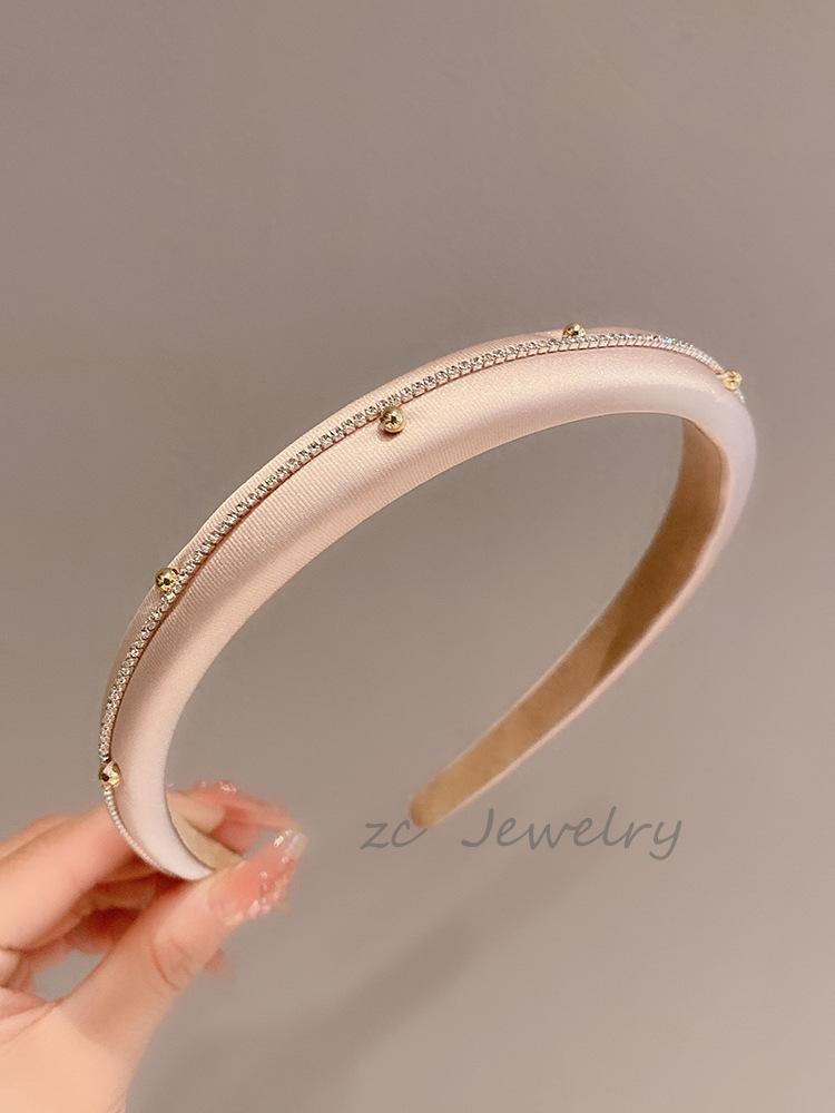 Aro para el cabello de satén de color sólido estilo coreano con diamantes flash, diseño nicho, parte superior craneal alta, estilo suave, saliente, elegante, tarjeta para el cabello versátil, accesorios para el cabello